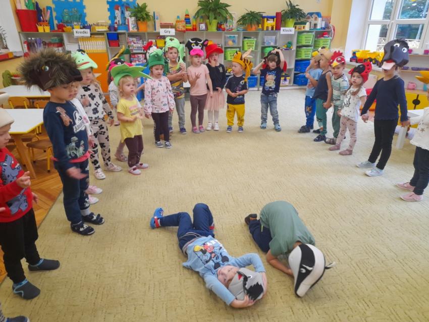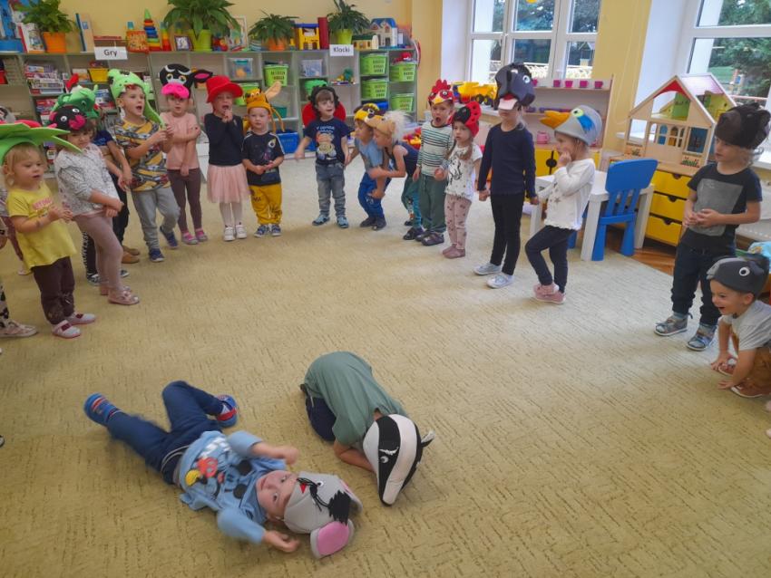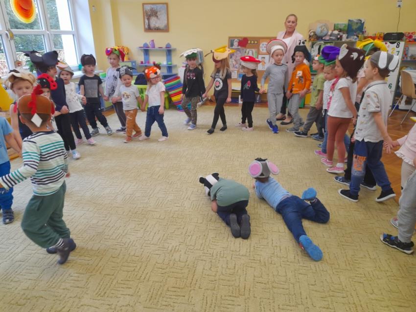 "Razem weselej" to temat dzisiejszych wspólnych zajęć. Grupa I i III spędziła ze sobą czas, bawiąc się przy muzyce, śpiewając oraz zamieniając się w różne postaci z bajek. Dzieci z radością ze sobą tańczyły. Było dużo śmiechu i dobrej zabawy!