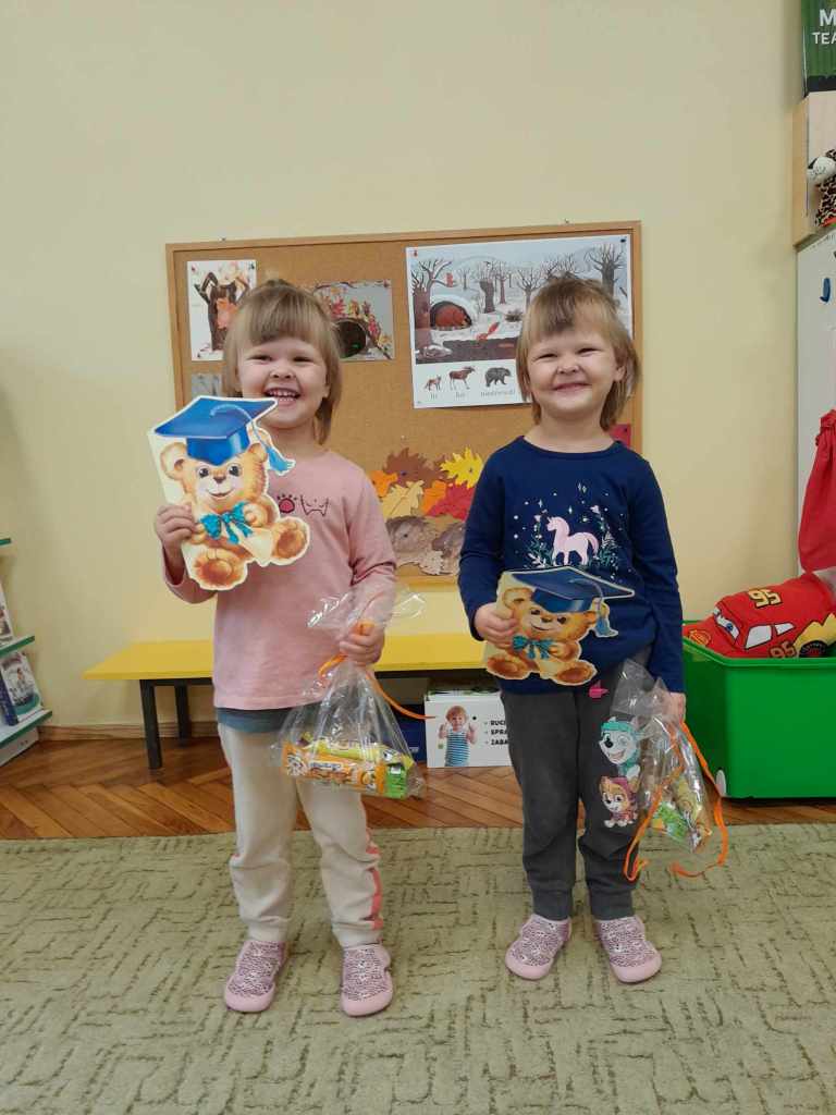 Uroczyste Pasowanie na Przedszkolaka rozpoczęły Dzieci z grupy III. Wystąpiły z programem artystycznym, umilając czas nowo przybylym dzieciom. Maluchy przedstawiły swój program, a pomagały im śpiewać starsze Misie z gr.I. Na koniec odbyło się Pasowanie przez Panią Dyrektor oraz wręczanie dyplomow i upominków . Dzieci były bardzo dzielne i poważne w takiej chwili , tylko niektórym zakręciła się łezka w oku .