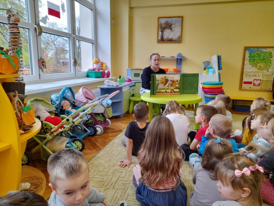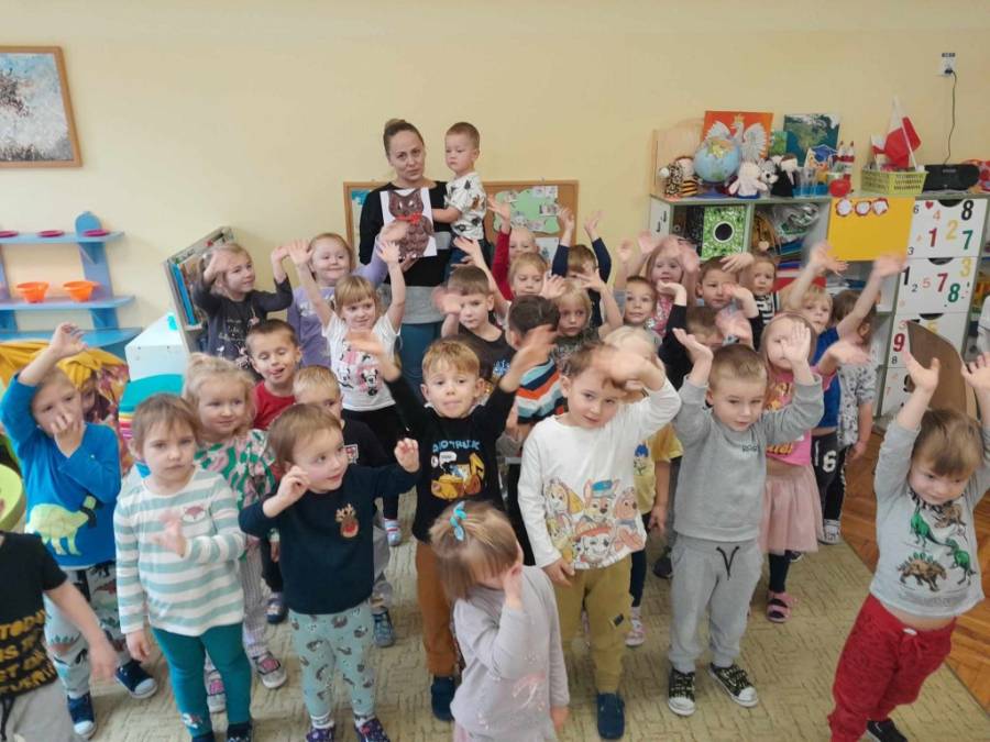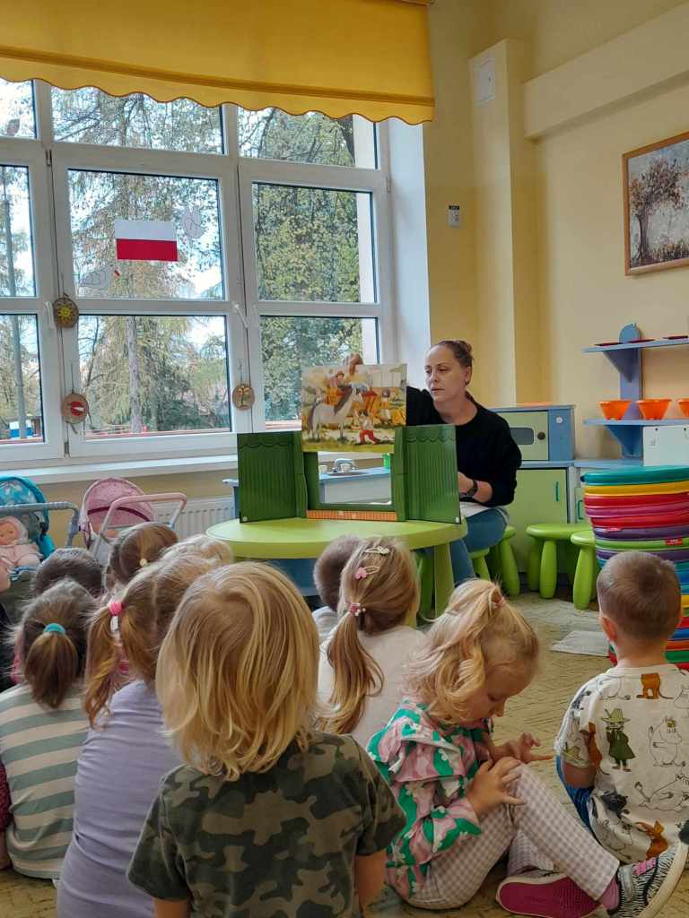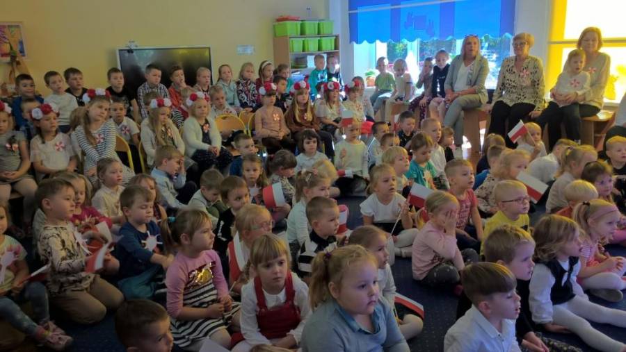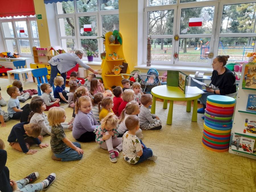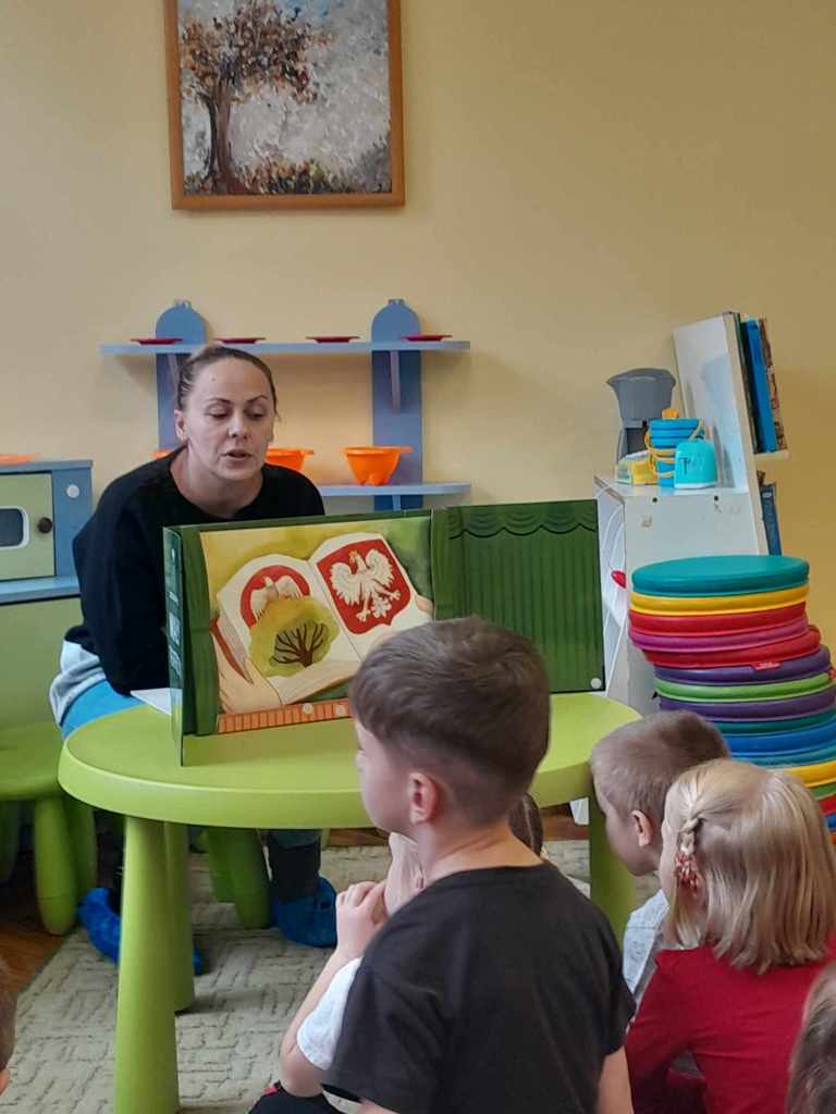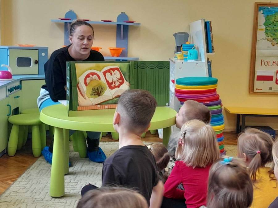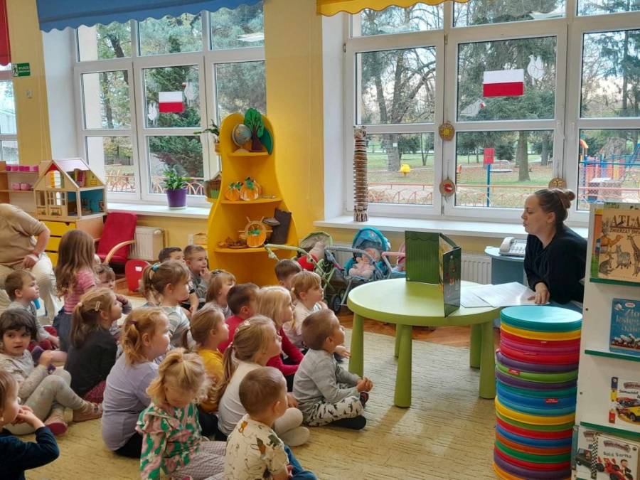 Tydzień poświęcony Świętu Niepodległości. Grupy Misiów i Żabek gościły dziś mamę Zuzi na zajęciu czytelniczym . Pani Kasia przedstawiła w formie teatrzyku, legendę "O Lechu, Czechu i Rusie". Dzieci dowiedziały się o powstaniu Państwa polskiego, o pierwszej stolicy - Gnieźnie. Rozmawiano o symbolach narodowych. Wyjaśniono dzieciom również znaczenie słowa "Legenda". Na zakończenie spotkania wszyscy odśpiewali hymn polski z wielką powagą. Dziękujemy serdecznie Pani Kasi za ciekawą lekcję. Dzień wcześniej dzieci uczestniczyły w Akademii zorganizowanej przez grupę V (zdjęcia w galerii głównej). Z zainteresowaniem słuchały patriotycznych pieśni.