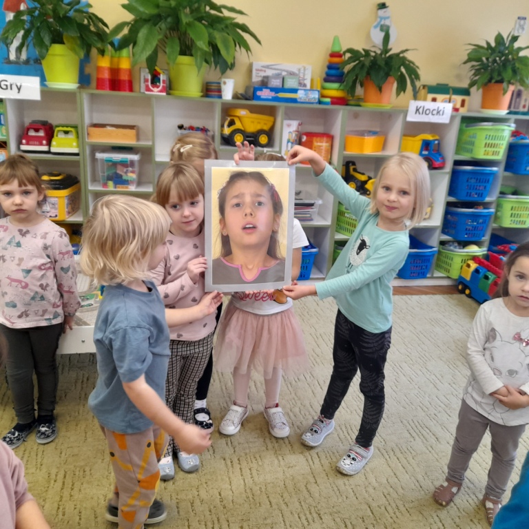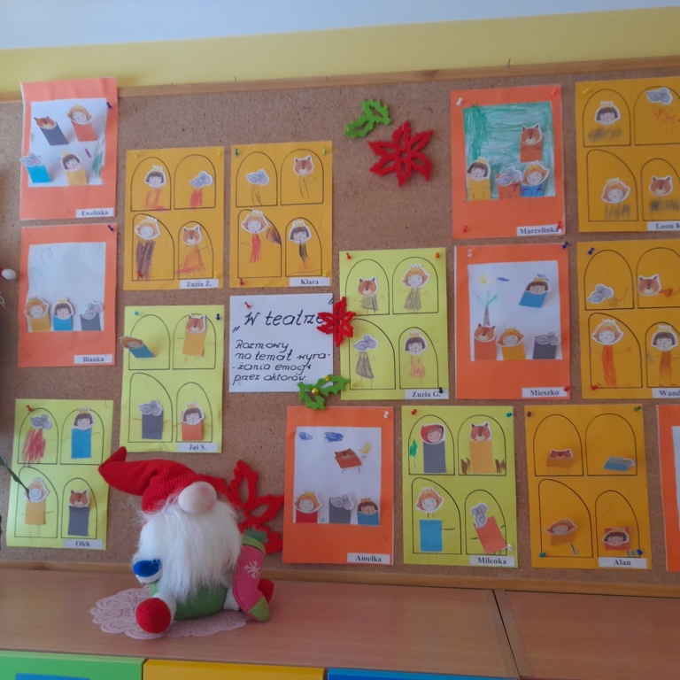 Piątek był dniem podsumowującym wiadomości z całego tygodnia dotyczące teatru, aktorów, wyrażania przez nich różnych emocji. Dzieci chętnie uczestniczyły w zajęciach.