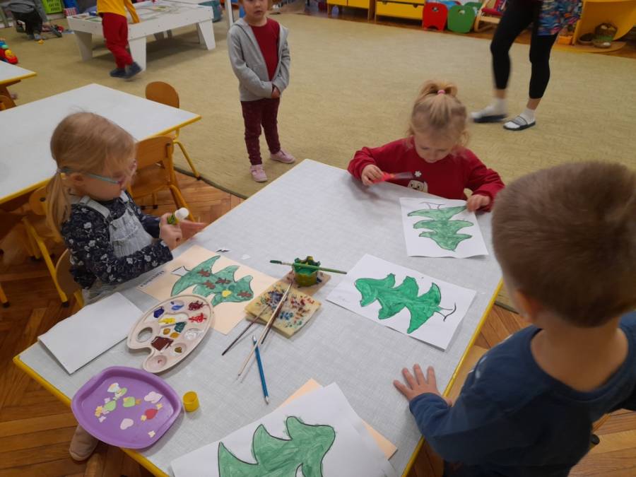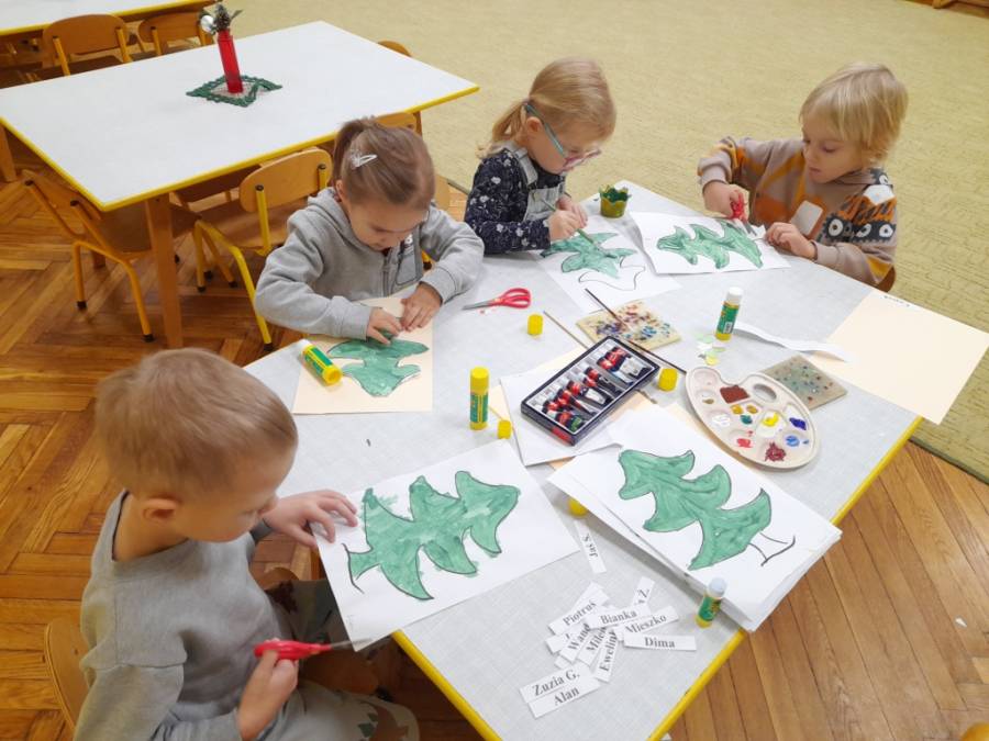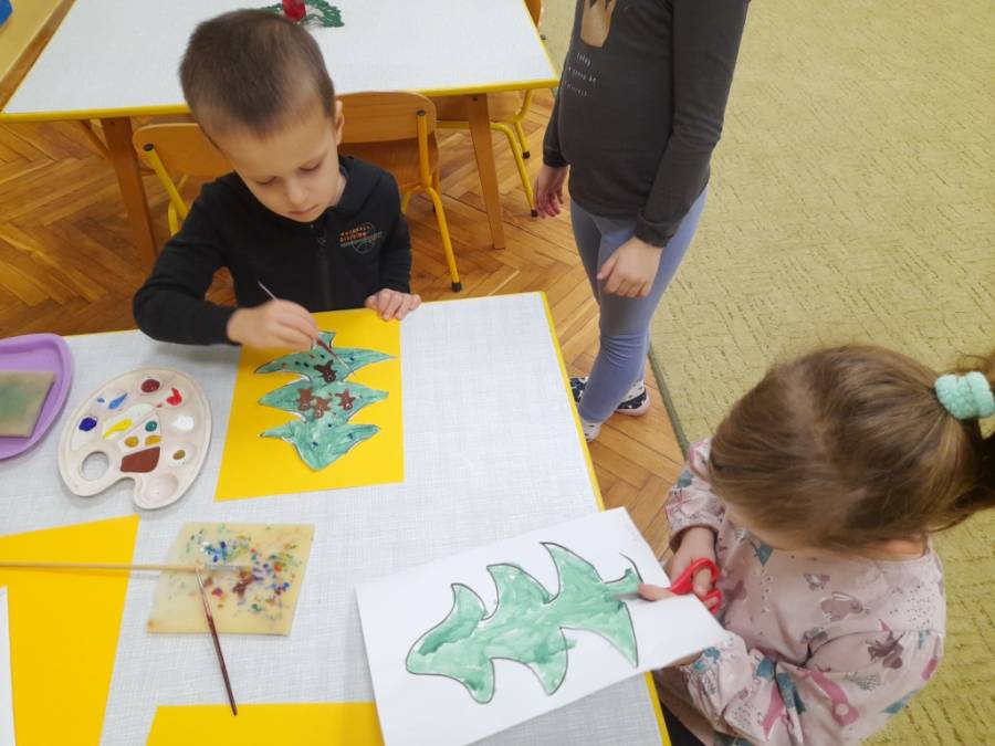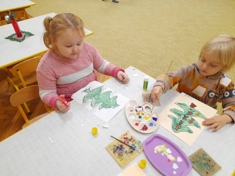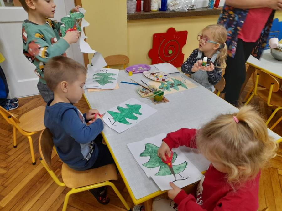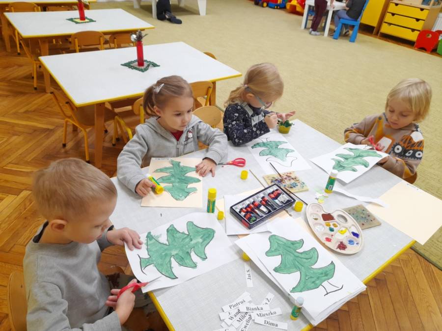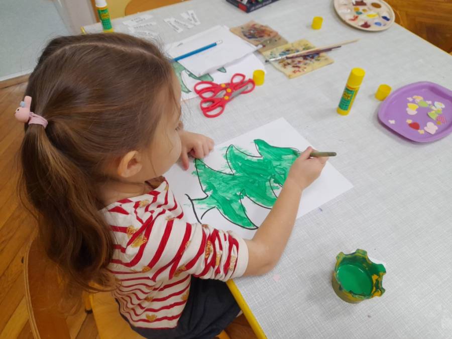 Program zajęć twórczych w grupie, to nie tylko malowanie, ale zdobywanie różnych umiejętności w wielu dziedzinach. Inspiracją jest zawsze tekst literacki, rozmowy, różne wydarzenia przedszkolne oraz doświadczenia dzieci. Zbliżające się Święta, to temat bardzo szeroki, gdzie pomysłów na nowe ciekawe prace nie brakuje. Dziecięce portfolio powiększa się o kolejne prace związane z przedświątecznymi zakupami oraz zdobieniem choinki w piernikowe ludziki.