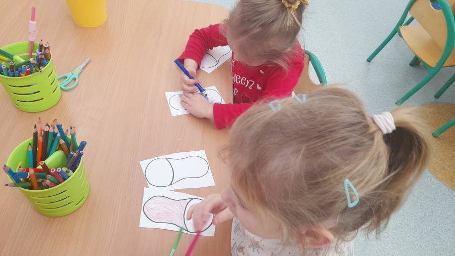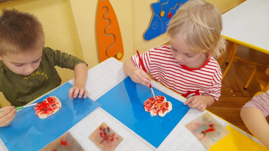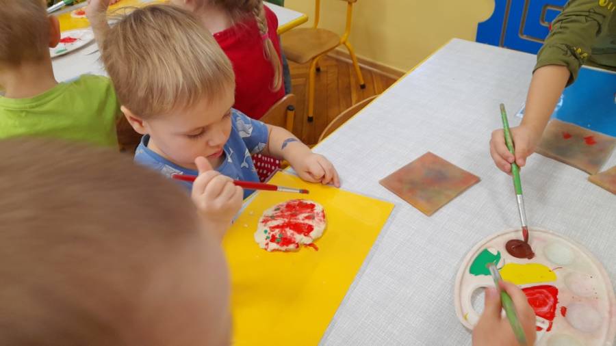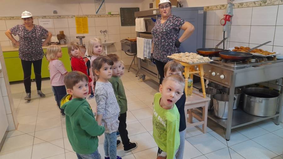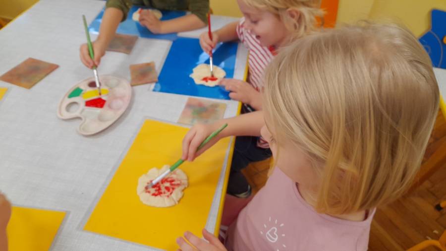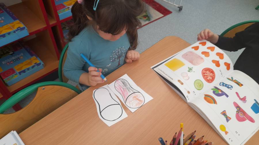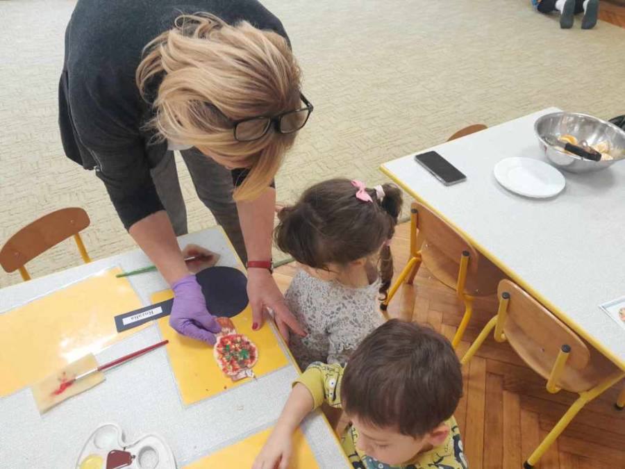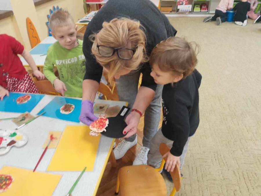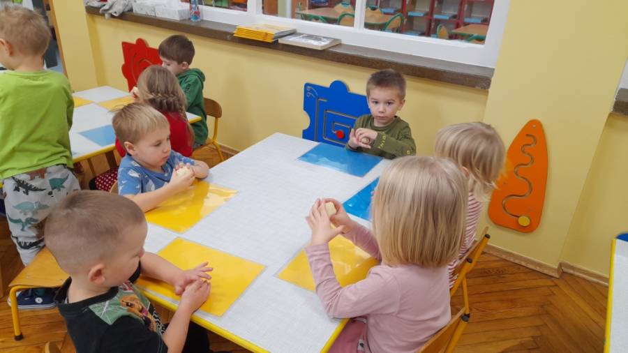 To obszerny temat, który zaplanowano na dwa tygodnie. Dzieci dowiedziały się, jaką pracę wykonuje szewc. /Szyły buty/ przewlekając sznurek przez dziurkę.  Odwiedziły również Panie Kucharki, które chętnie opowiedziały dzieciom o swojej pracy.  Powstały mini pizze.