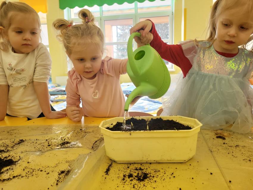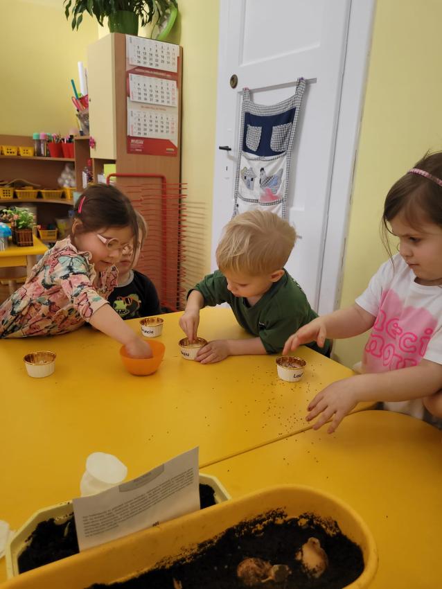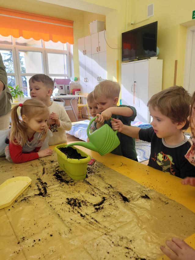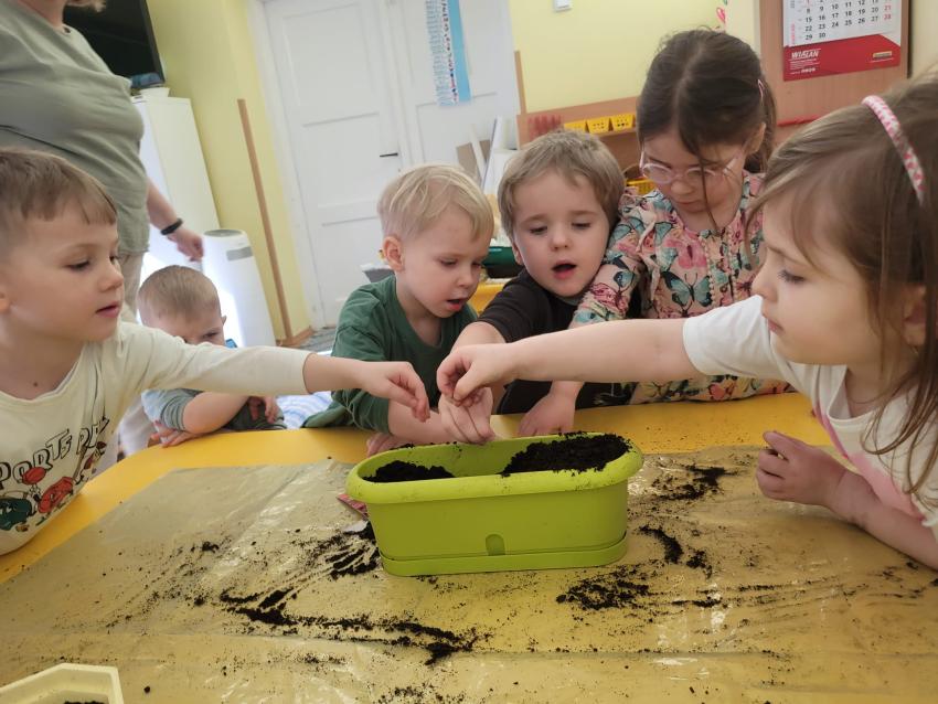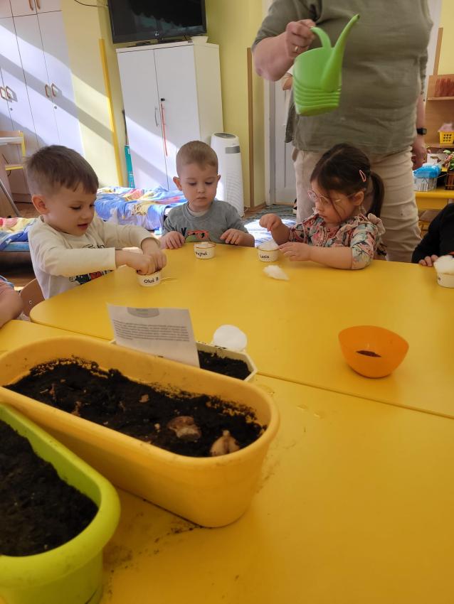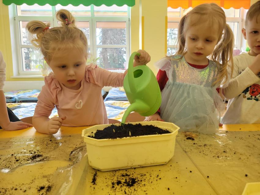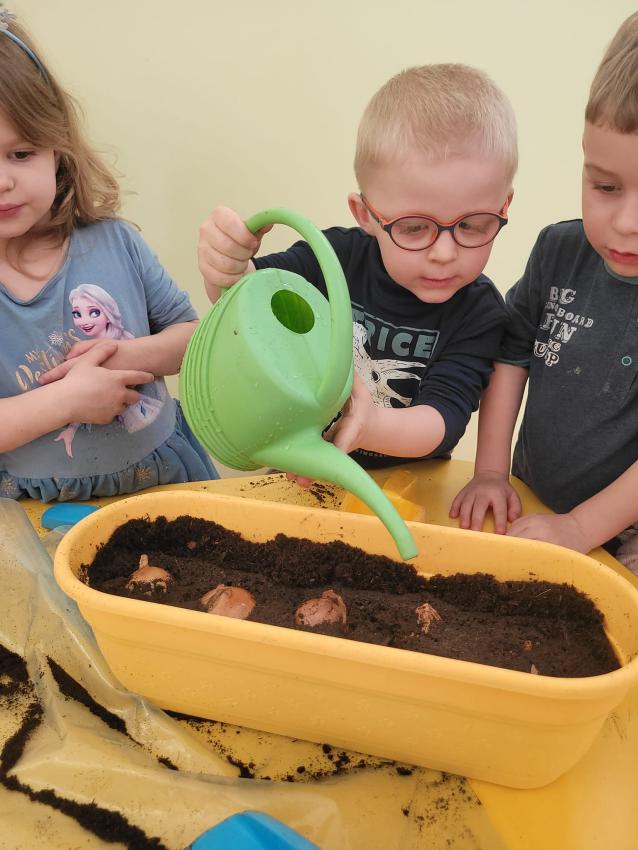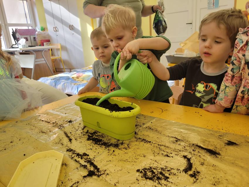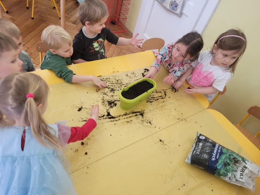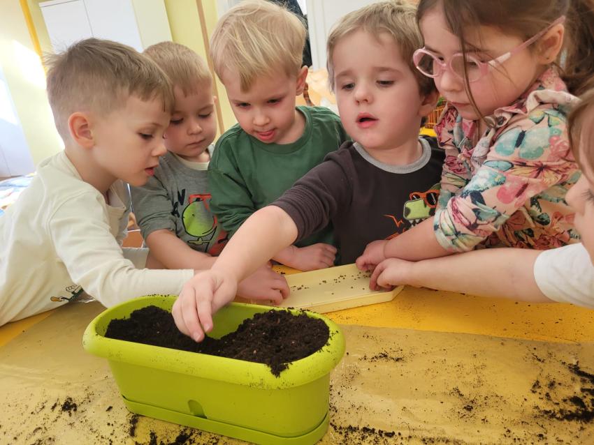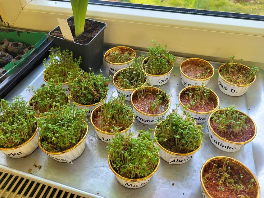 Dzieci szukały odpowiedzi na pytanie " Czego rośliny potrzebują do wzrostu ? Założyły hodowlę rzeżuchy , szczypioru i roślin kwiatowych , które będą teraz pielęgnować i obserwować .