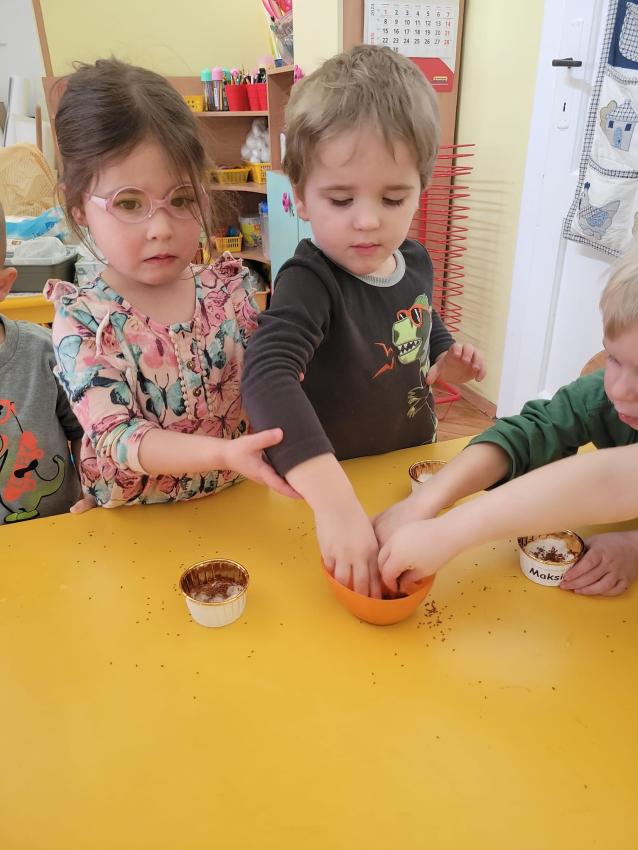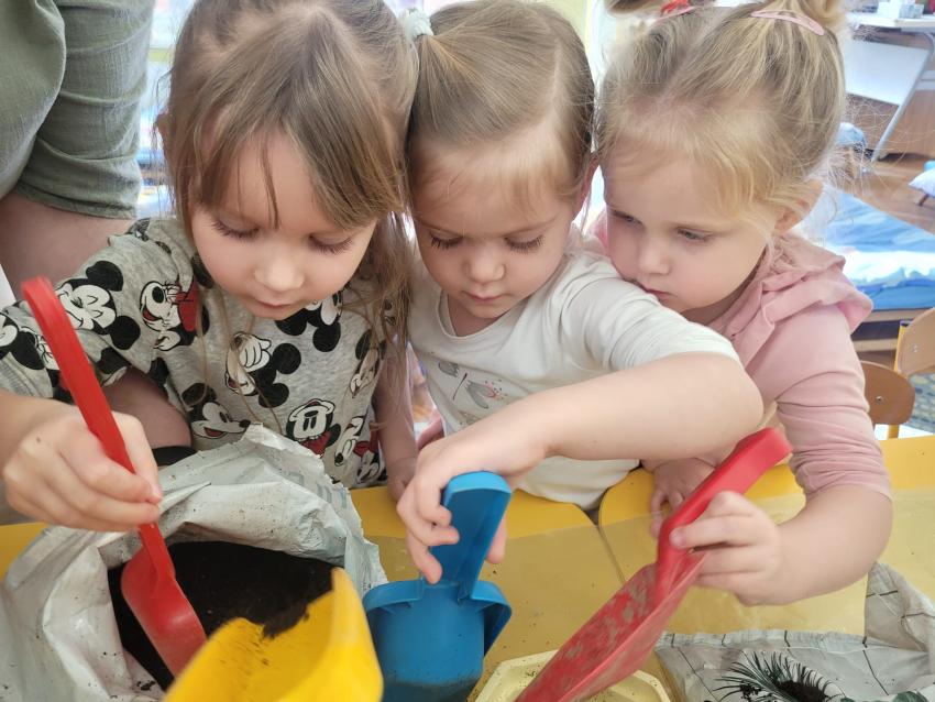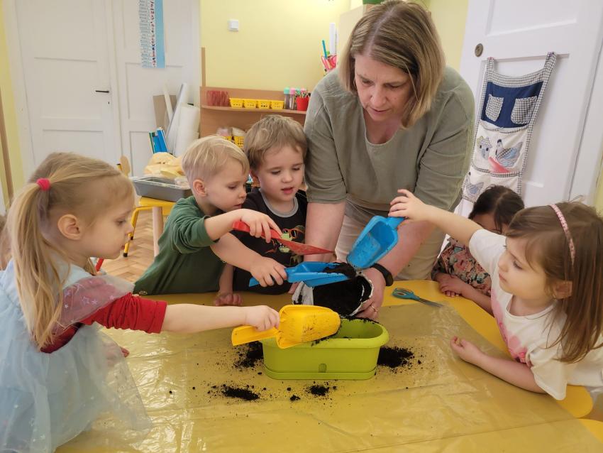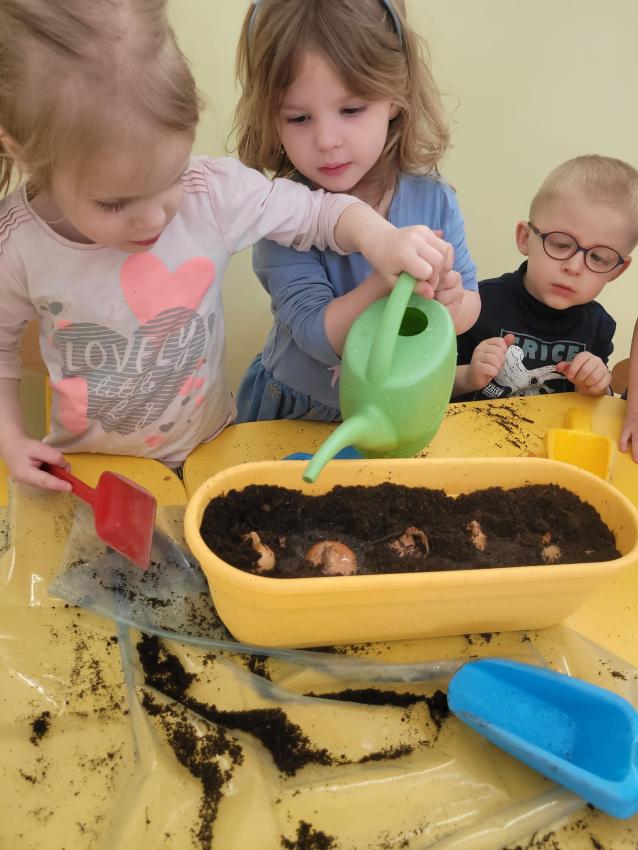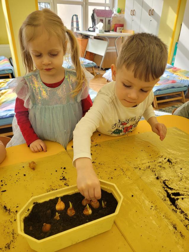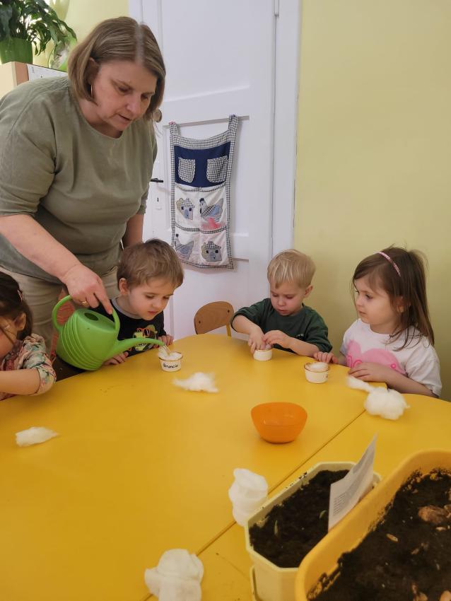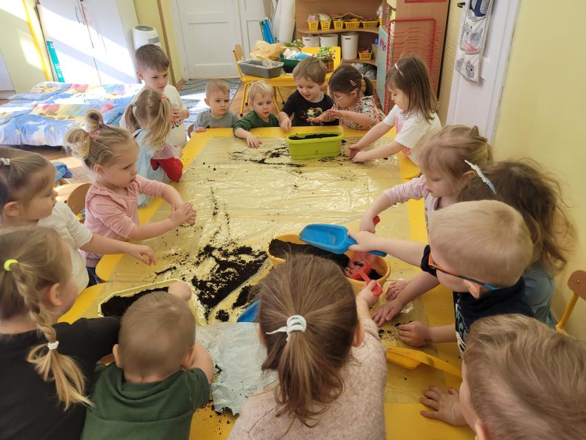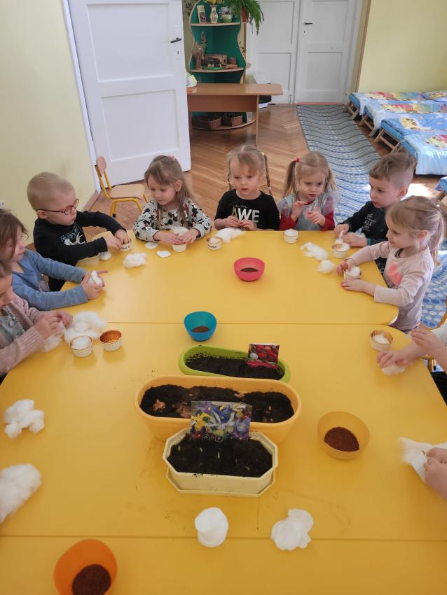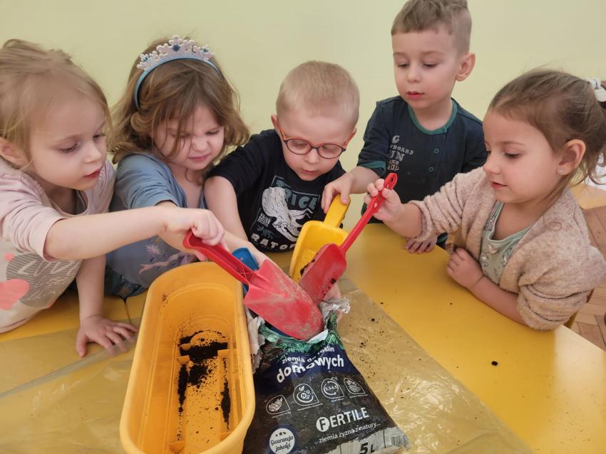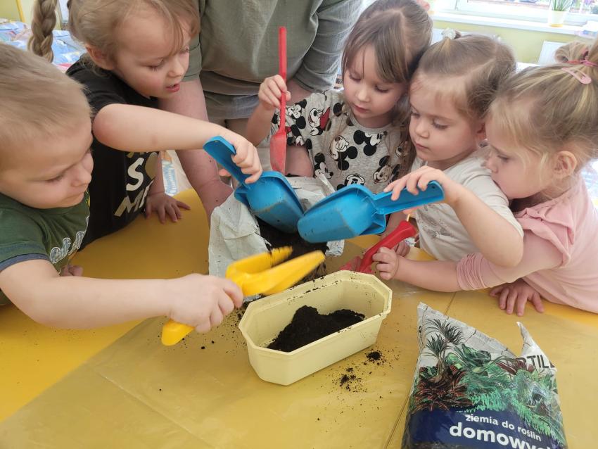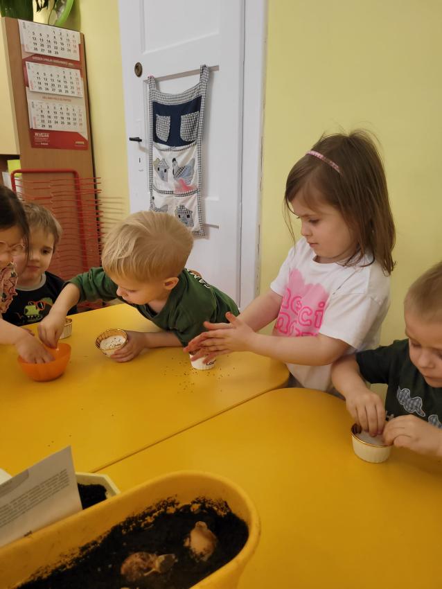 Dzieci szukały odpowiedzi na pytanie " Czego rośliny potrzebują do wzrostu ? Założyły hodowlę rzeżuchy , szczypioru i roślin kwiatowych , które będą teraz pielęgnować i obserwować .