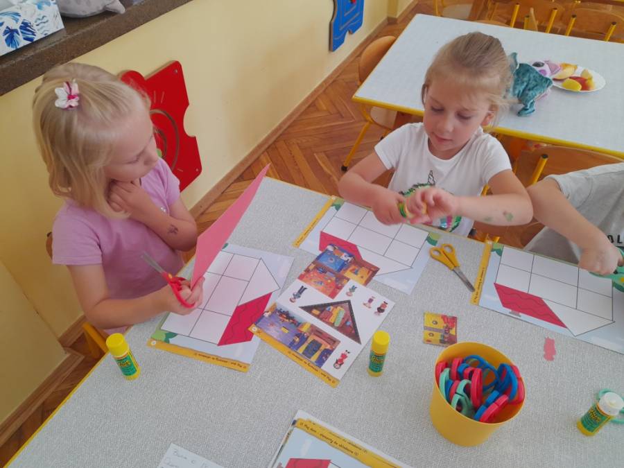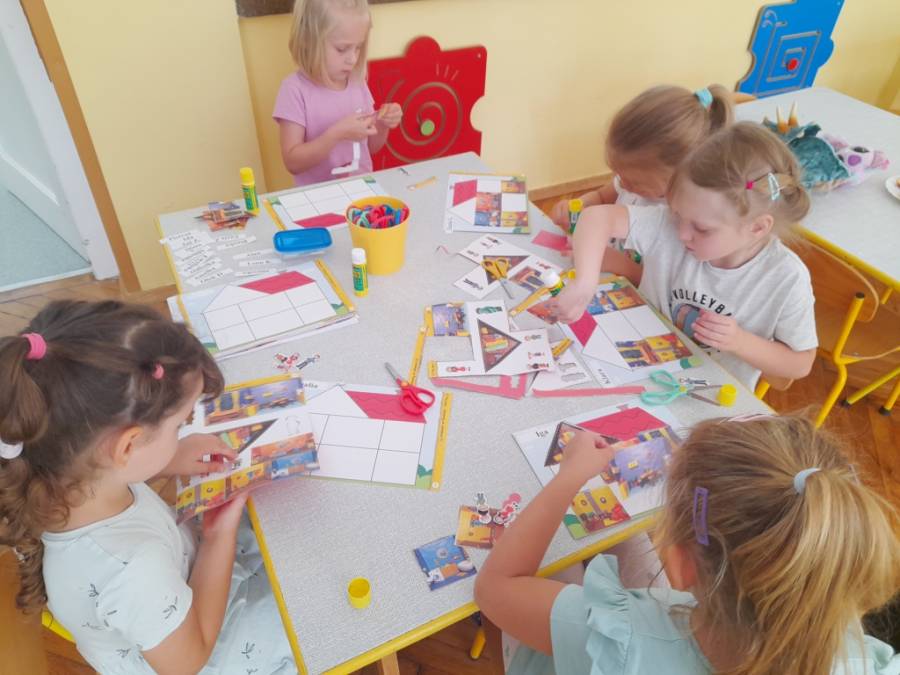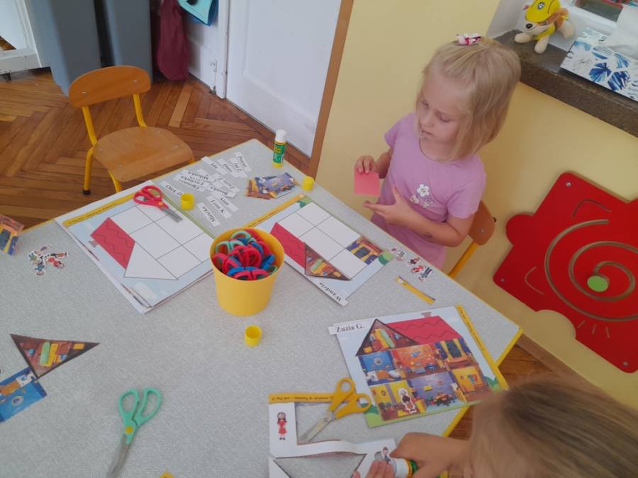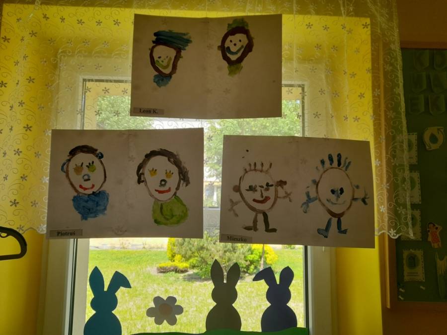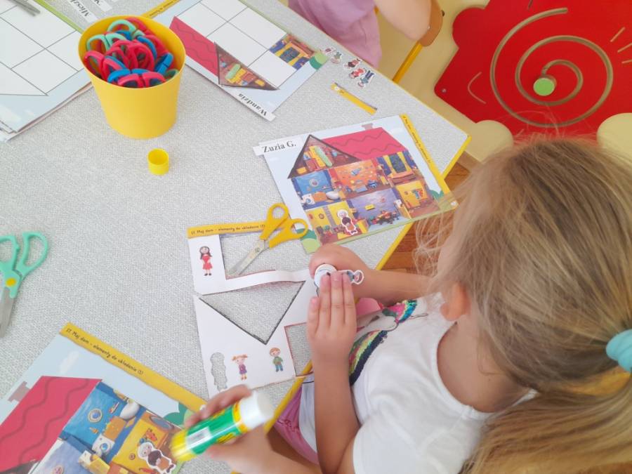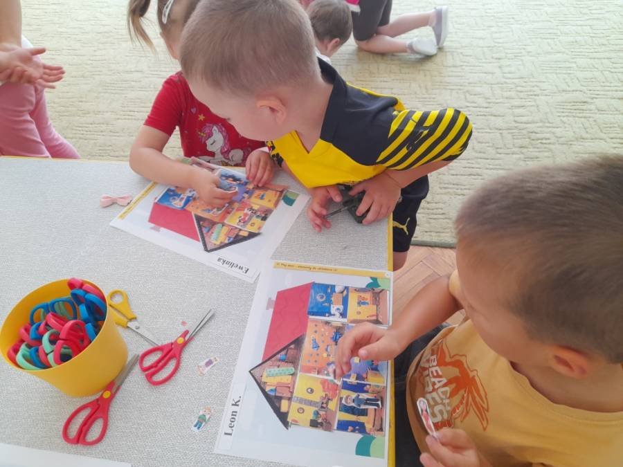 Podczas dzisiejszych zajęć, dzieci wypowiadały się na temat swojej rodziny. Wiedzą, że na bliskich zawsze mogą polegać. Dużą radość sprawiło dzieciom wycinanie obrazków przedstawiających wnętrza mieszkań i wklejanie ich w odpowiednie miejsca na szablonie domu. Możemy również pochwalić się portretami rodziców.
