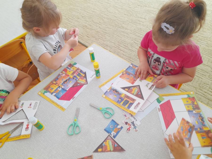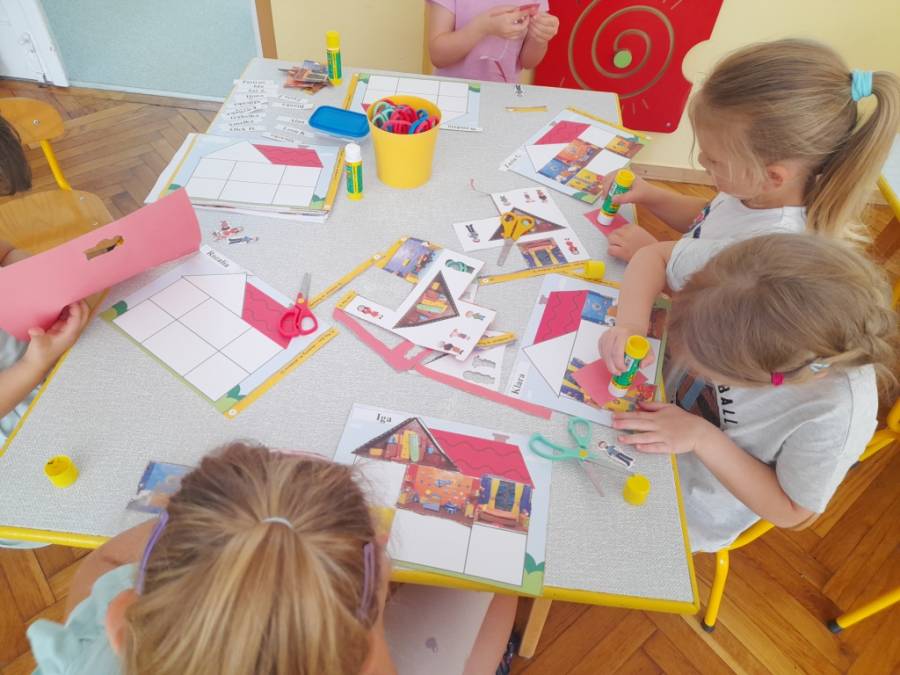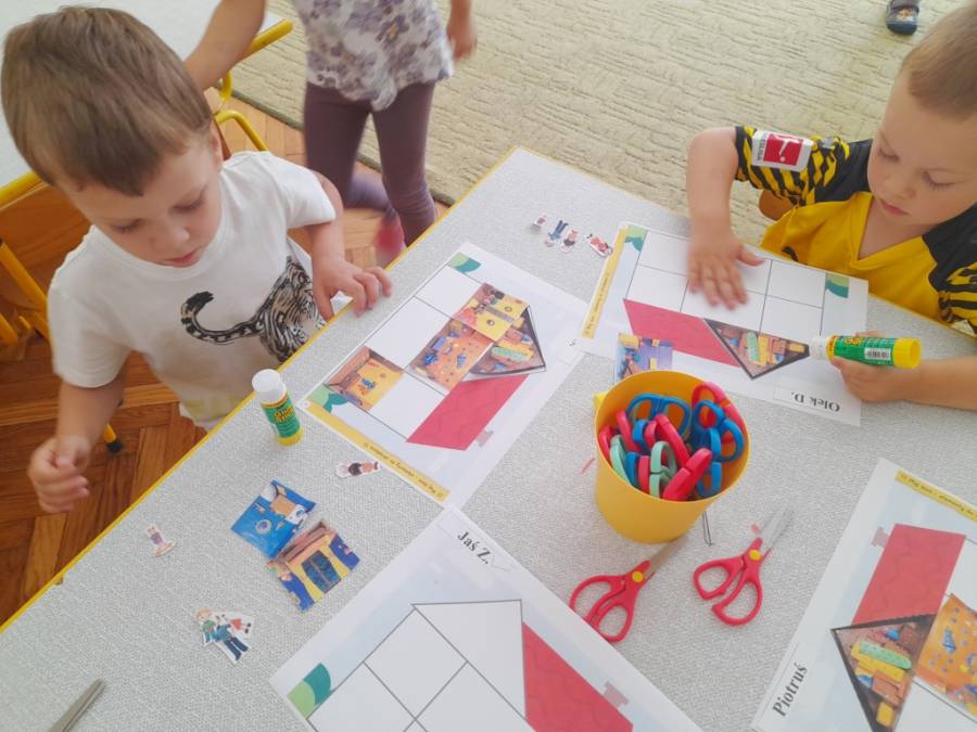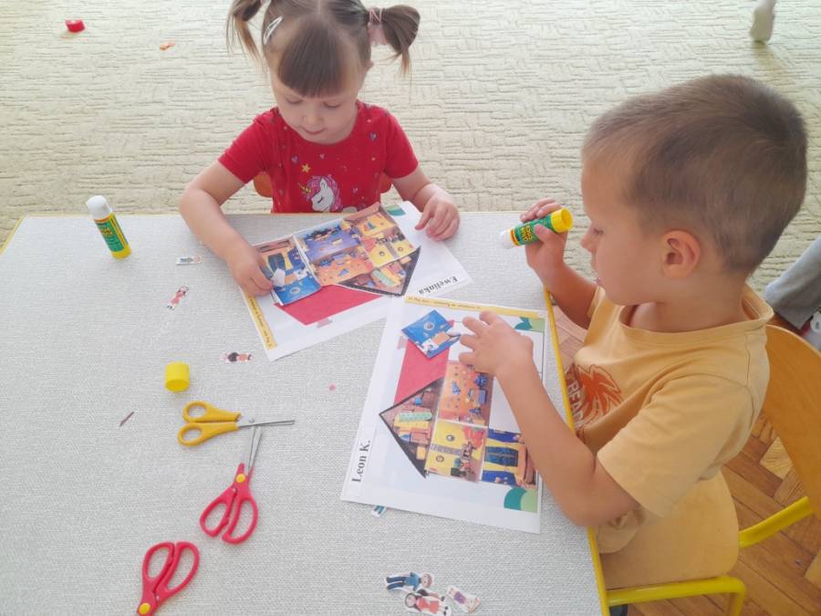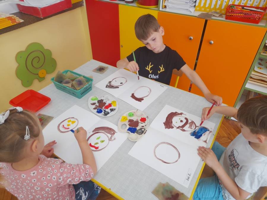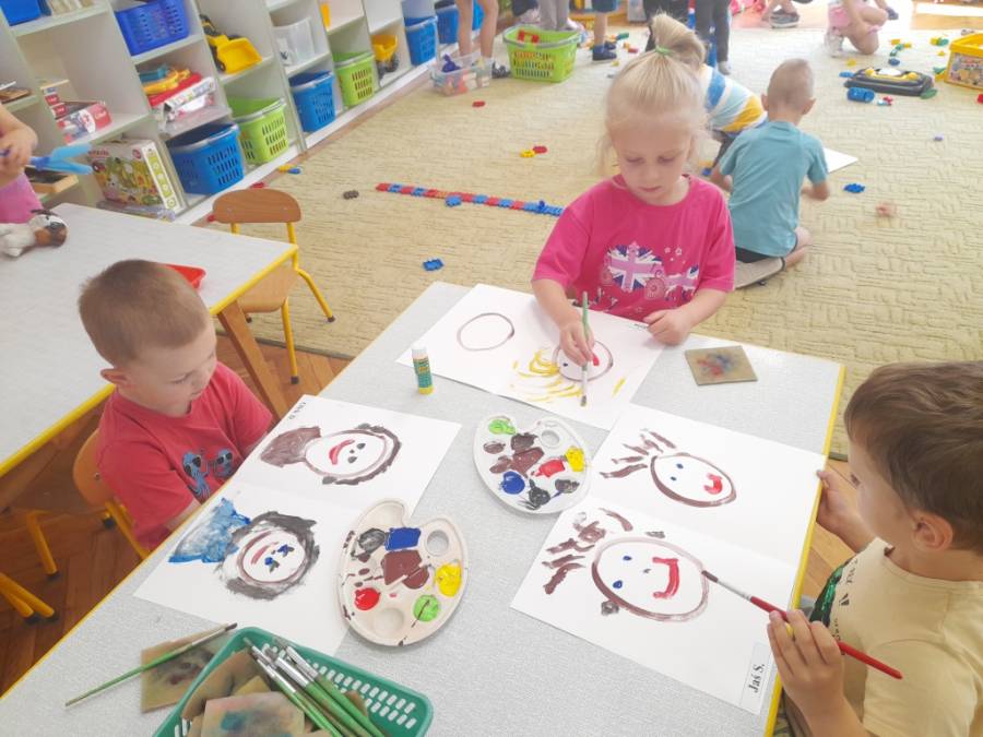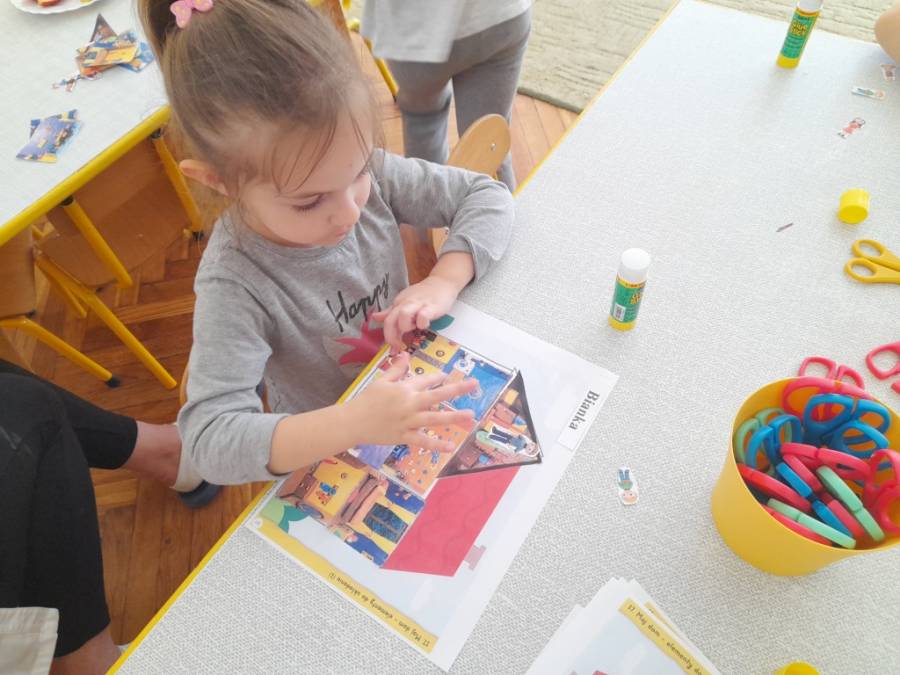 Podczas dzisiejszych zajęć, dzieci wypowiadały się na temat swojej rodziny. Wiedzą, że na bliskich zawsze mogą polegać. Dużą radość sprawiło dzieciom wycinanie obrazków przedstawiających wnętrza mieszkań i wklejanie ich w odpowiednie miejsca na szablonie domu. Możemy również pochwalić się portretami rodziców.
