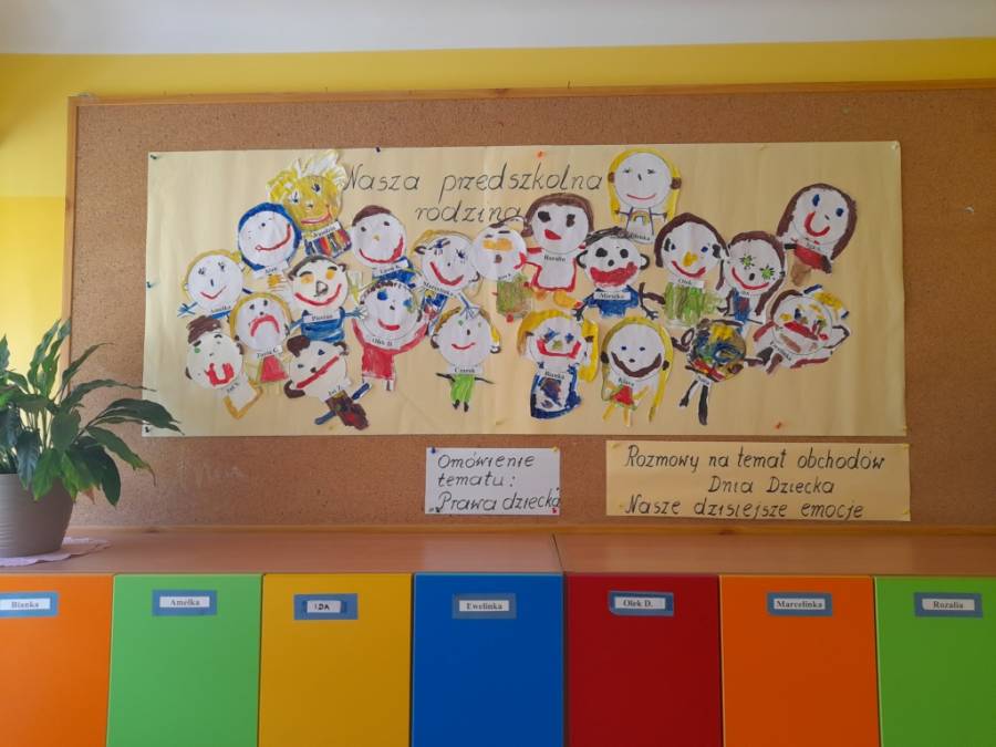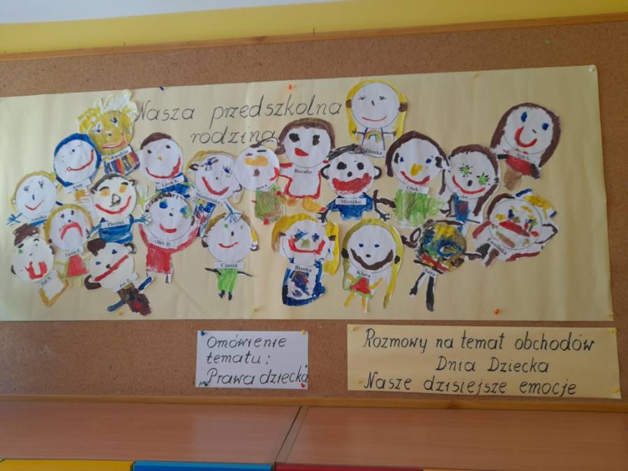 Z okazji Dnia Dziecka życzymy wszystkim dzieciom by były zawsze szczęśliwe! Podczas dzisiejszych zajęć, dzieci miały okazję powspominać spędzenie tego ważnego dnia. Pięknie wypowiadały się o przyjemnościach, jakie Ich spotkały. Miło było słuchać wrażeń. Poznały dziś swoje prawa, chętnie uczestnicząc w zajęciach. Zakończeniem było stworzenie ciekawego plakatu /Nasza przedszkolna rodzina/, gdzie wyraziły swoje emocje. W kolejnym dniu utrwalono dziecięce prawa, a także wspomniano o ich obowiązkach. Powstały książeczki praw i obowiązków.