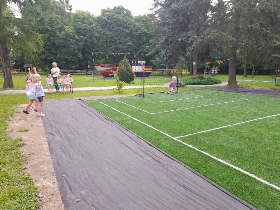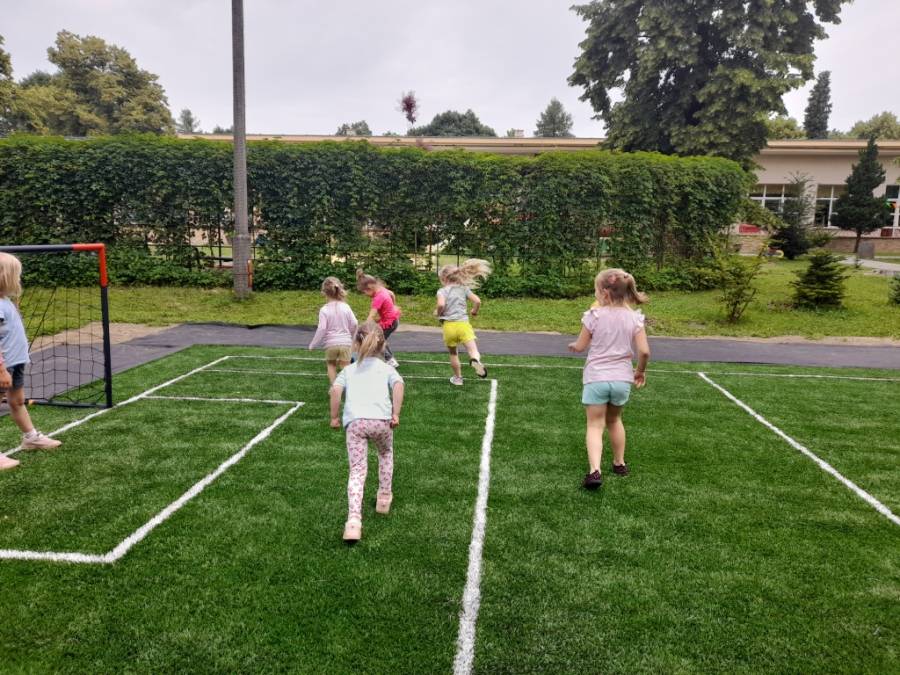 Dziś rozegraliśmy mecz na nowym boisku. Najpierw dziewczynki pokazały  swoje umiejętności piłkarskie, a chłopcy głośno kibicowali i na odwrót. Boisko cieszy się dużym zainteresowaniem i jest mocno oblegane.