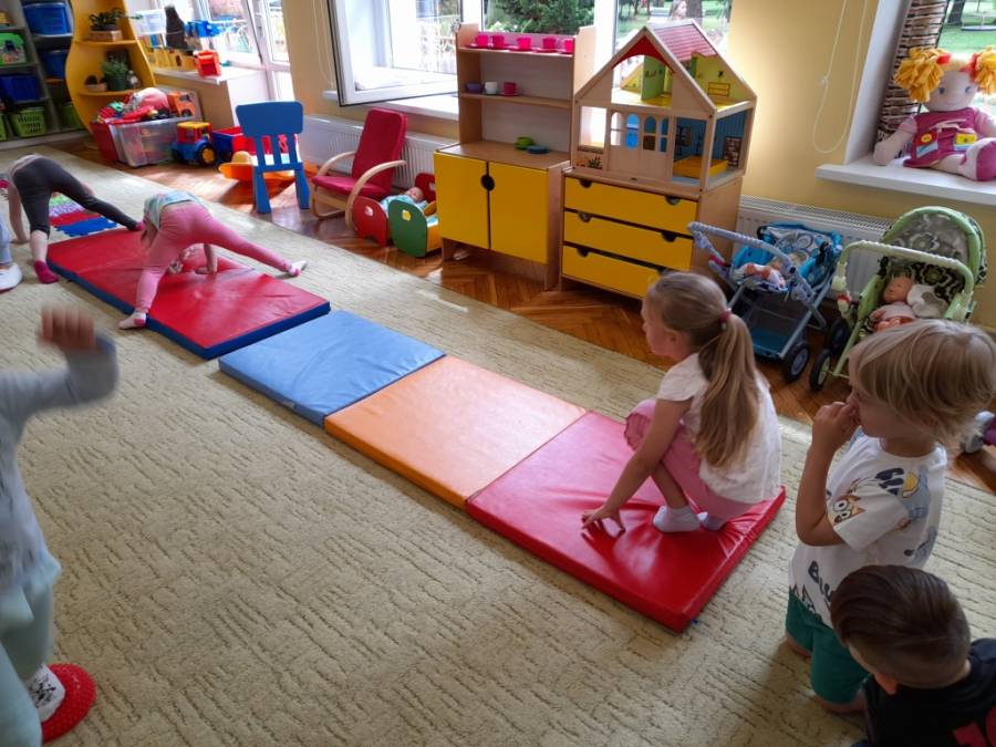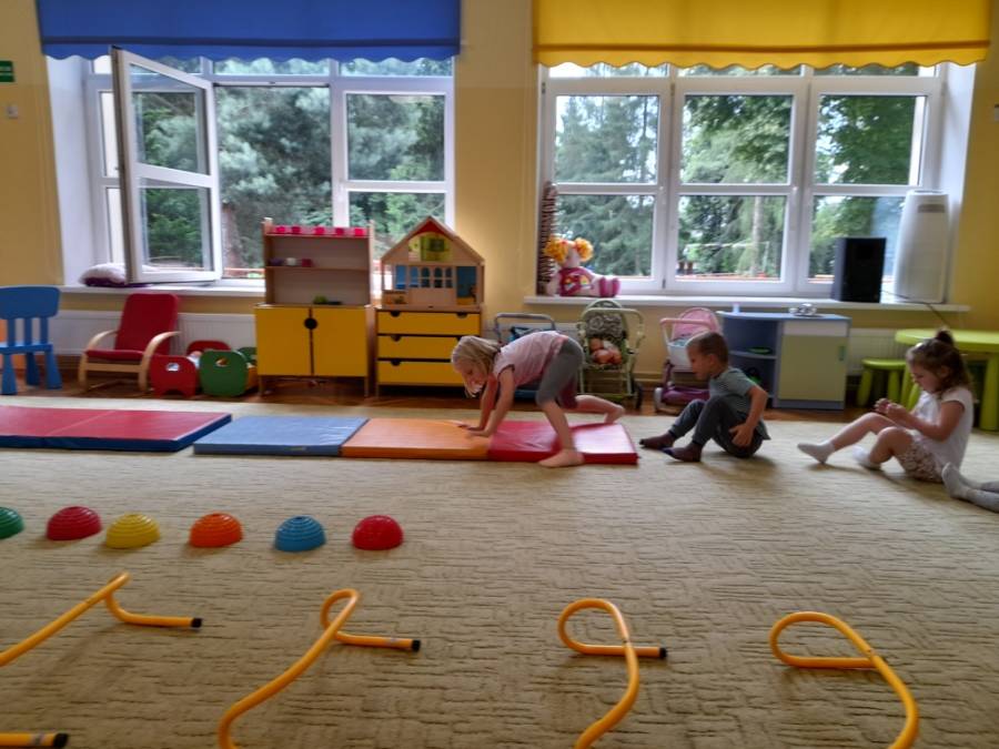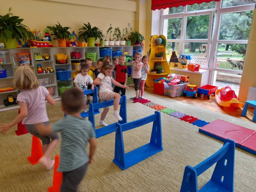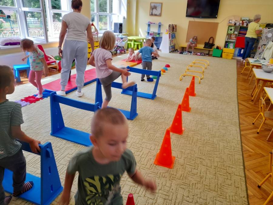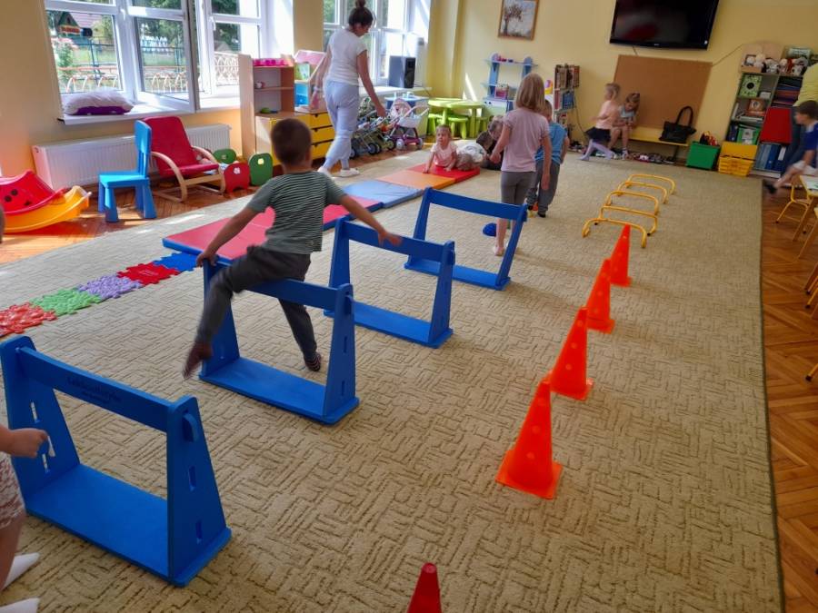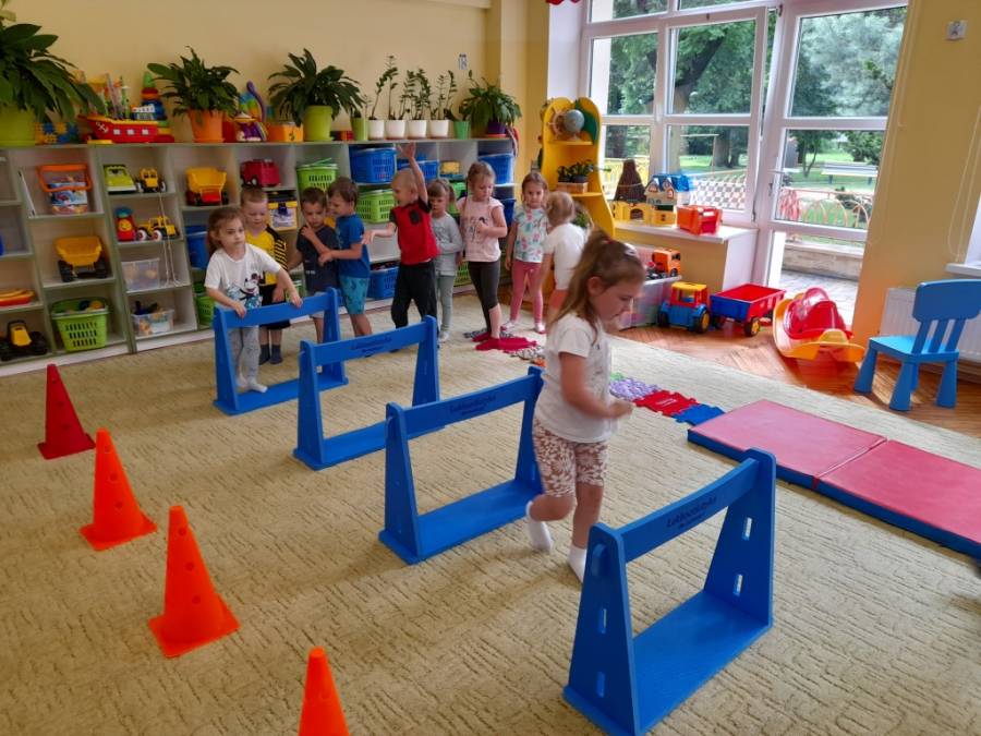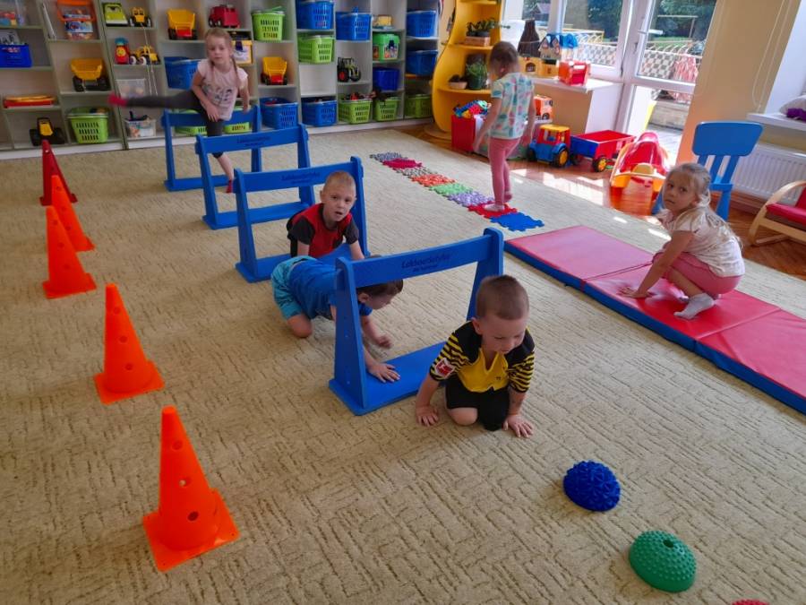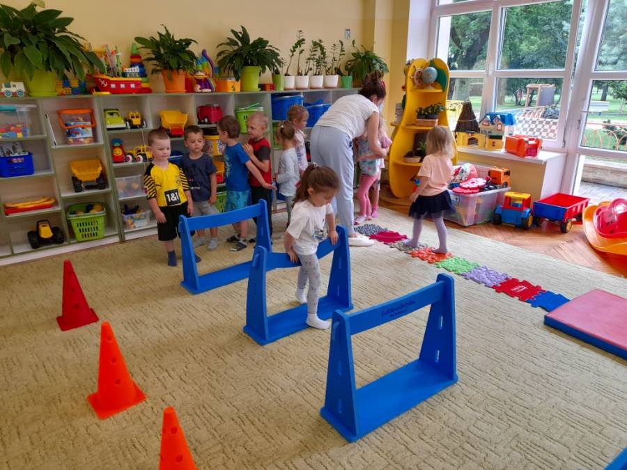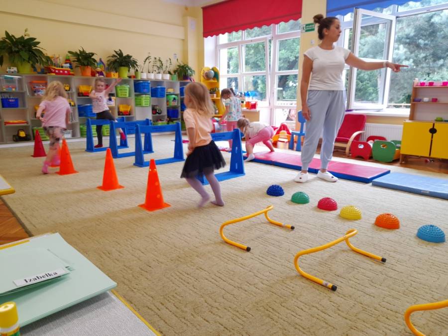 Tor przeszkód to to, co dzieci najbardziej lubią na zajęciach korekcyjnych pod czujnym okiem Pani Małgosi.