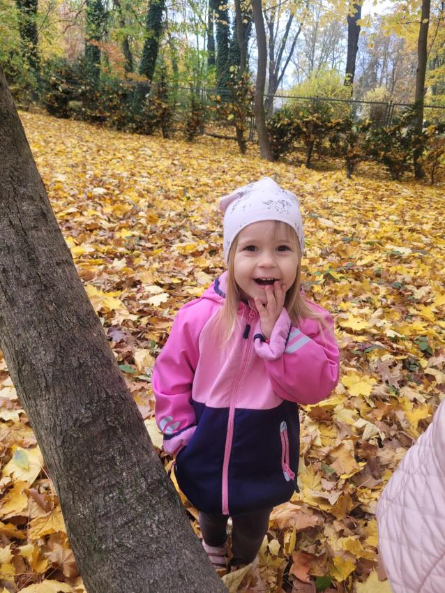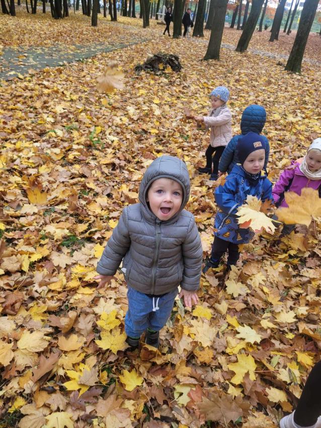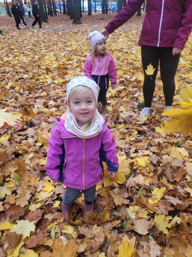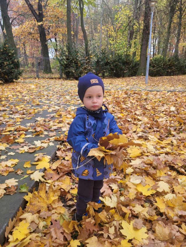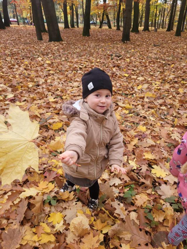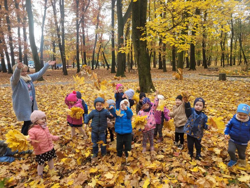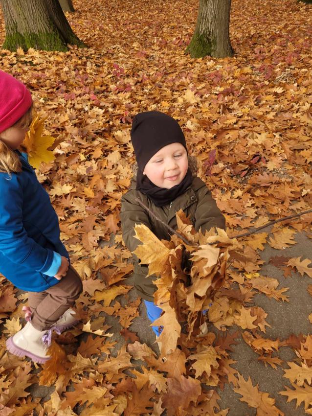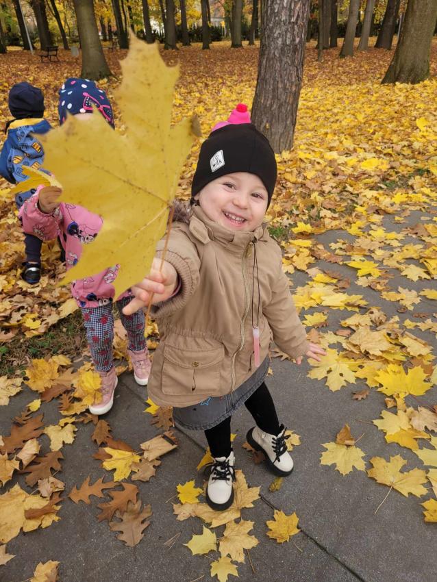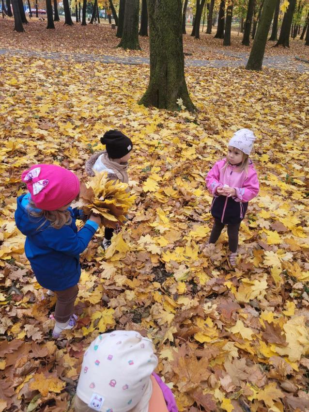 Korzystając z pięknej pogody  Nasze Pszczółki  wybrały się na swój pierwszy spacer do parku gdzie podziwiały piękną jesień wokół nas .