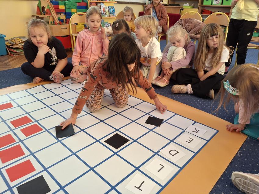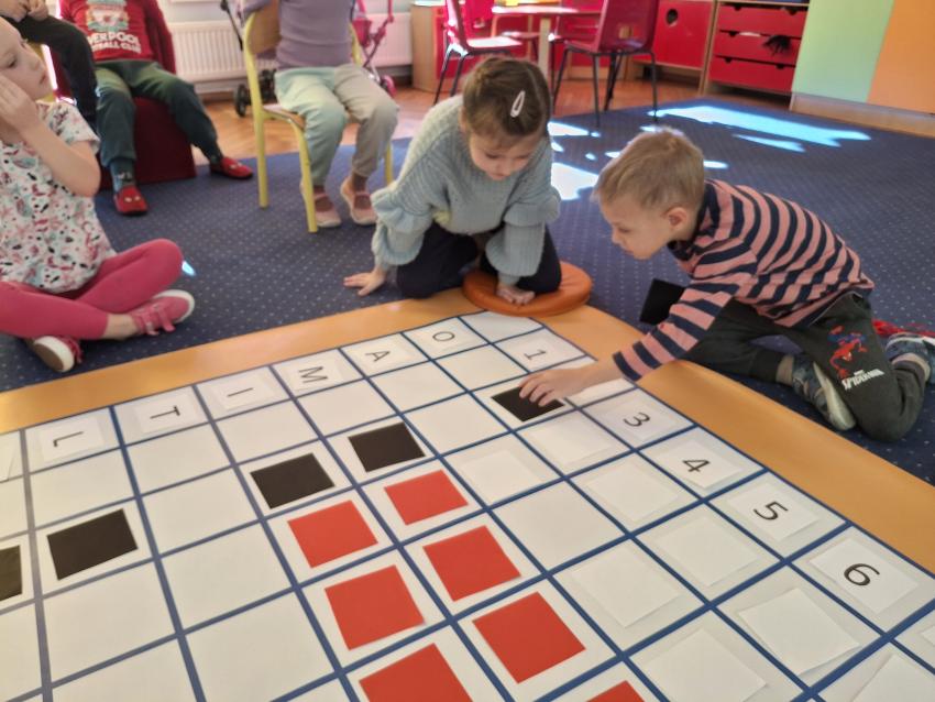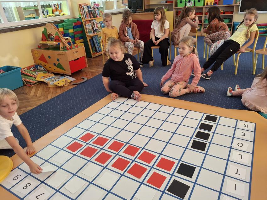 "Znamy symbole narodowe - flaga" - rozwiązywanie zakodowanej zagadki czyli KODOWANIE NA DYWANIE