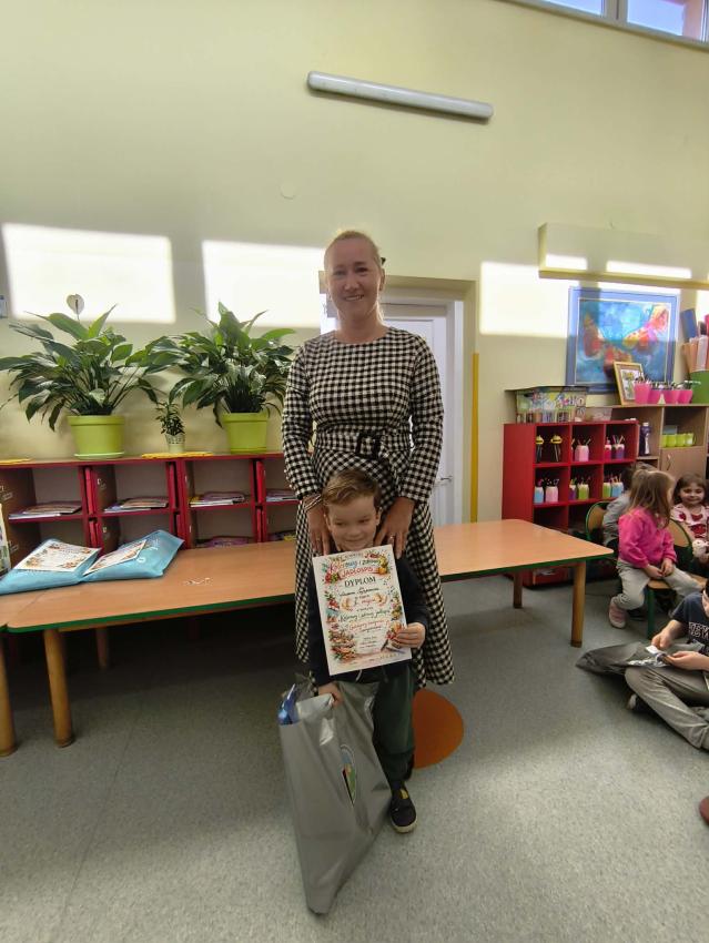 Dzieci z grupy Pajacyki z radością zaprosiły maluchy z pobliskiego żłobka, aby wspólnie świętować Dzień Pluszowego Misia. Na uczestników czekały wesołe zabawy, podczas których każdy mógł pochwalić się swoim ulubionym misiem. Wręczono także dyplomy dla Przyjaciela Pluszowego Misia, co sprawiło dzieciom ogromną radość. Spotkanie zakończył krótki występ przygotowany przez Pajacyki, który wywołał u gości wiele uśmiechów. Atmosfera była pełna ciepła, dobrej zabawy i misiowej przyjaźni.