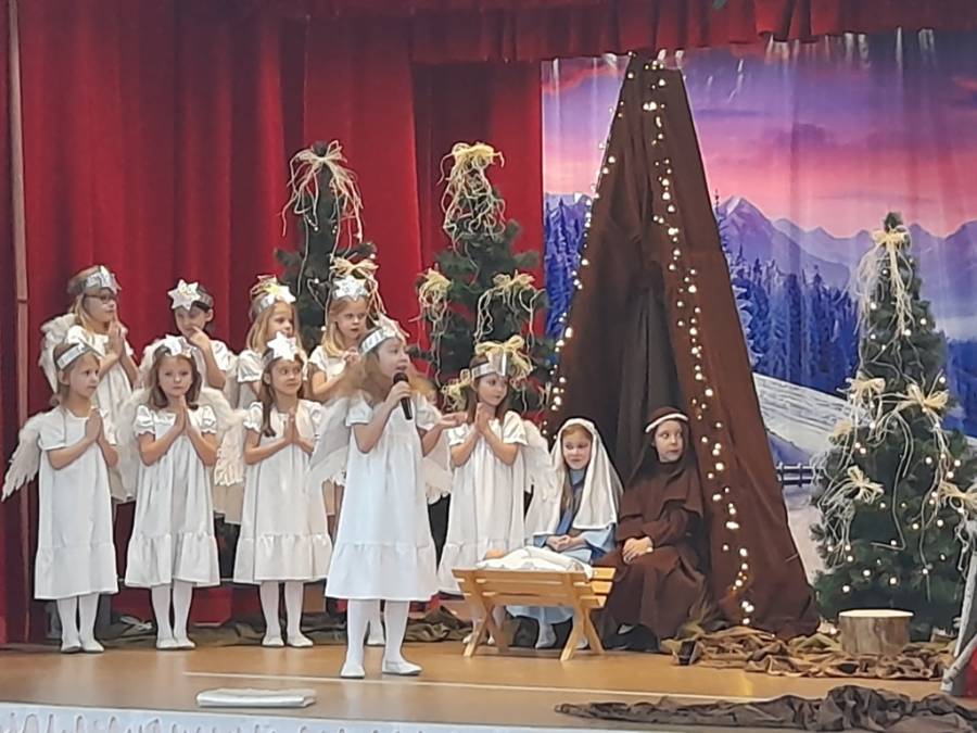 Grupa Pracowitych Pszczółek wprowadziła nas w nastrój jaki towarzyszy Świętom Bożego Narodzenia. Dzieci pieknie przedstawiły swój program, a towarzysząca mu oprawa muzyczna i sceniczna dopełniły swego. Dziękujemy Paniom za trud włożony w zorganizowanie wydarzenia!