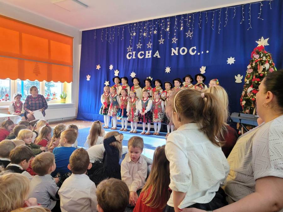 Dzieci z grupy Leśnych Ludków swoim występem wprowadziły nastrój prawdziwie przedświąteczny. Pięknie śpiewały kolędy i pastorałki oraz recytowały wiersze. Dziękujemy dzieciom i Paniom za duży wkład pracy.