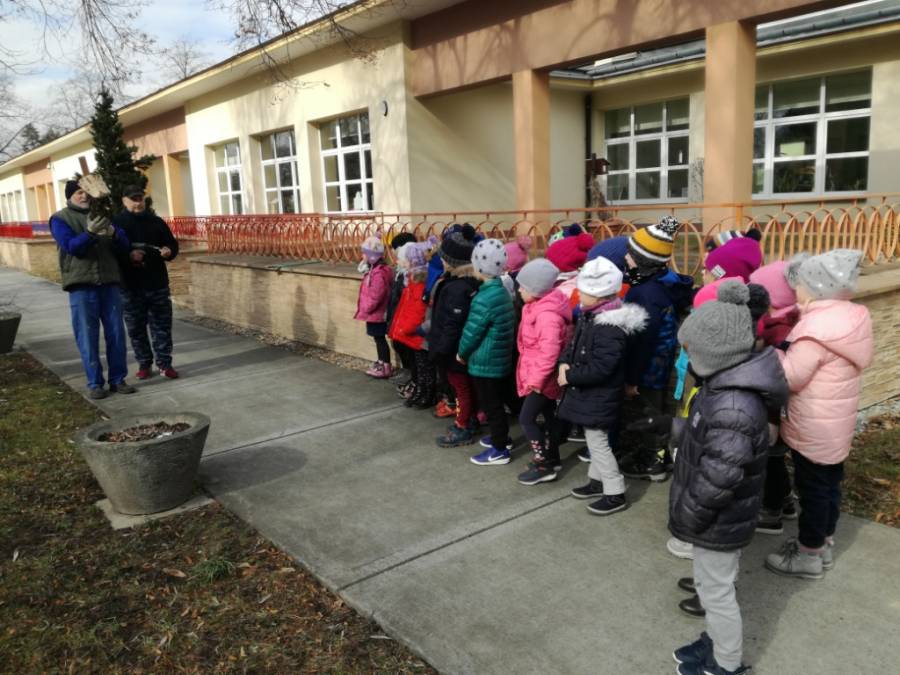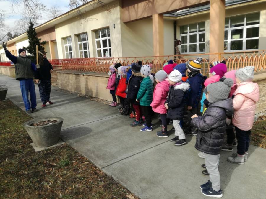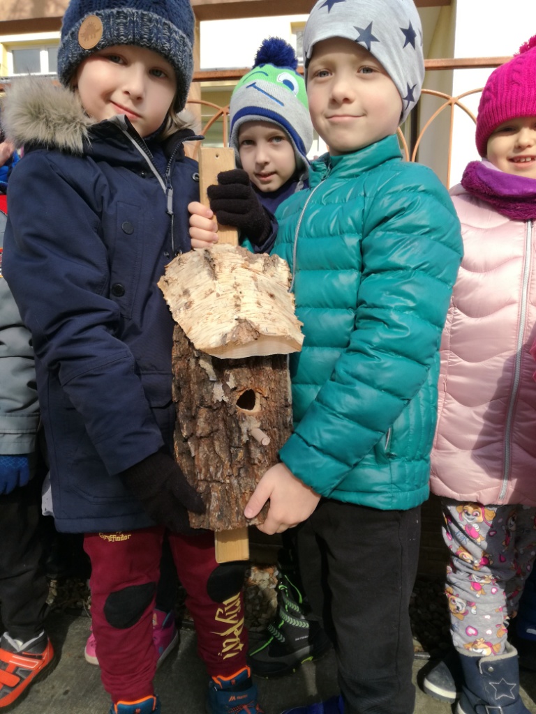 W ramach konkursu na wykonanie budki lęgowej "Zaprośmy ptaki do Tarnowa" w przedszkolu wykonano i zainstalowano w ogrodzie budkę zapewniającą ptakom bezpieczne miejsce do gniazdowania. Podczas lekcji pokazowej w naszej grupie - dzieci dowiedziały się jakie ptaki zamieszkują poszczególne budki, kiedy i jak je zawieszać. Uświadomiono dzieciom o konieczności zakładania budek i dbania o przyrodę. Wspólnie z Panami pracującymi w przedszkolu szukały odpowiedniego miejsca do jej zawieszenia. Teraz czekają z niecierpliwością na "pierwszych lokatorów".