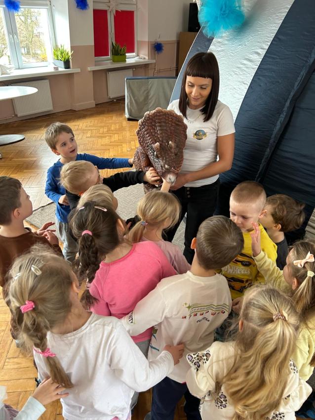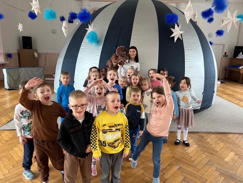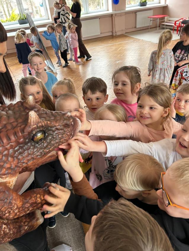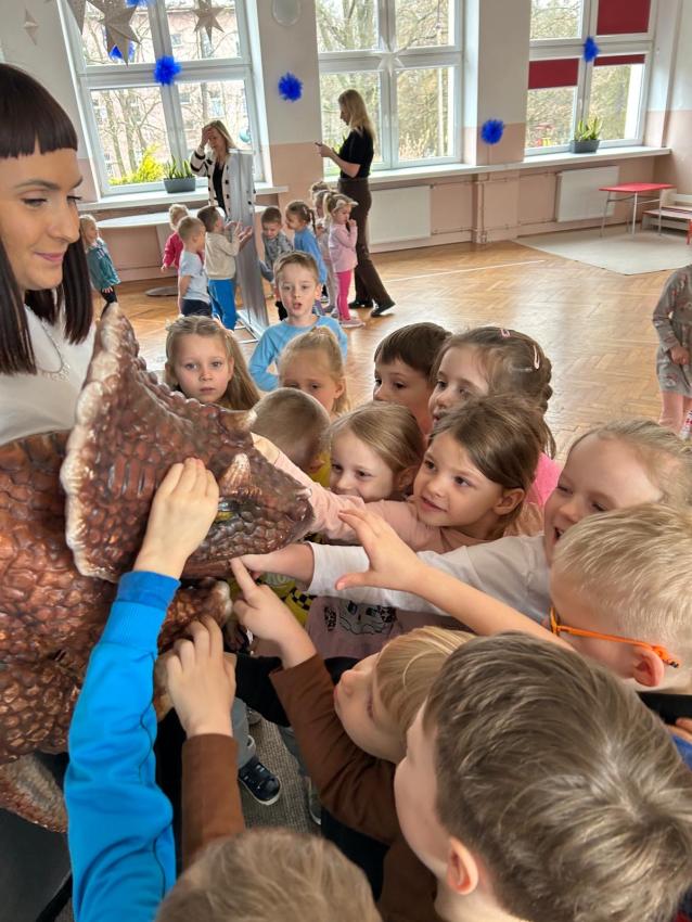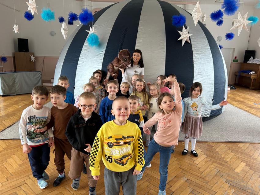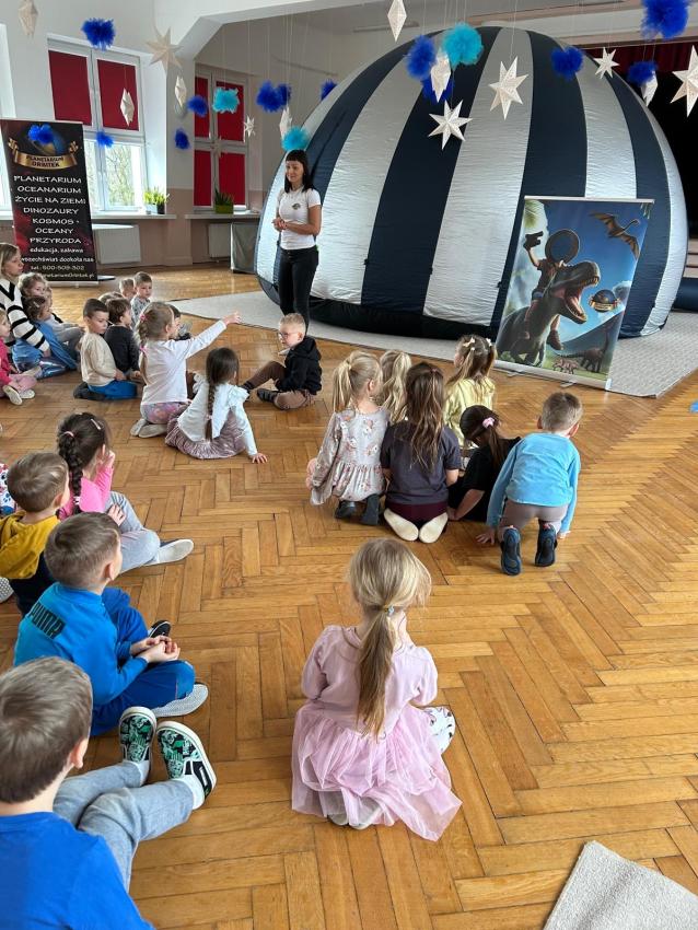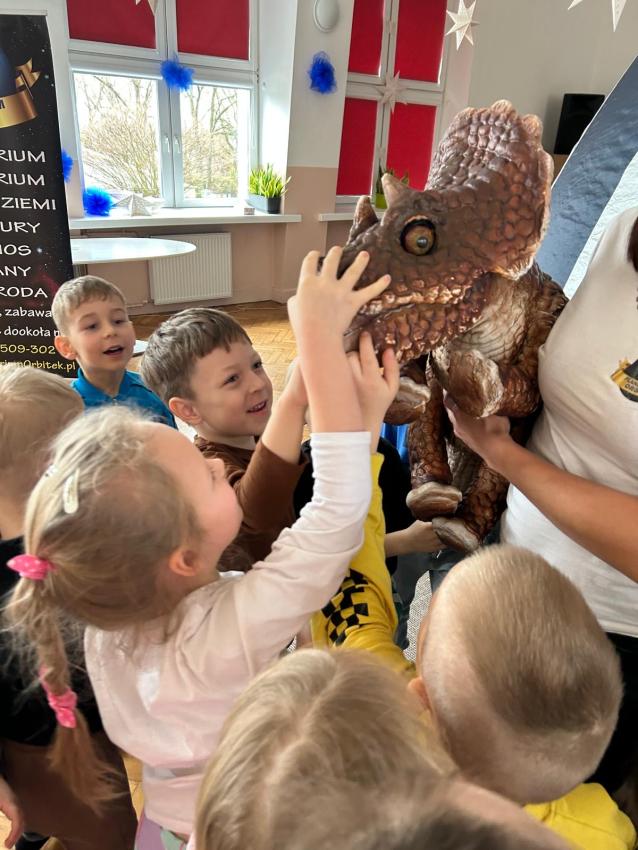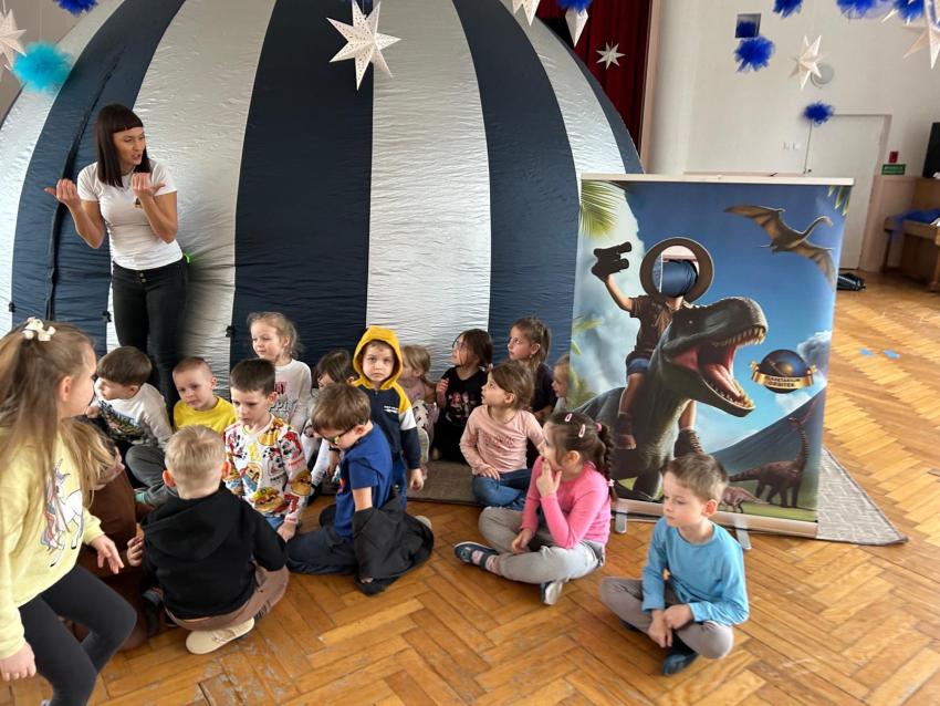 W przedszkolu obchodziliśmy Dzień Dinozaura, który był pełen radości i ciekawych aktywności. Dzieci brały udział w zabawach ruchowych, konkursach oraz zajęciach plastycznych, podczas których tworzyły własne ?prehistoryczne? prace. Największą atrakcją był udział w seansie w planetarium, gdzie dzieci mogły zobaczyć fascynującą prezentację o dinozaurach i ich świecie. To wyjątkowe wydarzenie wzbudziło ogromne zainteresowanie i dostarczyło wielu niezapomnianych wrażeń.
