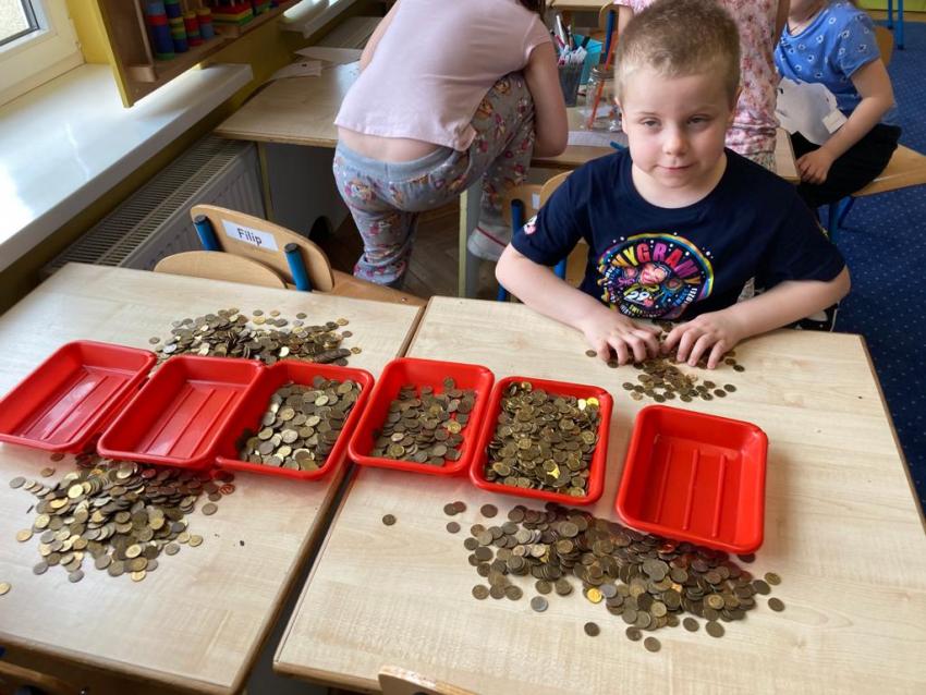 Dzieci wraz z rodzicami zebrały w tym roku 200 zł. Starszaki dzielnie pomagały w przeliczaniu i pakowaniu grosików dla potrzebujących dzieci. Dziękujemy wszystkim,którzy wzięli udział w akcji.