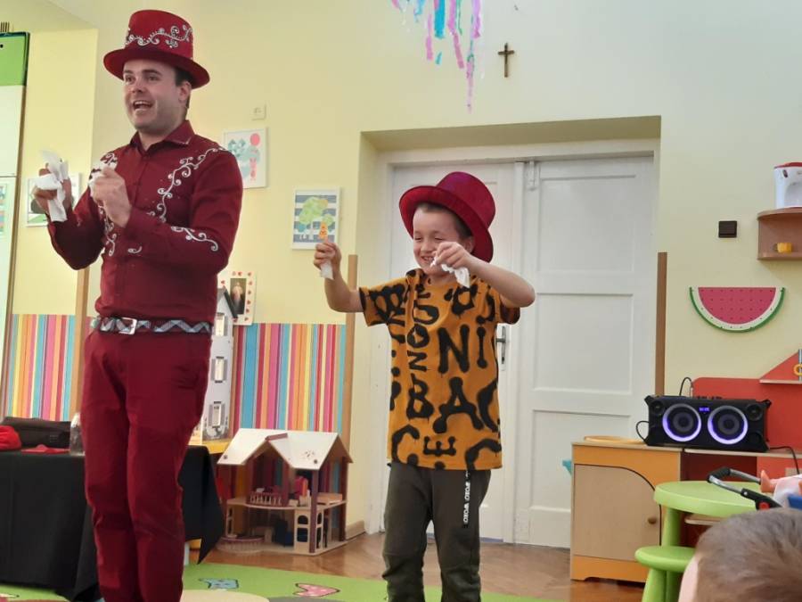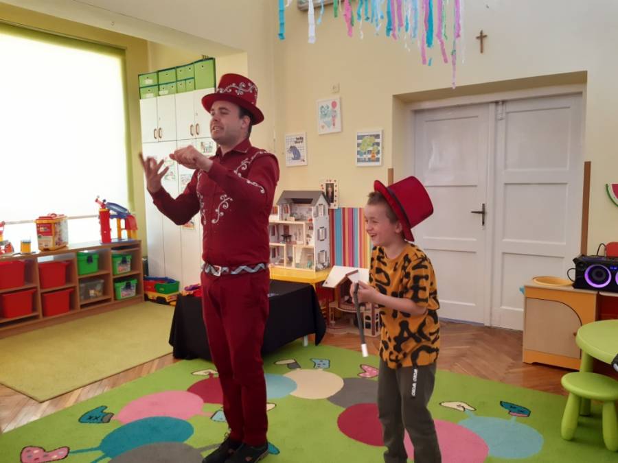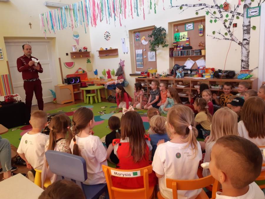 Dzisiejszy dzień, to niezapomniana wspólna zabawa w ogrodzie przedszkolnym, prowadzona przez  Zespół Pracowni Jaszczur&Przyjaciele. Pogoda, która dopisała tego dnia, sprzyjała wielu zabawom i konkursom pod gołym niebem. Dzieci wspaniale się bawiły, o czym świadczą załączone zdjęcia. Gościliśmy również Magika-Iluzjonistę, który swoim występem oczarował wszystkie dzieci.