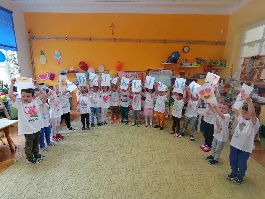 Serdecznie dziękujemy Państwu Gawronom za wykonanie koszulek, w których dzieci pięknie się prezentują i przypadły im do gustu.