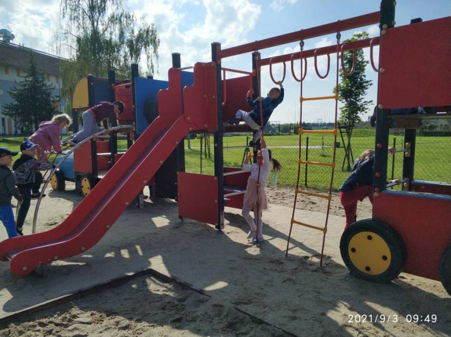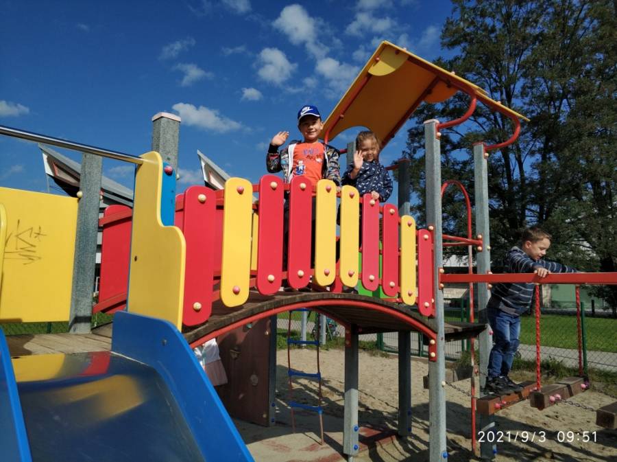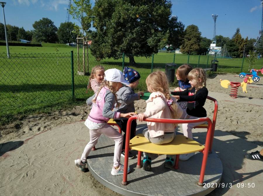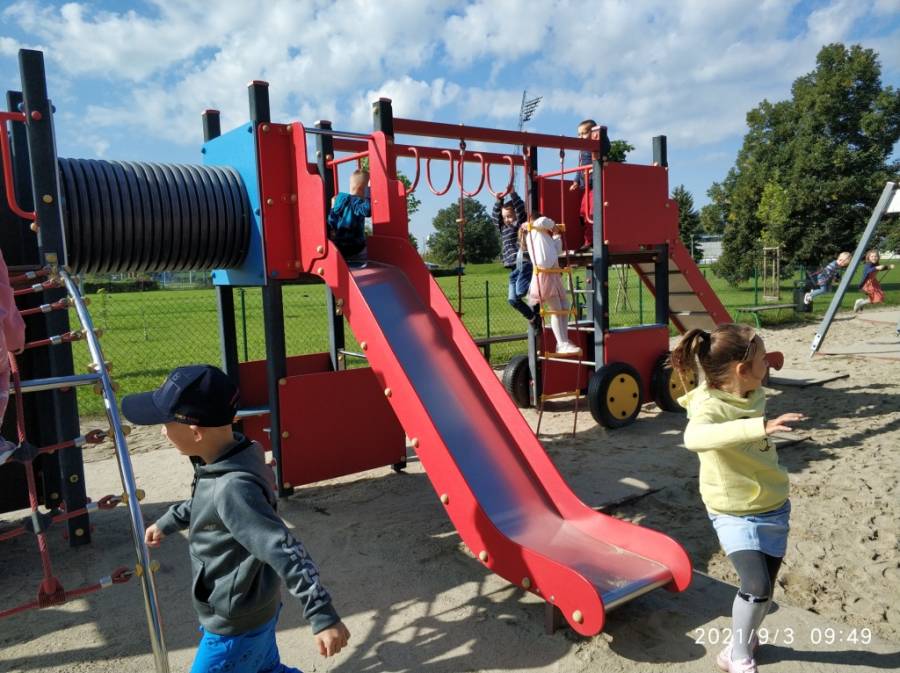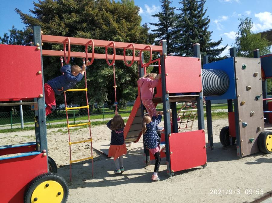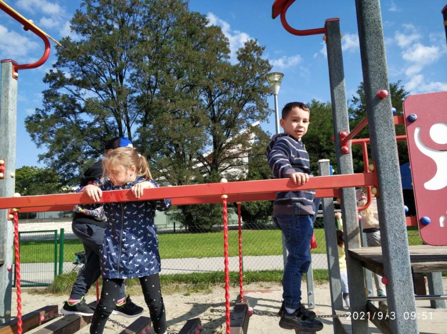 03.09.2021 r. Zabawy na placu zabaw obok CSM - gr. V