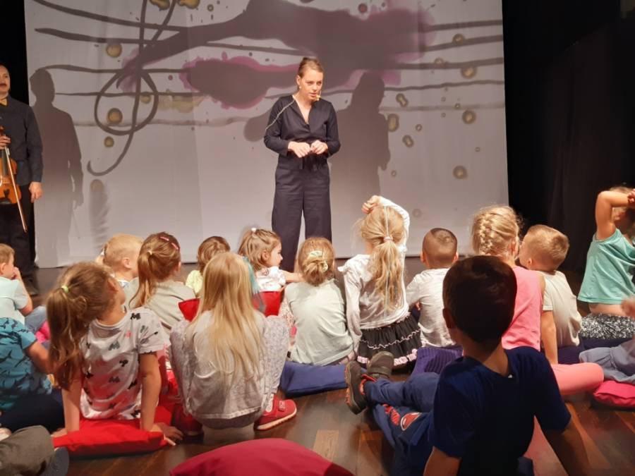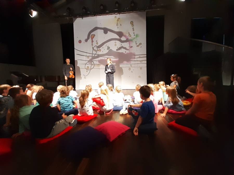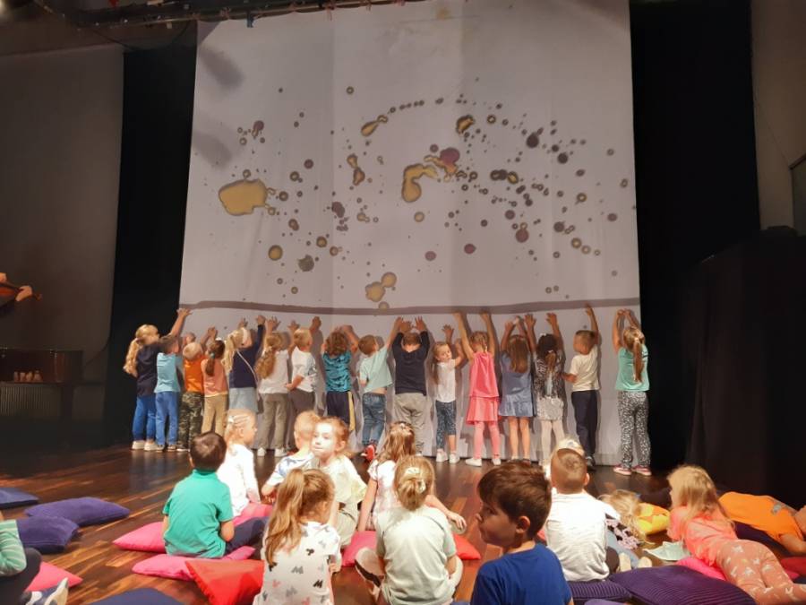 Spektakl i warsztaty "Abstrakcja" w CSM to połaczenie malarstwa, muzyki skrzypiec i delikatnego śpiewu, które zostały zobrazowane na dużym ekranie dzięki użyciu epidiaskopu . Jakie wrażenia odniosły dzieci? Były oczarowane, zainteresowane i bardzo odprężone podczas pokazu.