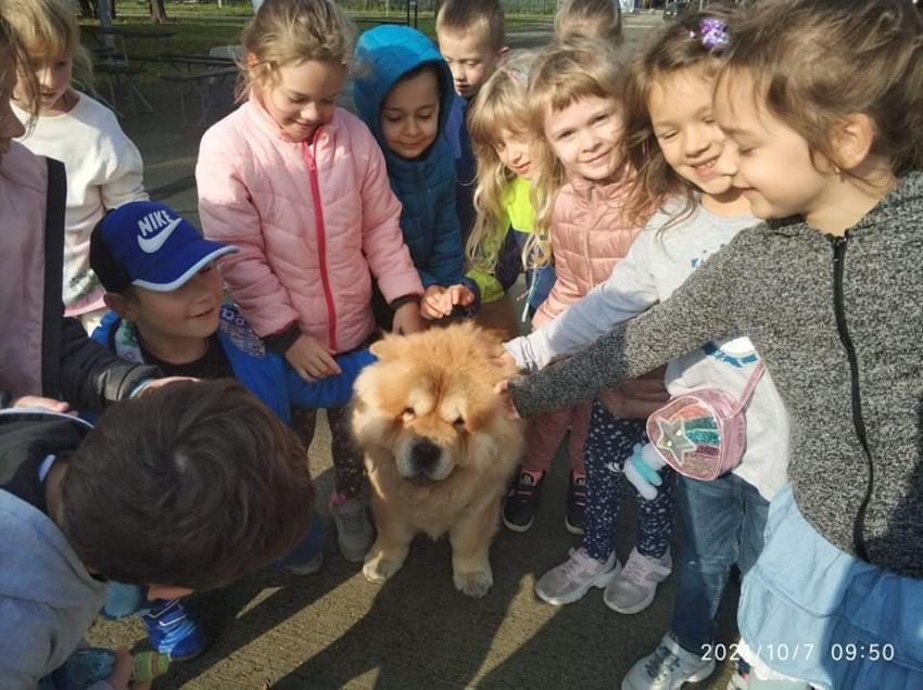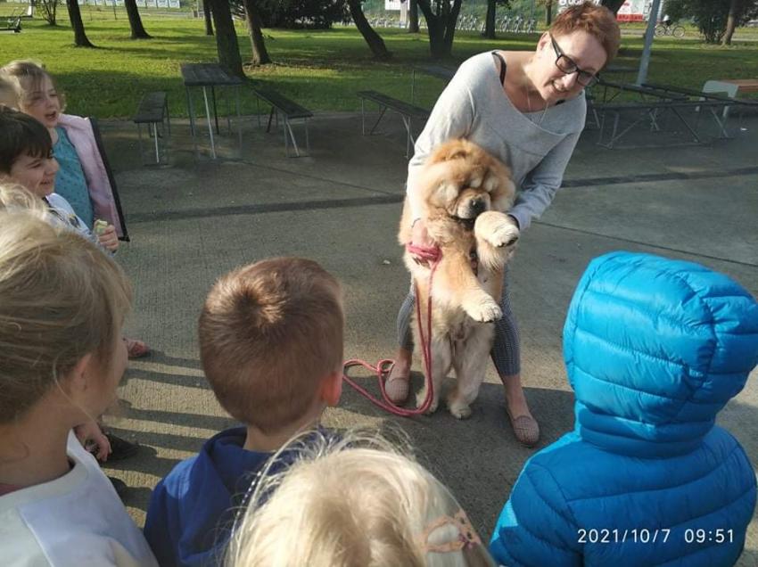 W drodze do biblioteki spotkaliśmy uroczego lwa, tzn. psa. Nie mogliśmy oderwać od niego oczu. Za zgodą właściciela i po upewnieniu się, że nie jest agresywny dzieci mogły go pogłaskać. A bibliotece czekała na nas jak zwykle Pani Kasia. Tym razem spotkanie było poświęcone twórczości Marii Konopnickiej w ramach Ogólnopolskiego Projektu "Co słonko widziało". Na zakończenie wybraliśmy się na plac zabaw przy CSM.
