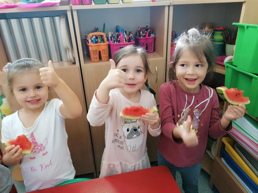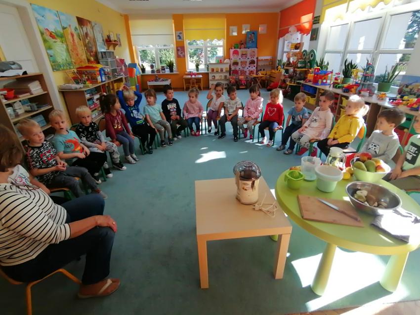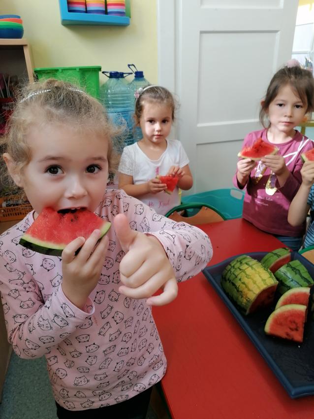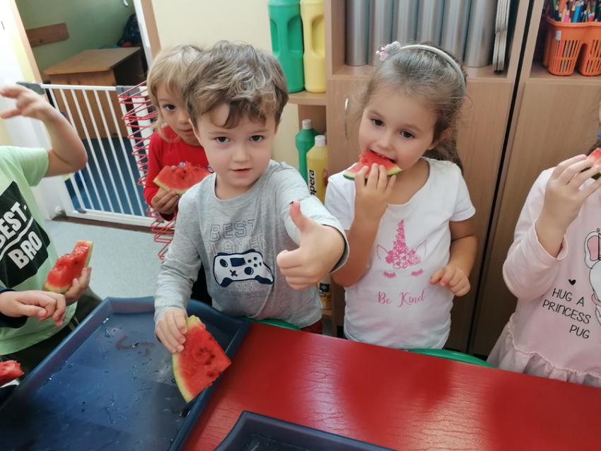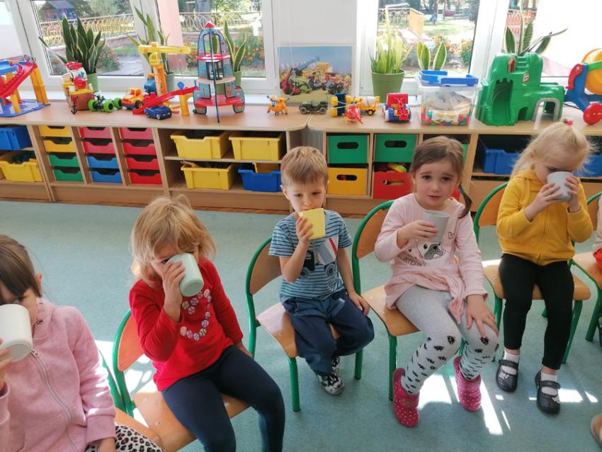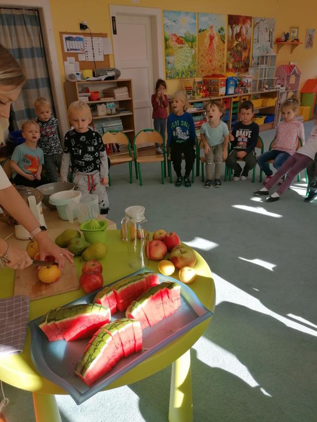 Zuchy rozpoczęły swoją przygodę z Ogólnopolskim Projektem czytelniczym "Co słonko widziało". W ramach I modułu - "JESIEŃ" ,wysłuchały wiersza Marii Konopnickiej pt. "Jesienią", następnie samodzielnie wykonały pyszny sok jabłkowo- gruszkowy. Dzieci wiedzą jak ważne dla zdrowia jest spożywanie warzyw i owoców, w których znajduje się wiele witamin i z wielką chęcią zajadały się arbuzem. Dziękujemy naszemu koledze Tymusiowi za poczęstunek !