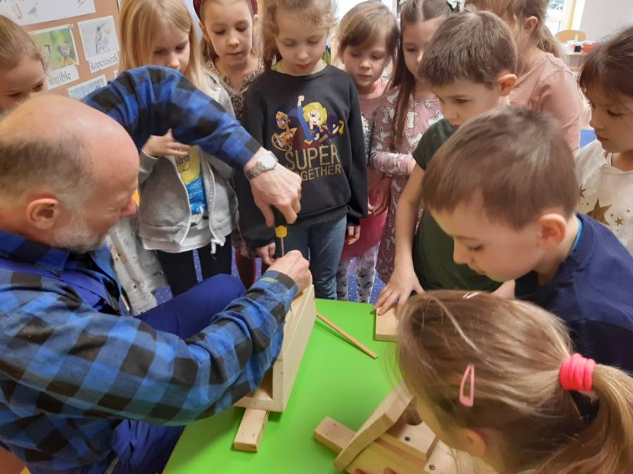 "Zaprośmy ptaki do Tarnowa"  to akcja organizowana przez Urząd Miejski w Tarnowie przy współpracy Zespołu Parków Krajobrazowych Województwa Małopolskiego. Przygotowania do konkursu obejmowały udział dzieci w zajęciach edukacyjnych "Kochamy Ptaki", podczas których Pan Władysław przybliżył wychowankom powody i sposoby ochrony gatunkowej ptaków. Dzieci mają świadomość  dlaczego ptaki potrzebują naszej pomocy, co stanowi dla nich zagrożenie, które gatunki szczególnie narażone są na ataki drapieżników i w jaki sposób możemy im pomóc. Podczas zajęć została wykonana budka lęgowa, która została umieszczona w ogrodzie przedszkolnym. Z niecierpliwością czekamy na pierwszych mieszkańców.