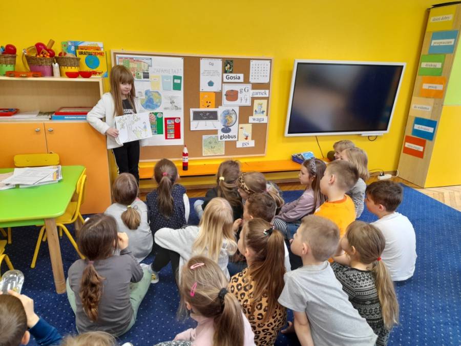 Dziś zajęcia poprowadziły dzieci. Tematem była "Ekologia". Pięknie opowiadały historyjki obrazkowe dotyczące dbania o środowisko. Posiadają dużą wiedzę. Jestem z nich dumna!