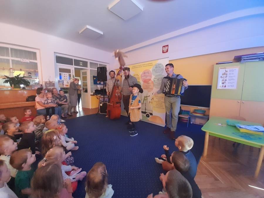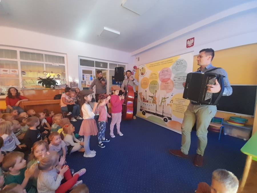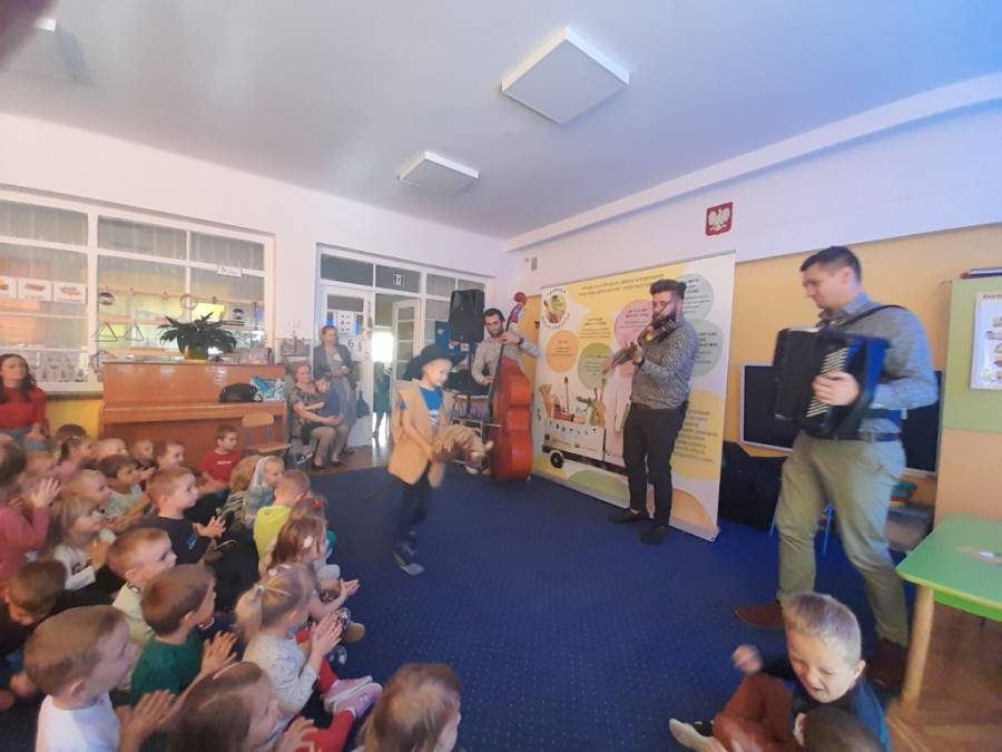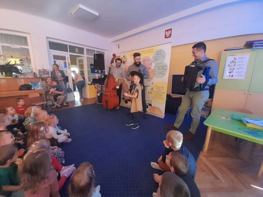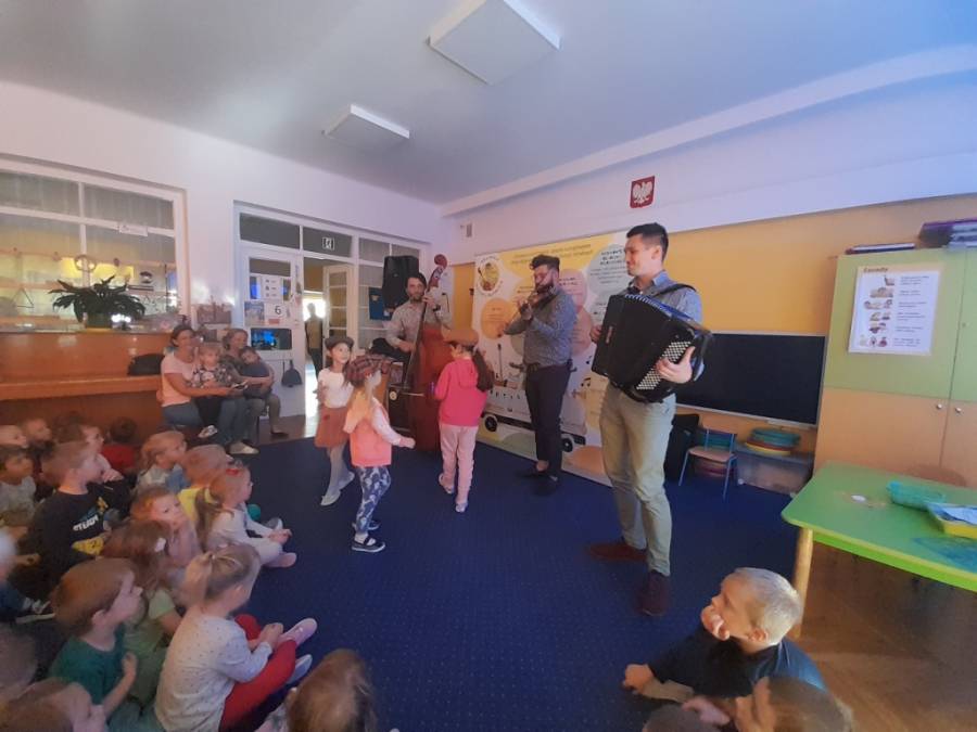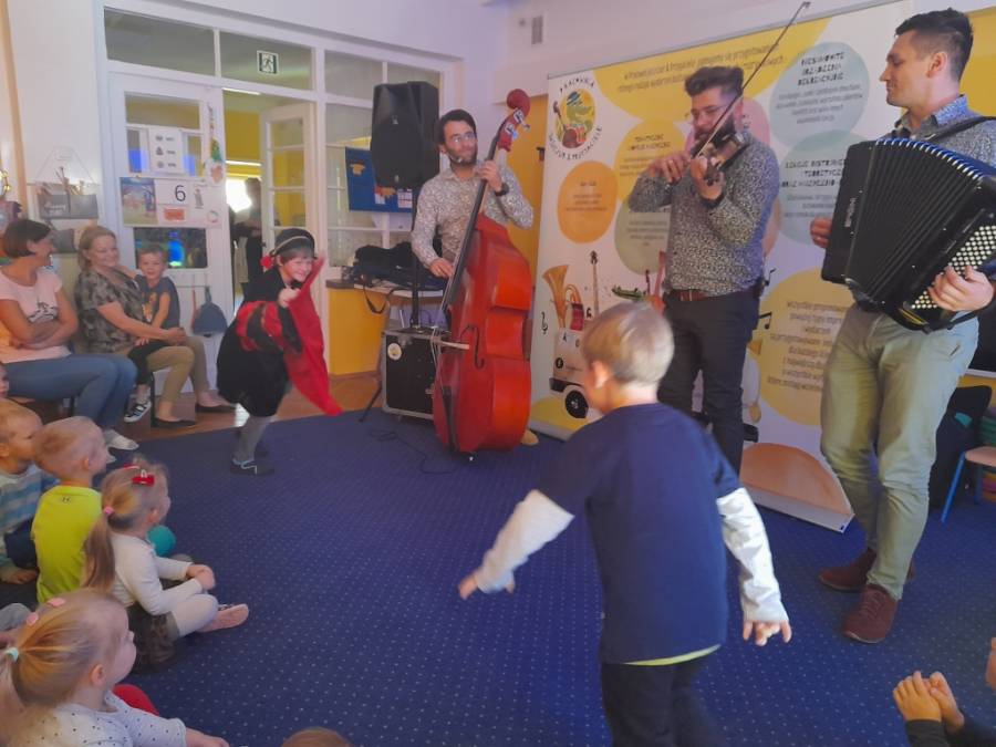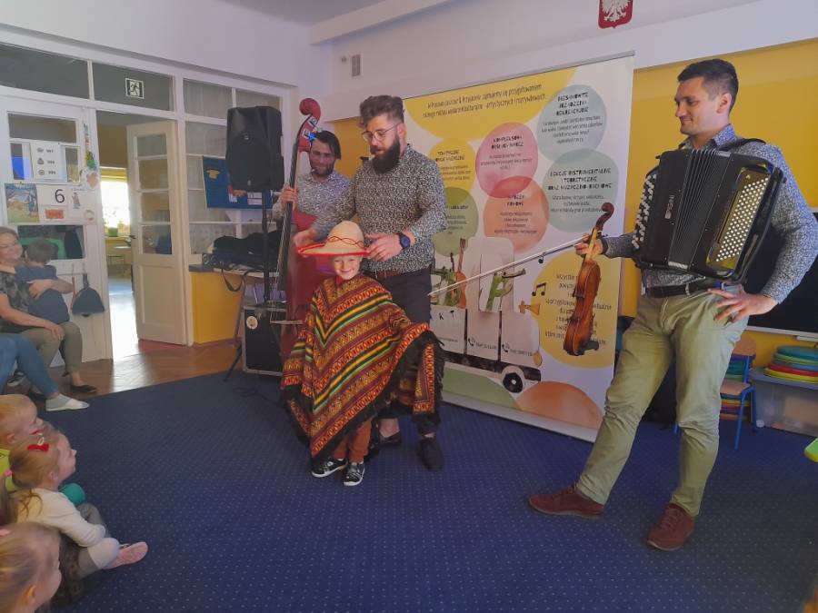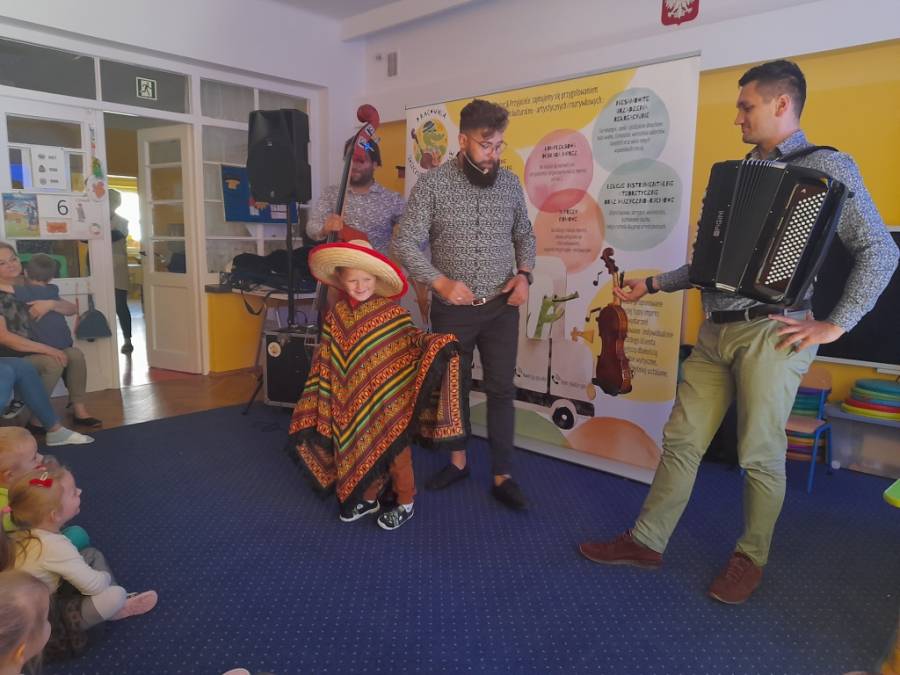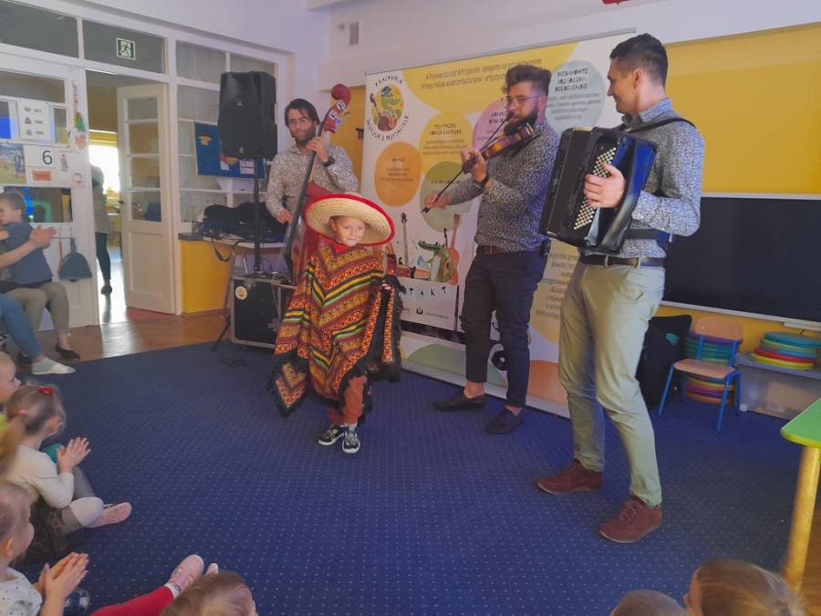 Podróż muzyczna samolotem i statkiem to temat dzisiejszego koncertu. Panowie z zespołu przenieśli nas do Meksyku, Hiszpanii, Francji, Ameryki, Ukrainy. Dzieci poznały zwyczaje panujące w tych krajach oraz  muzykę charakterystyczną dla tych miejsc. Zabawa była jak zwykle wspaniała!