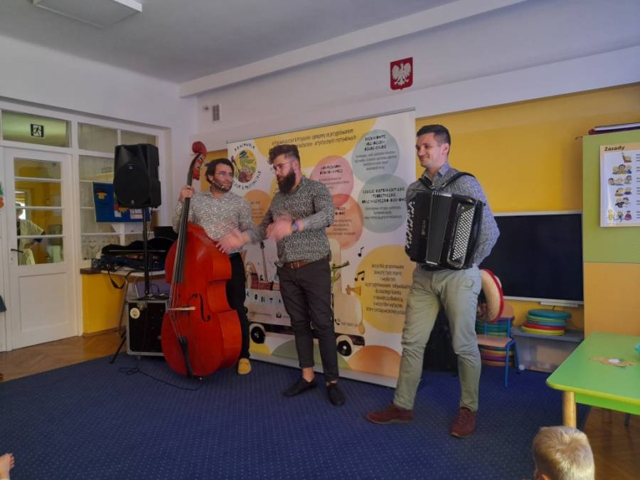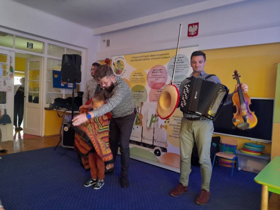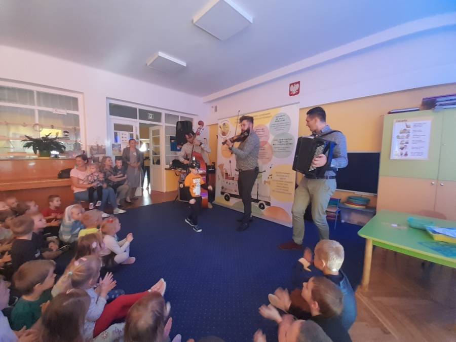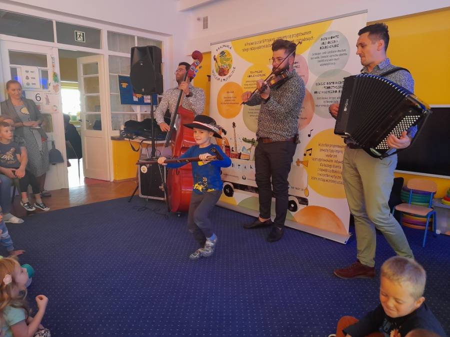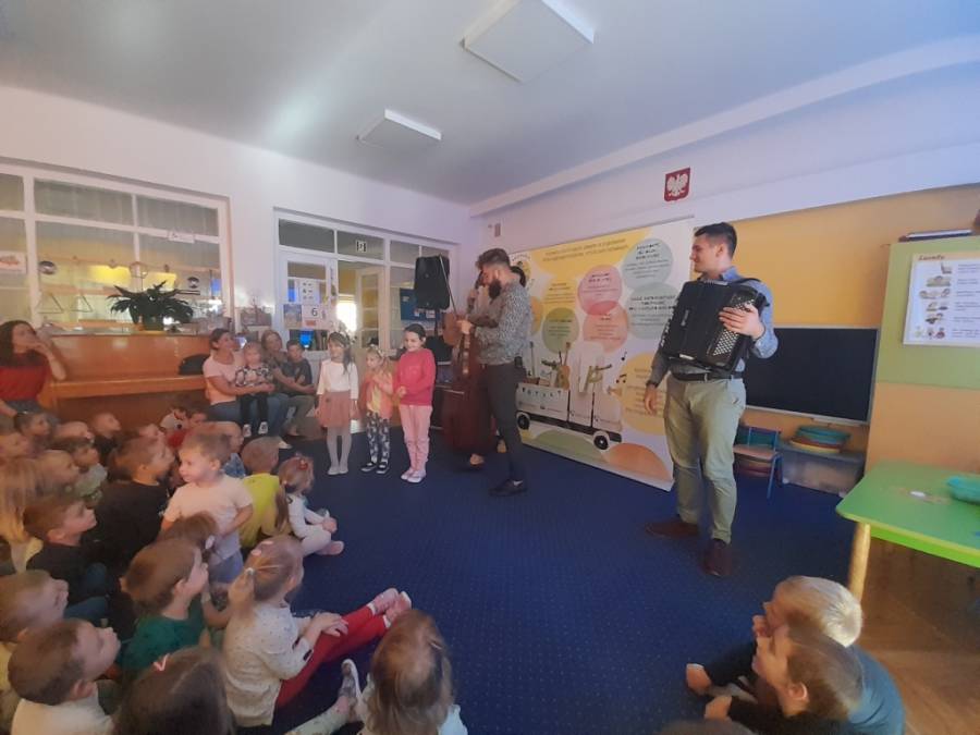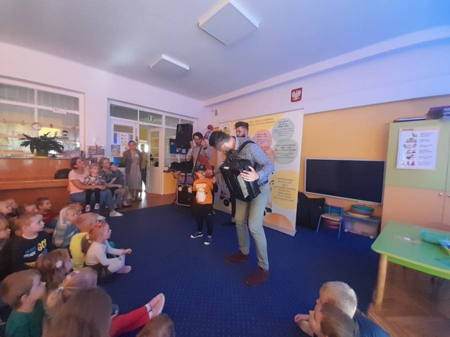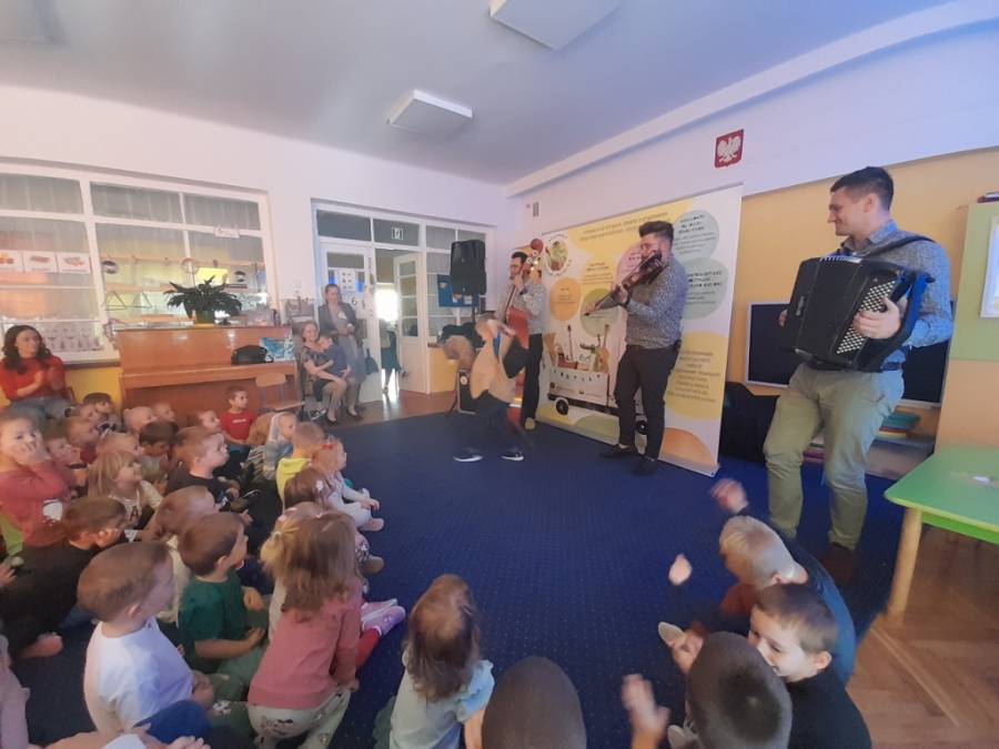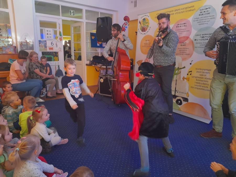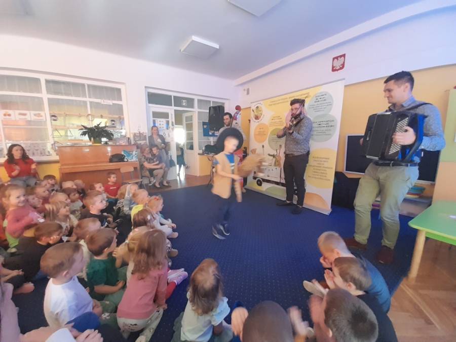 Podróż muzyczna samolotem i statkiem to temat dzisiejszego koncertu. Panowie z zespołu przenieśli nas do Meksyku, Hiszpanii, Francji, Ameryki, Ukrainy. Dzieci poznały zwyczaje panujące w tych krajach oraz  muzykę charakterystyczną dla tych miejsc. Zabawa była jak zwykle wspaniała!