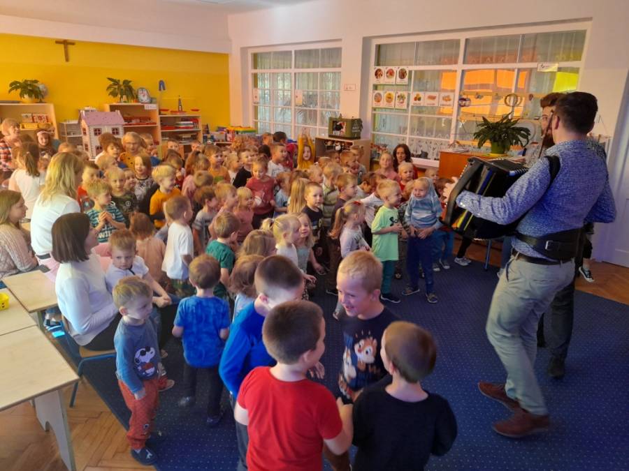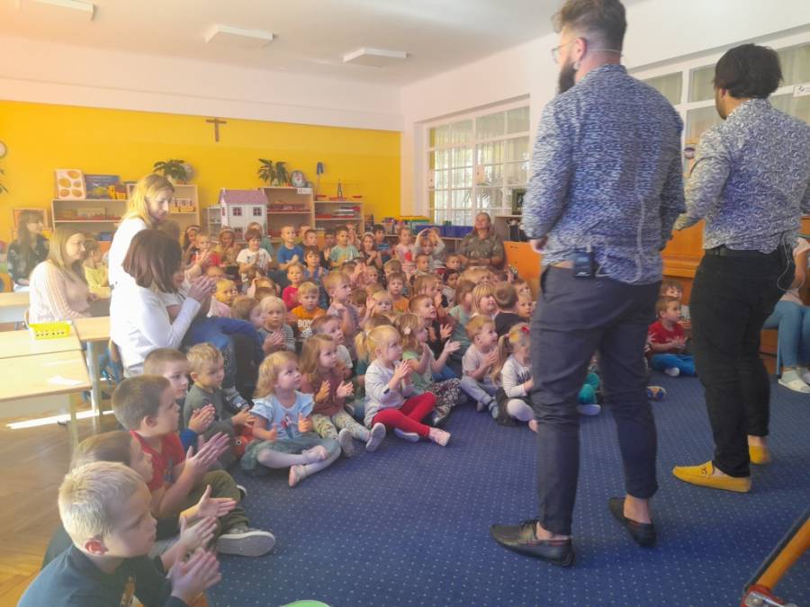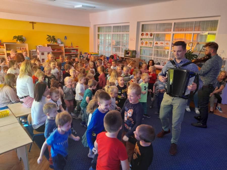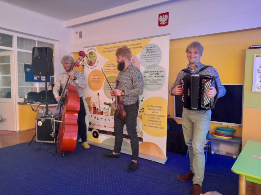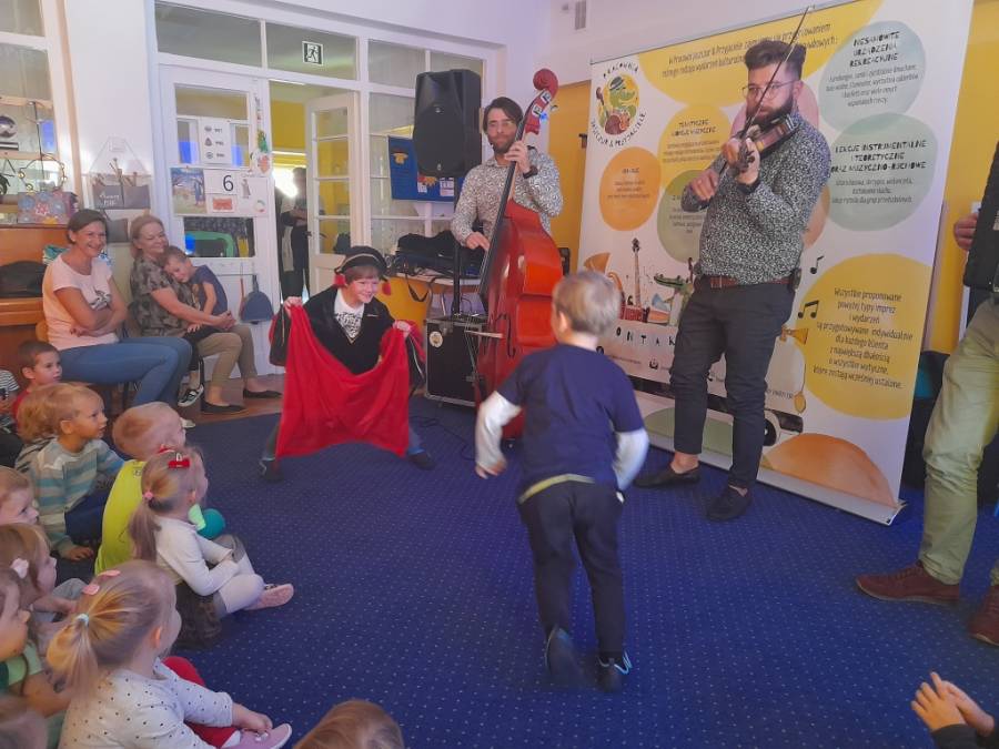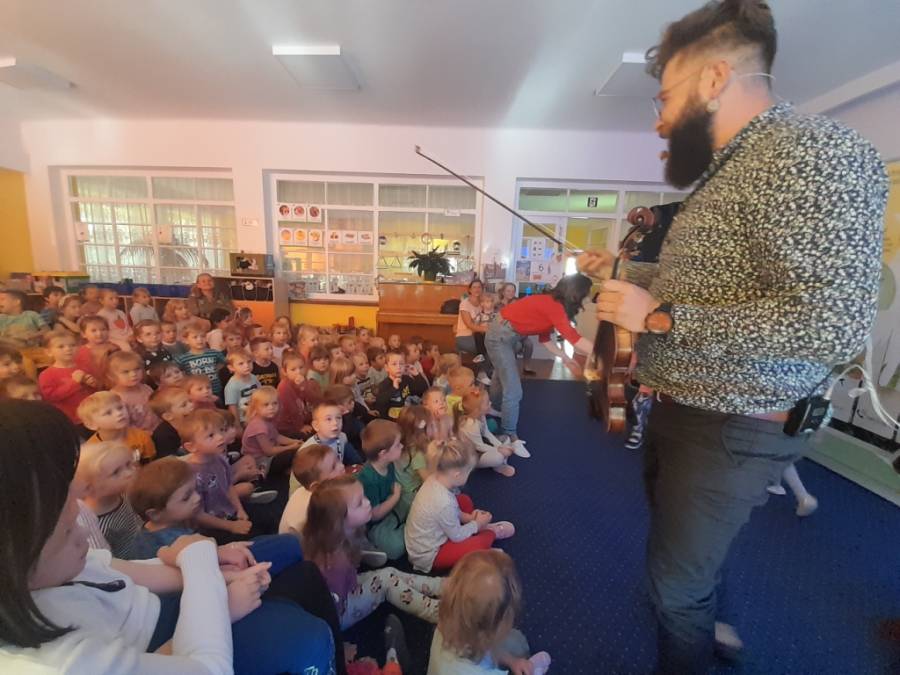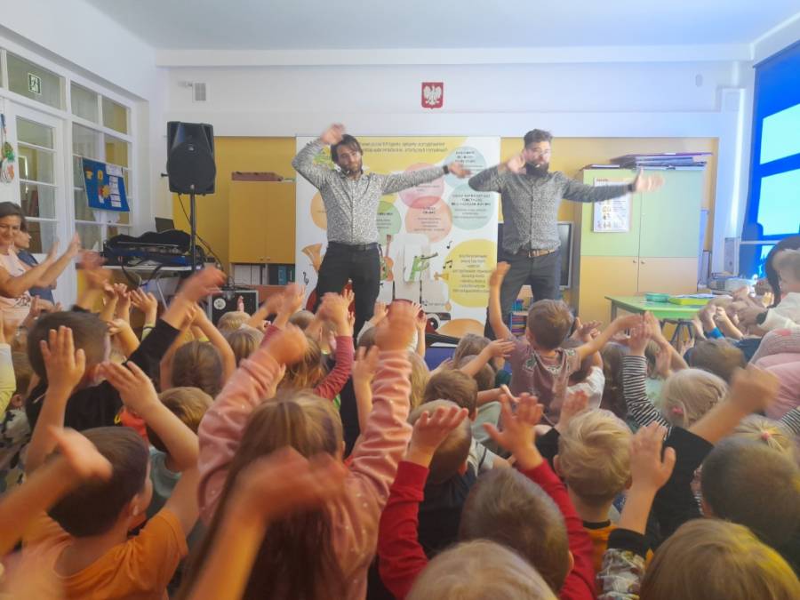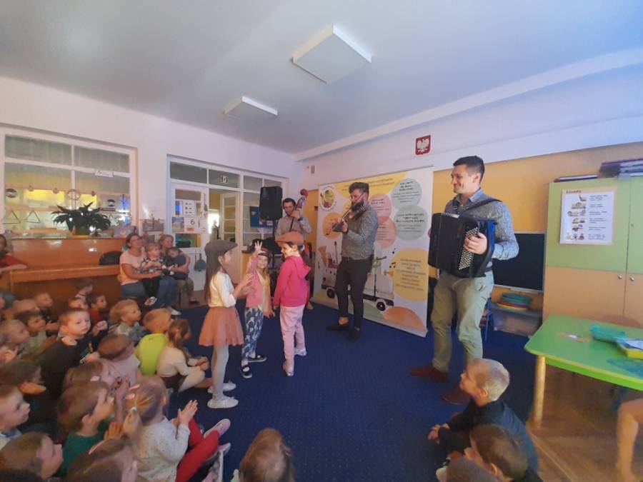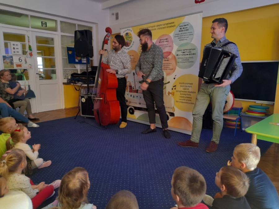 Podróż muzyczna samolotem i statkiem to temat dzisiejszego koncertu. Panowie z zespołu przenieśli nas do Meksyku, Hiszpanii, Francji, Ameryki, Ukrainy. Dzieci poznały zwyczaje panujące w tych krajach oraz  muzykę charakterystyczną dla tych miejsc. Zabawa była jak zwykle wspaniała!