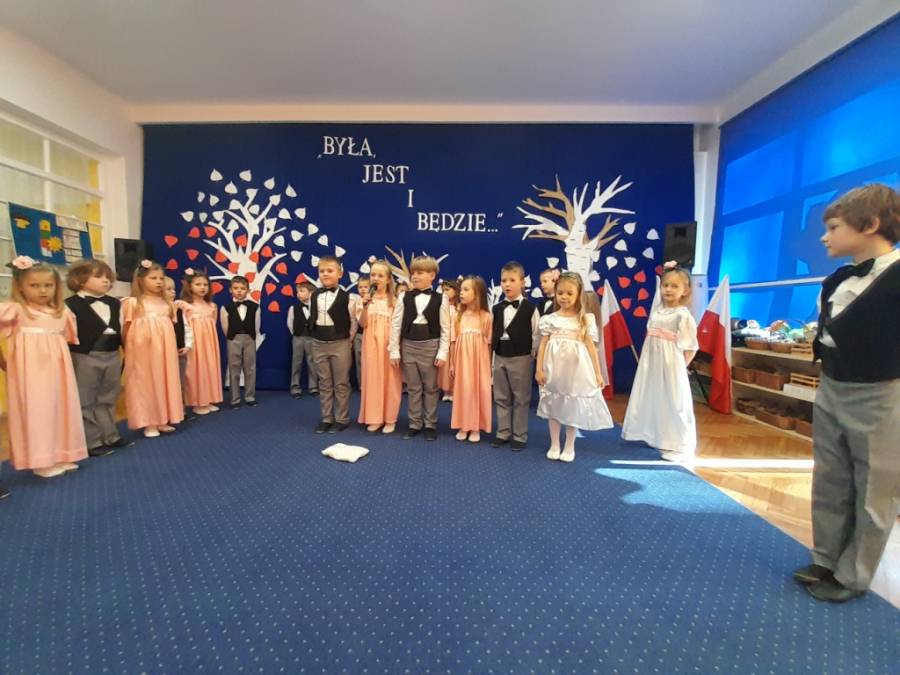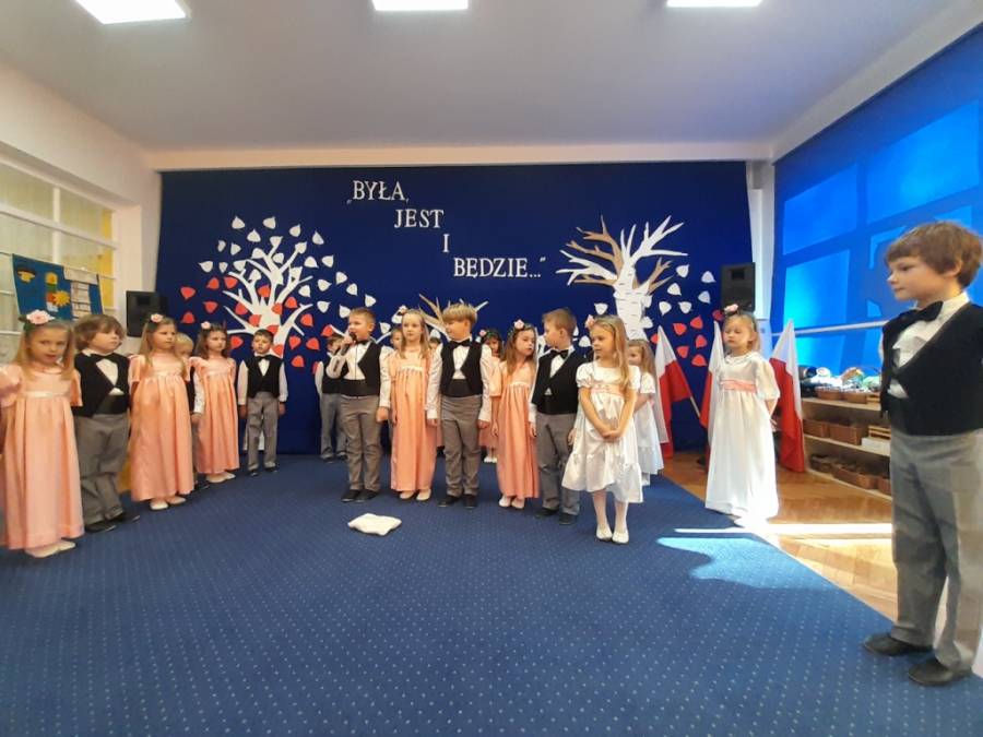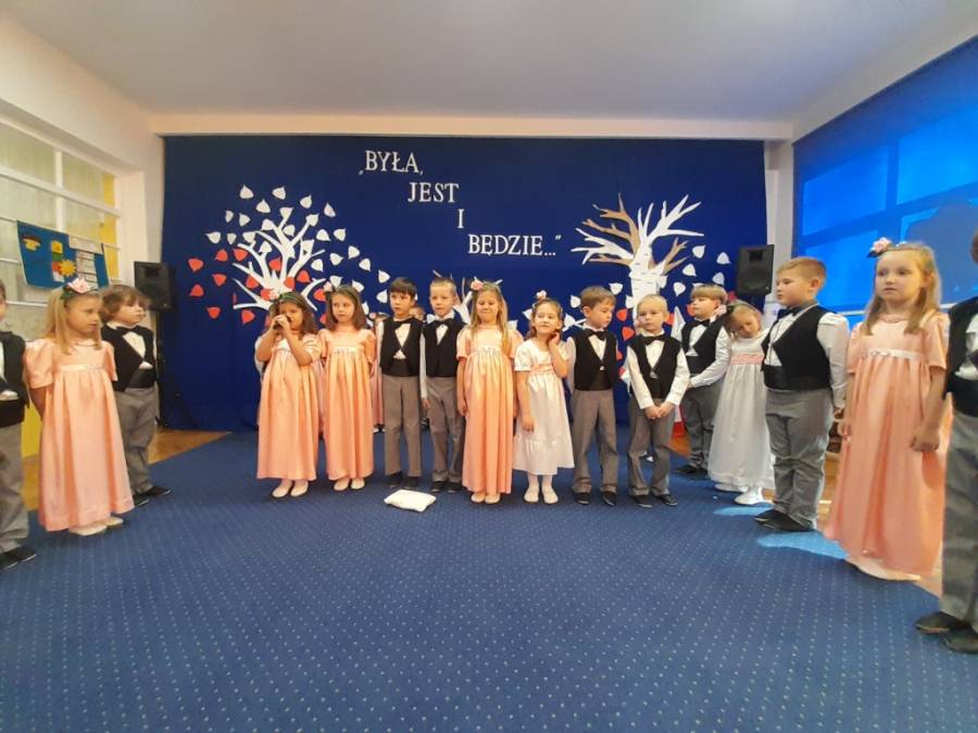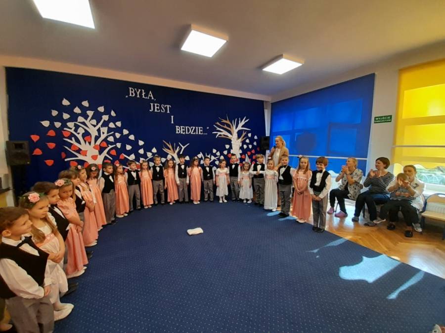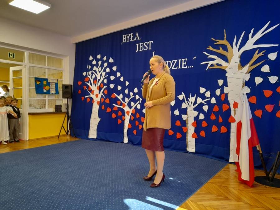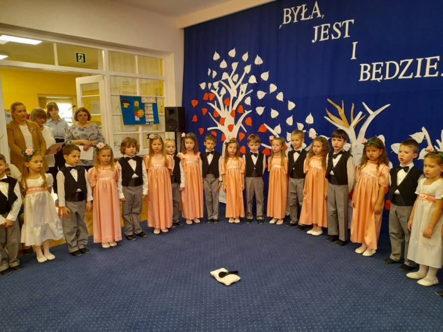 W dniu dzisiejszym w naszym przedszkolu obchodziliśmy Święto Niepodległości. Starszaki z grupy V przedstawiły dla wszystkich dzieci i pracowników oraz rodziców program słowno-muzyczny, w którym opowiedziały krótko historię Polski w okresie zaborów. Wszyscy odśpiewali Hymn Polski. To była prawdziwa lekcja wychowania patriotycznego!. Ponad to dzieci wzięły udział w akcji /Szkoła do Hymnu/. Dziękujemy Paniom za opracowanie ciekawego, a zarazem wzruszającego programu artystycznego.