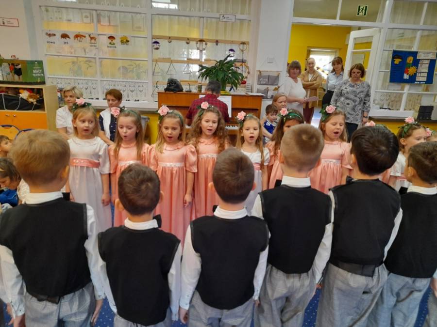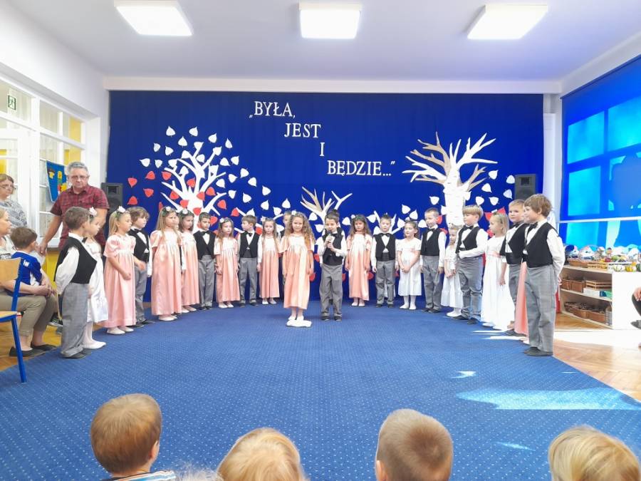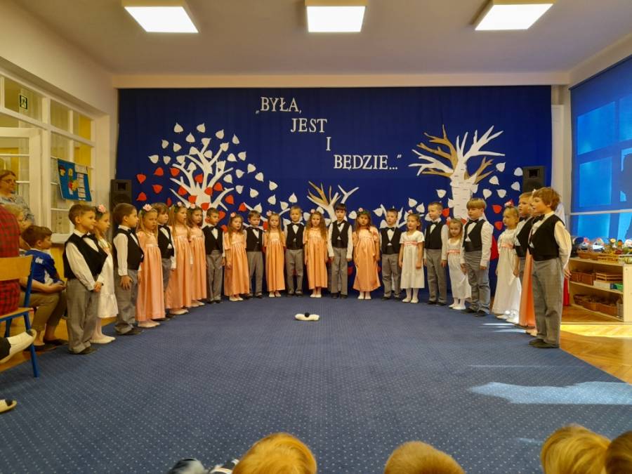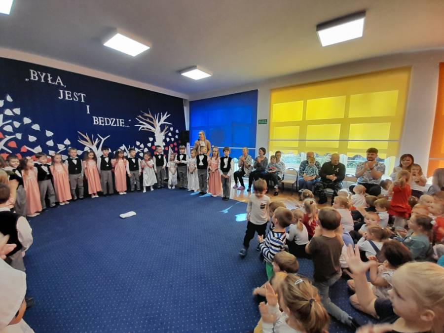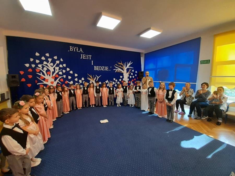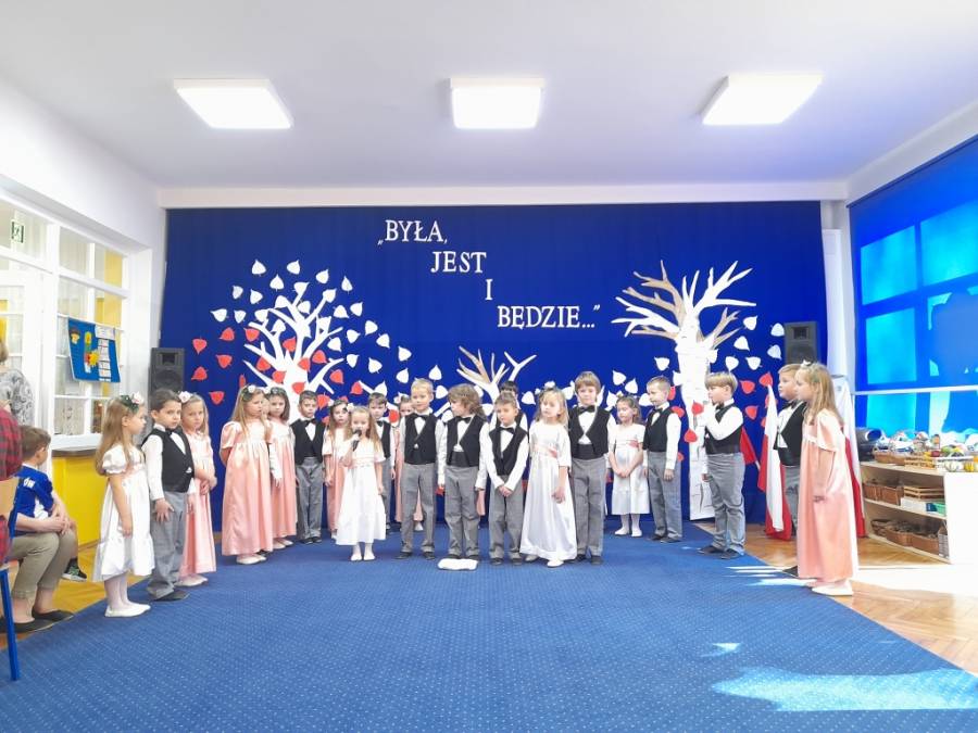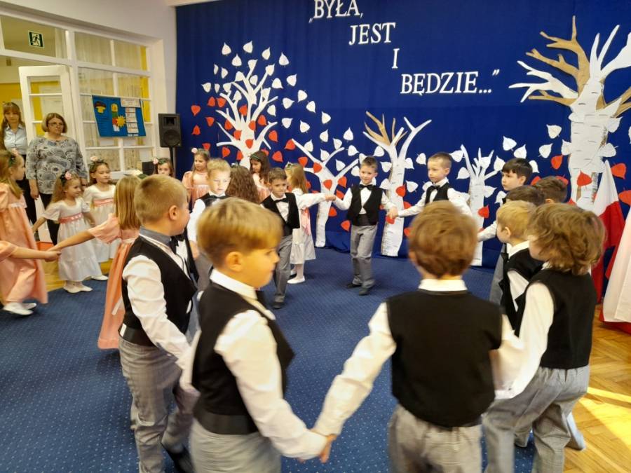 W dniu dzisiejszym w naszym przedszkolu obchodziliśmy Święto Niepodległości. Starszaki z grupy V przedstawiły dla wszystkich dzieci i pracowników oraz rodziców program słowno-muzyczny, w którym opowiedziały krótko historię Polski w okresie zaborów. Wszyscy odśpiewali Hymn Polski. To była prawdziwa lekcja wychowania patriotycznego!. Ponad to dzieci wzięły udział w akcji /Szkoła do Hymnu/. Dziękujemy Paniom za opracowanie ciekawego, a zarazem wzruszającego programu artystycznego.