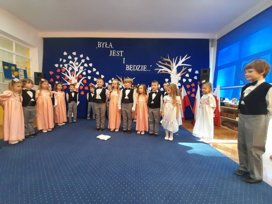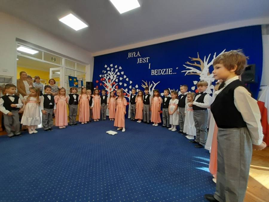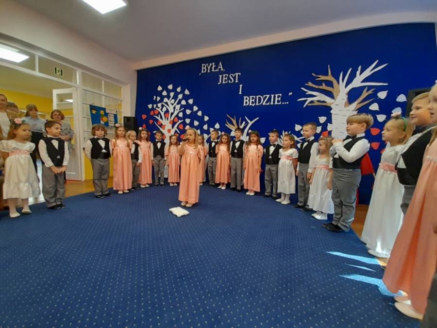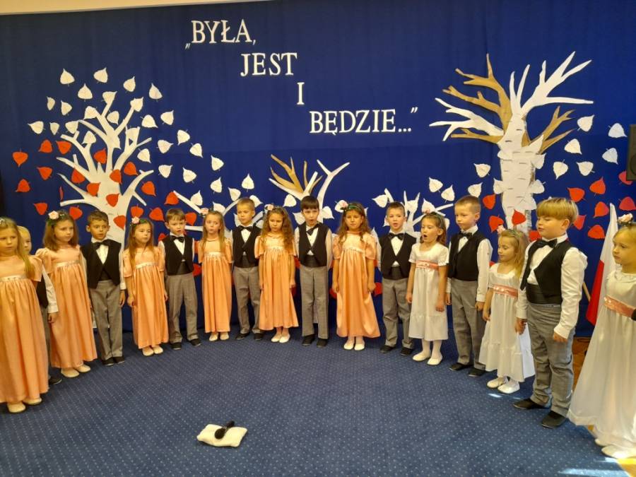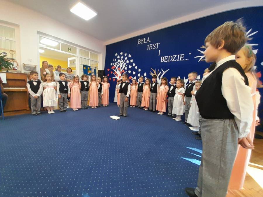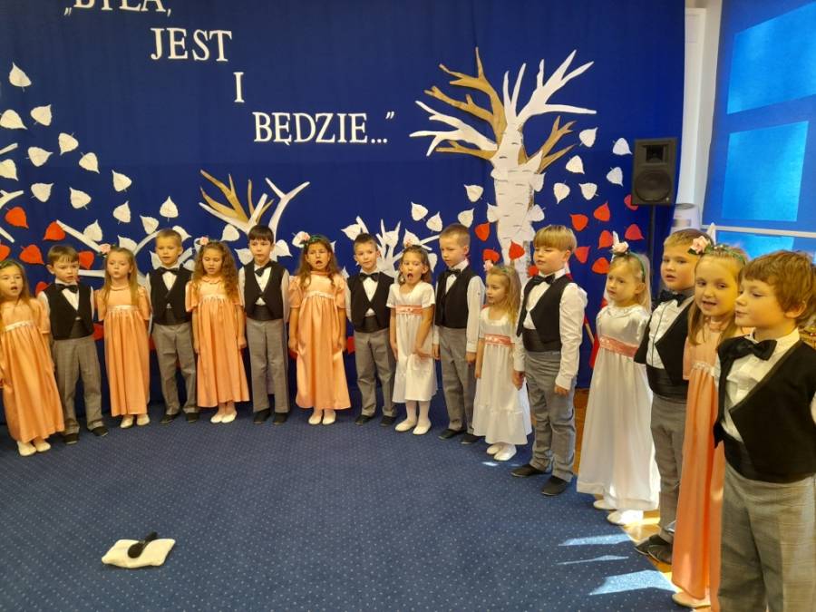 08/10.11.2022 r. Uroczystość Dnia Niepodległości, Akcja "Szkoła do Hymnu"- gr. V