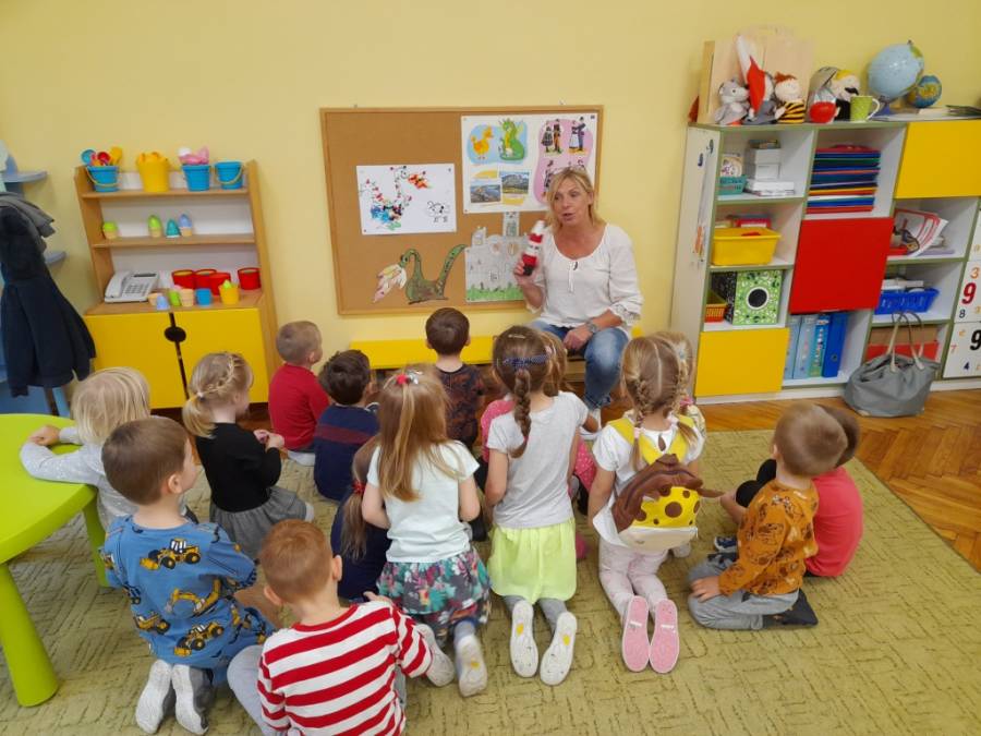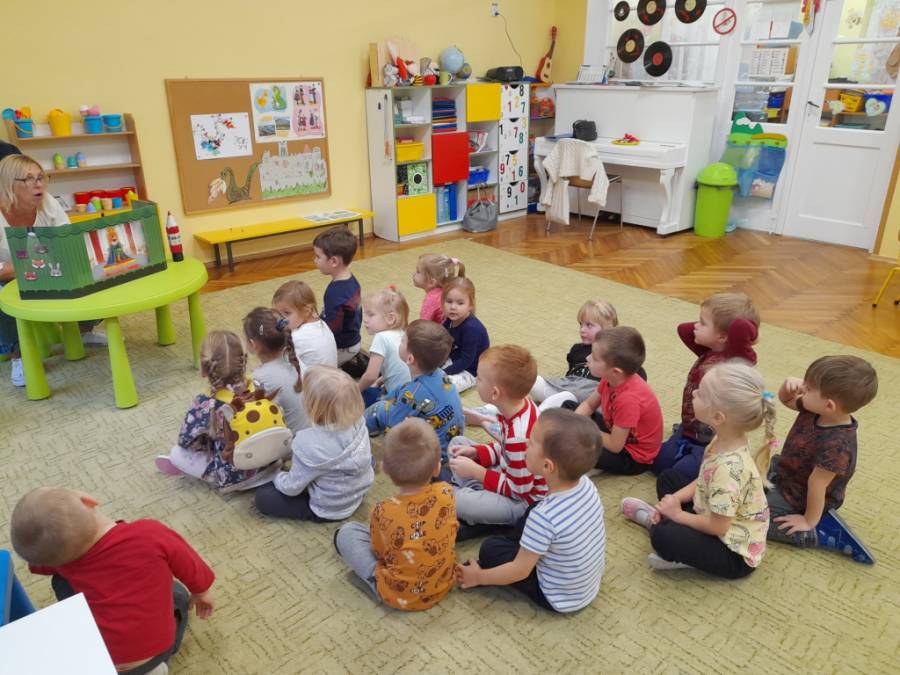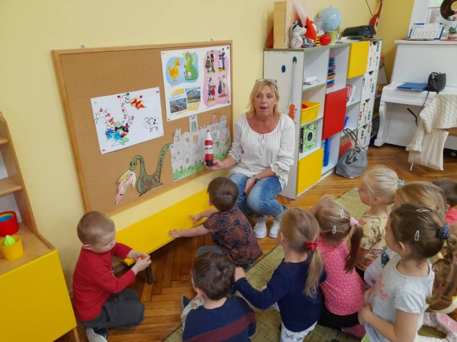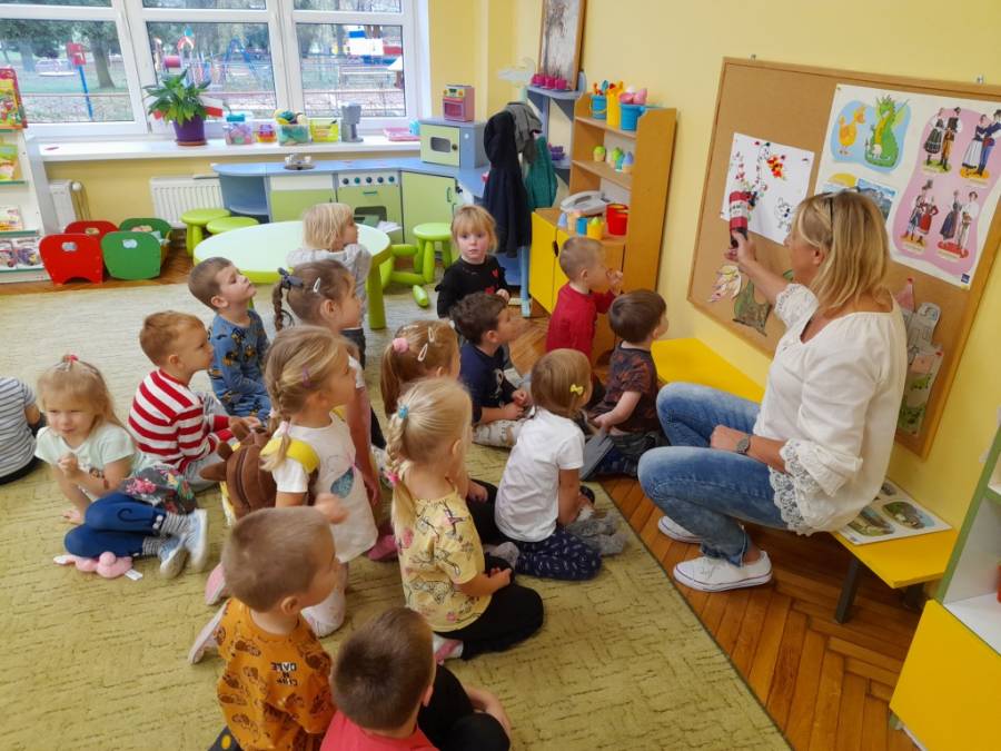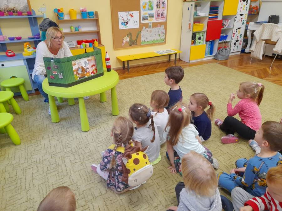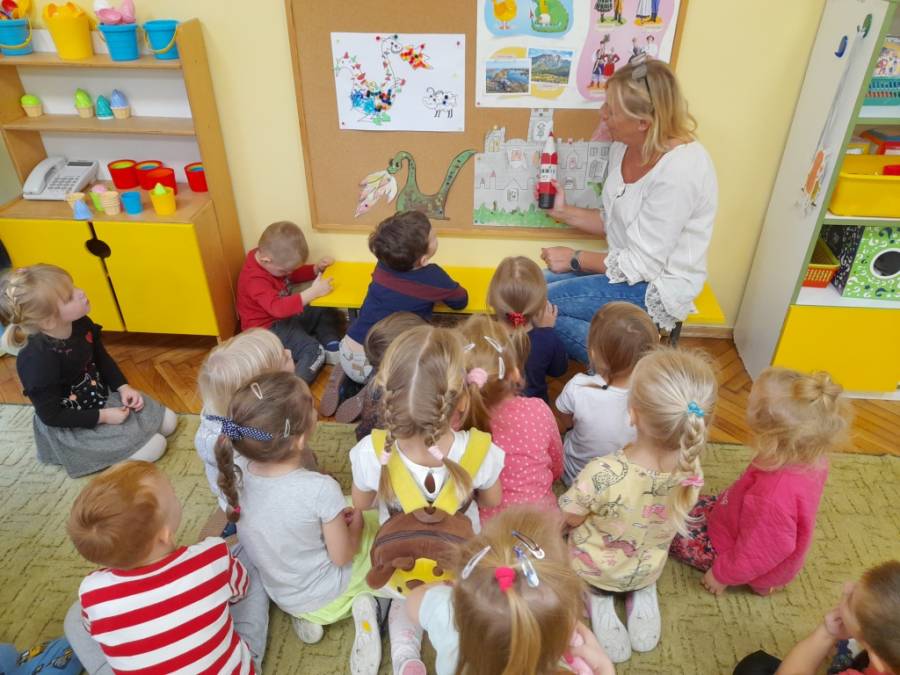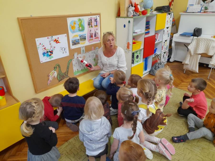 Dzieci poznały legendę o Smoku Wawelskim, którą przedstawiono w formie mini teatrzyku. Z uwagą słuchały i odpowiadały na pytania dotyczące treści opowiadania. Przy okazji poznały pierwsze kroki tańca krakowiaczka. Powstały ciekawe prace plastyczne zatytułowane /Moja książka/, które zamieszczone są w galerii /Twórczy listopad 2022 r/.