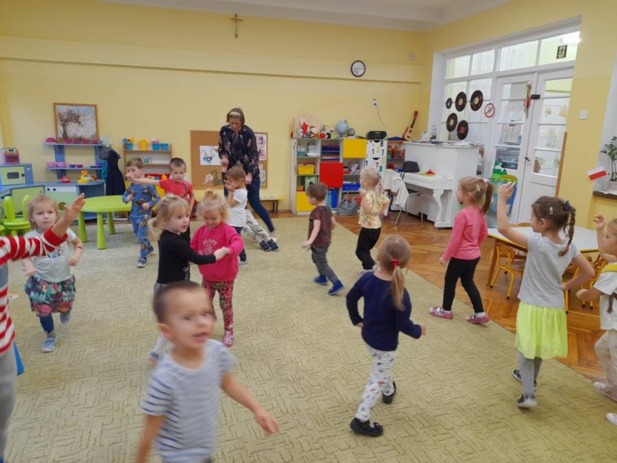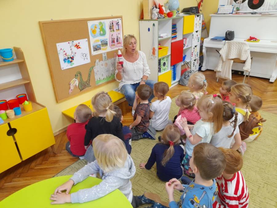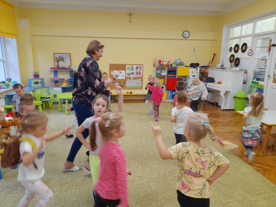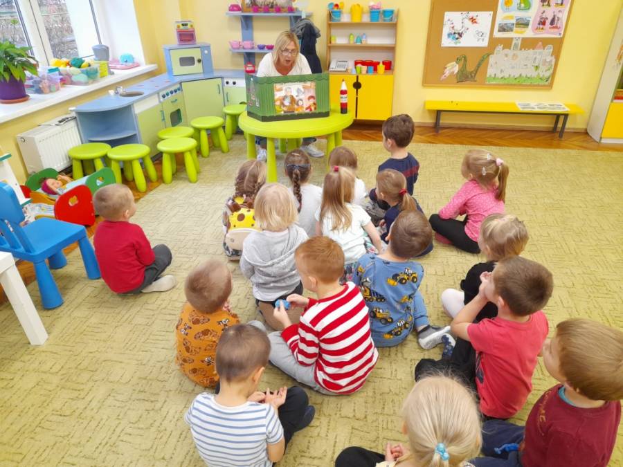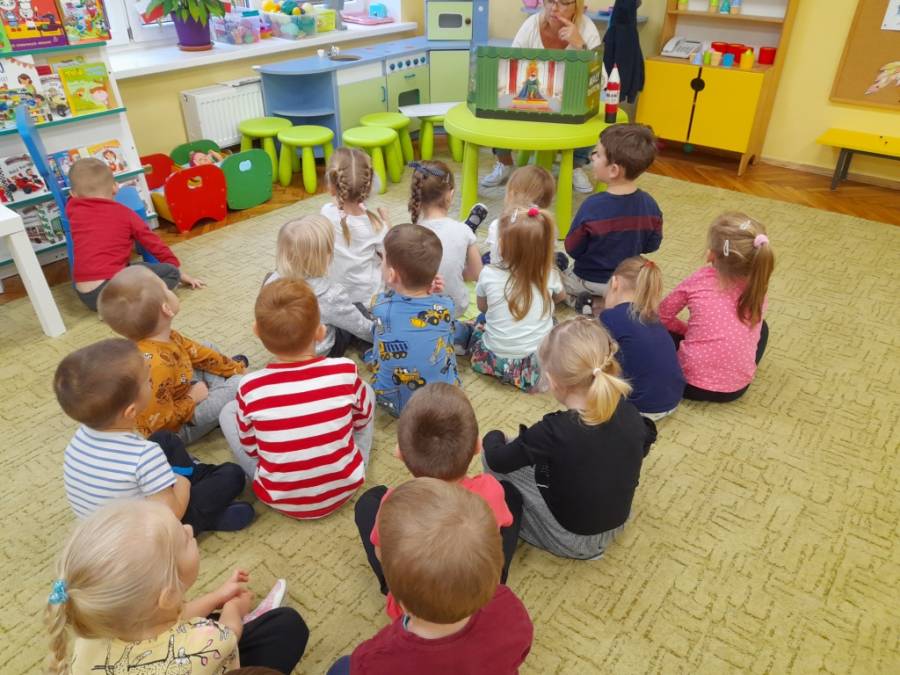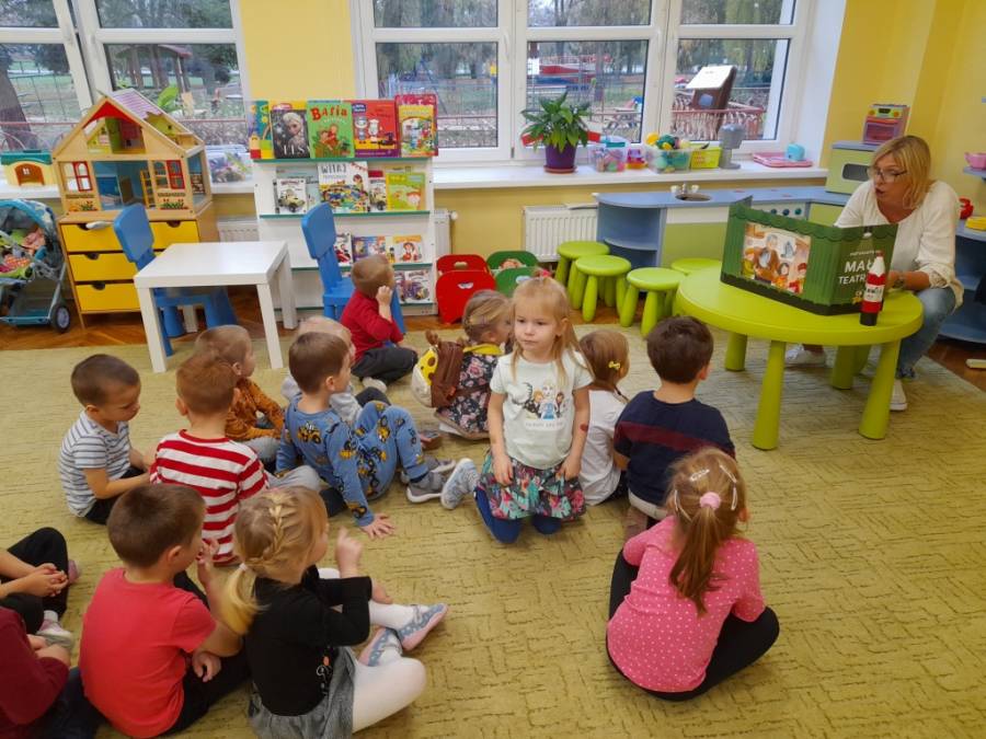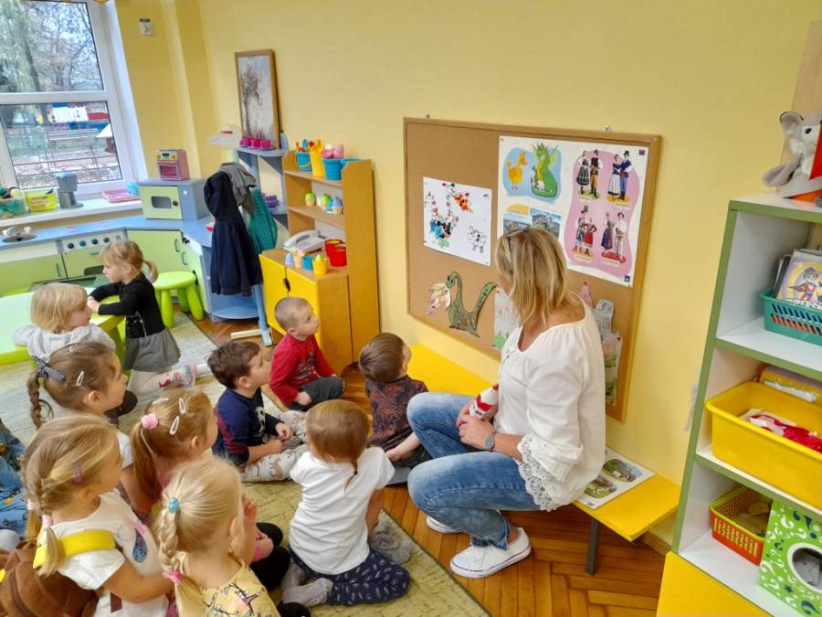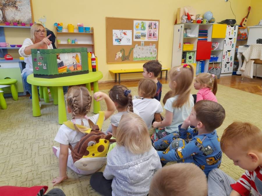 Dzieci poznały legendę o Smoku Wawelskim, którą przedstawiono w formie mini teatrzyku. Z uwagą słuchały i odpowiadały na pytania dotyczące treści opowiadania. Przy okazji poznały pierwsze kroki tańca krakowiaczka. Powstały ciekawe prace plastyczne zatytułowane /Moja książka/, które zamieszczone są w galerii /Twórczy listopad 2022 r/.