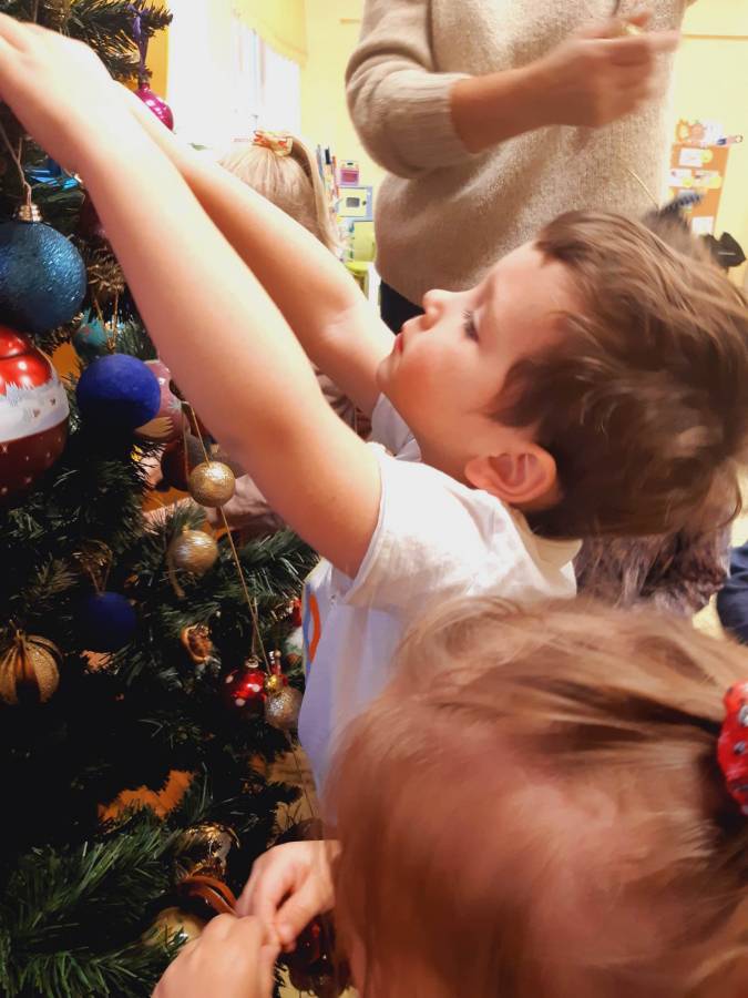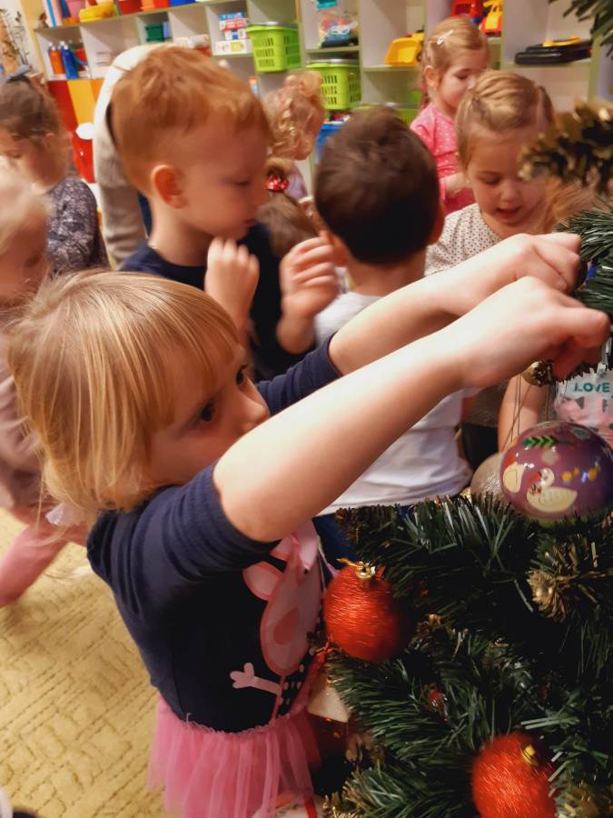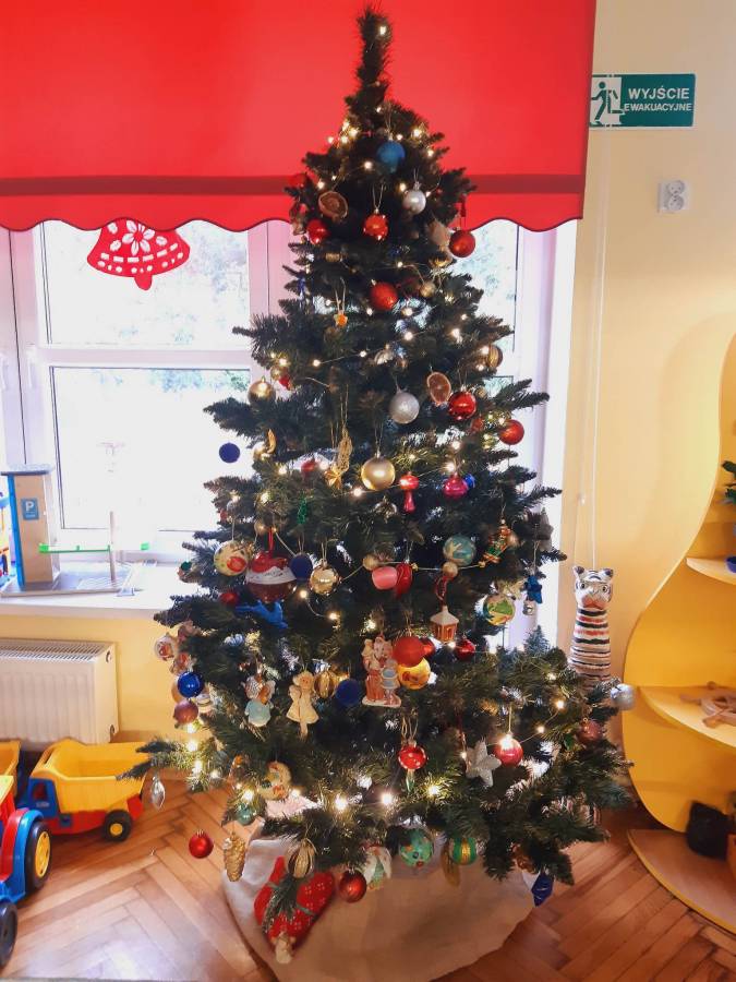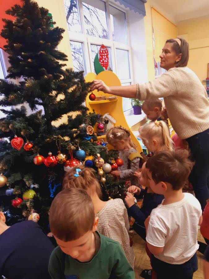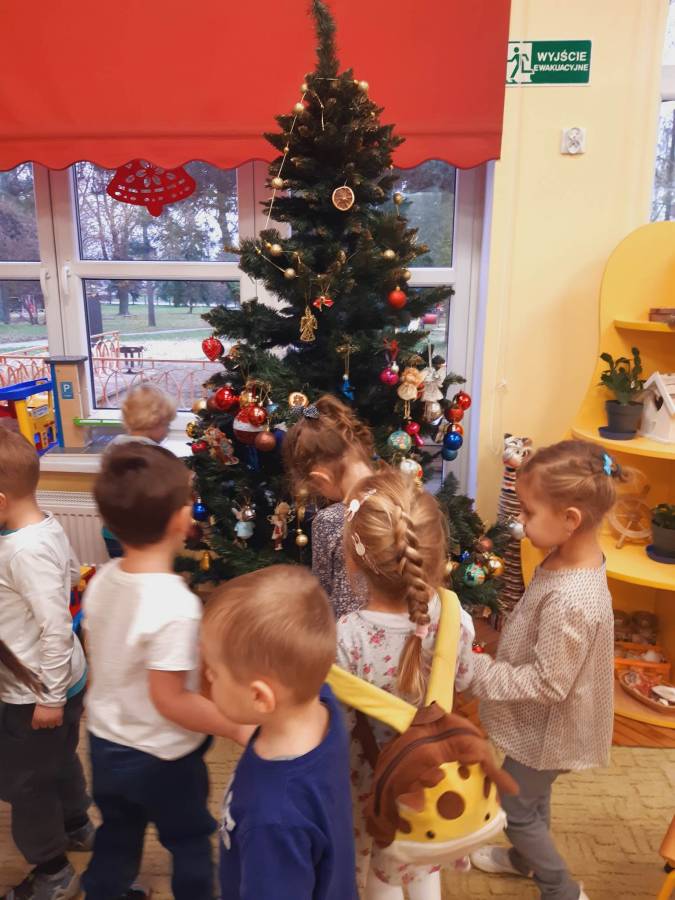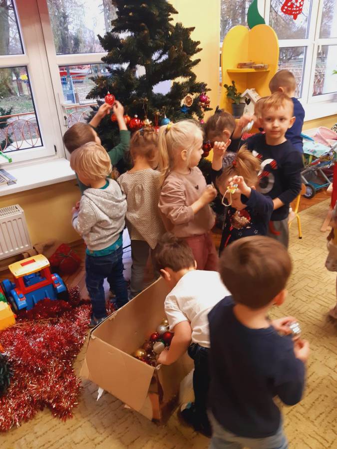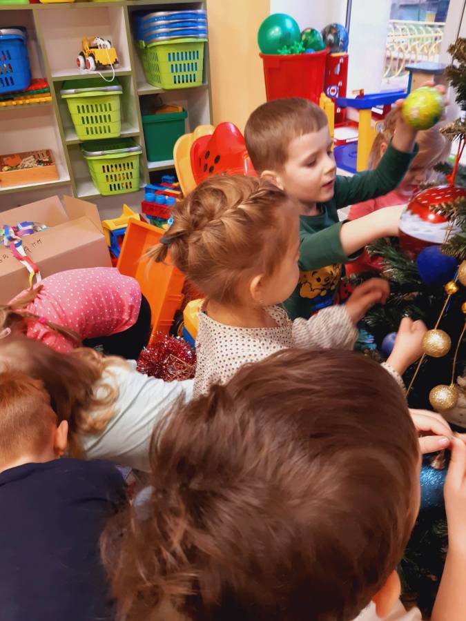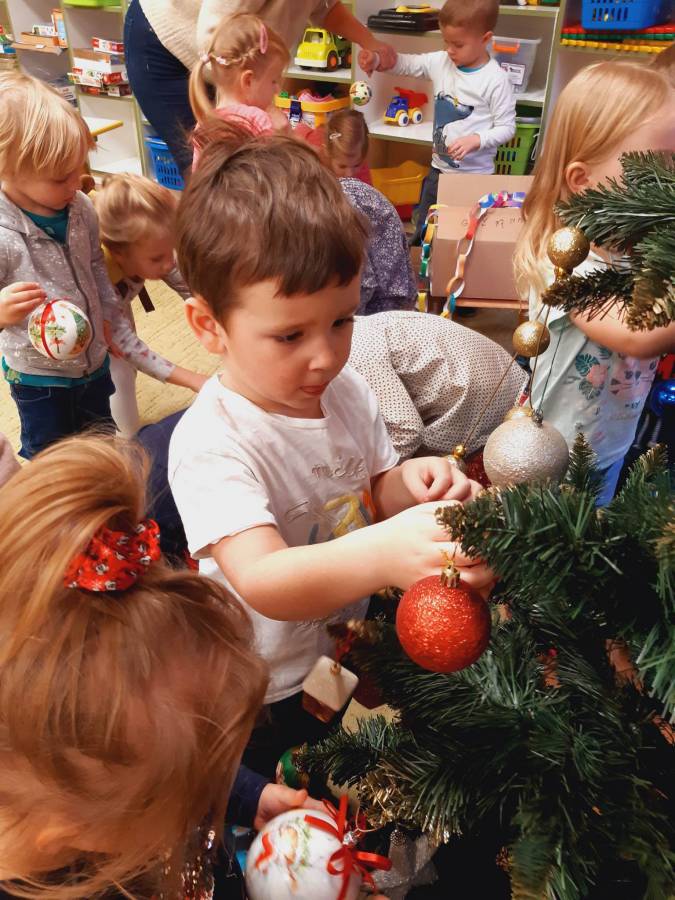 Pracowite Misie ubierały dziś choinkę, podarowaną grupie przez Rodziców Zuzi. Dziękujemy za piękne drzewko.