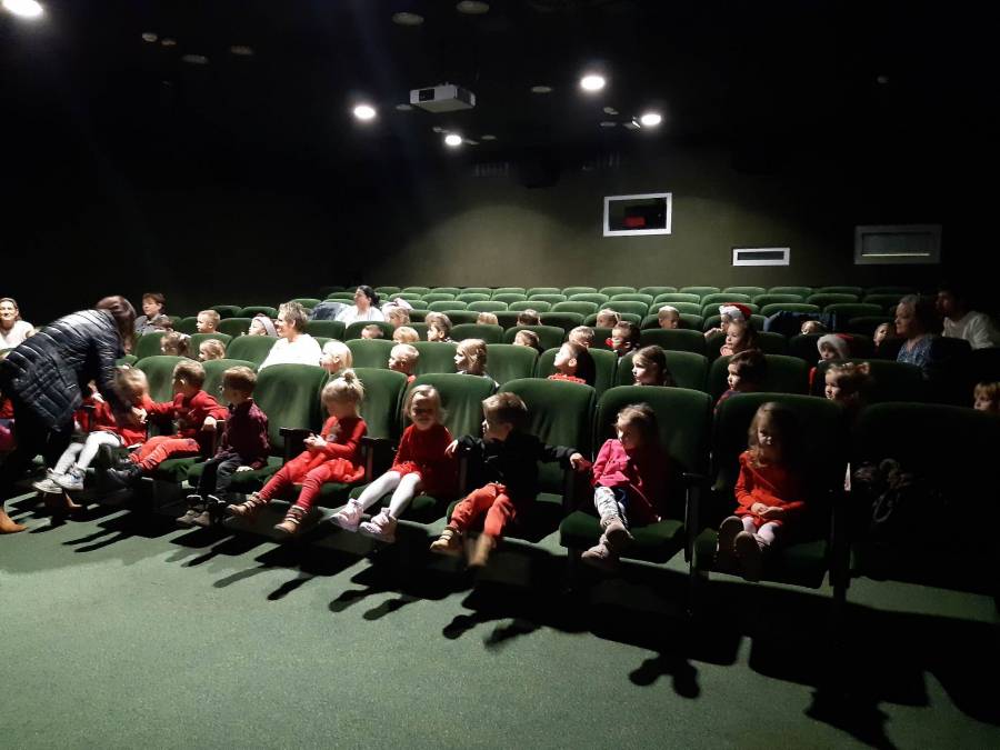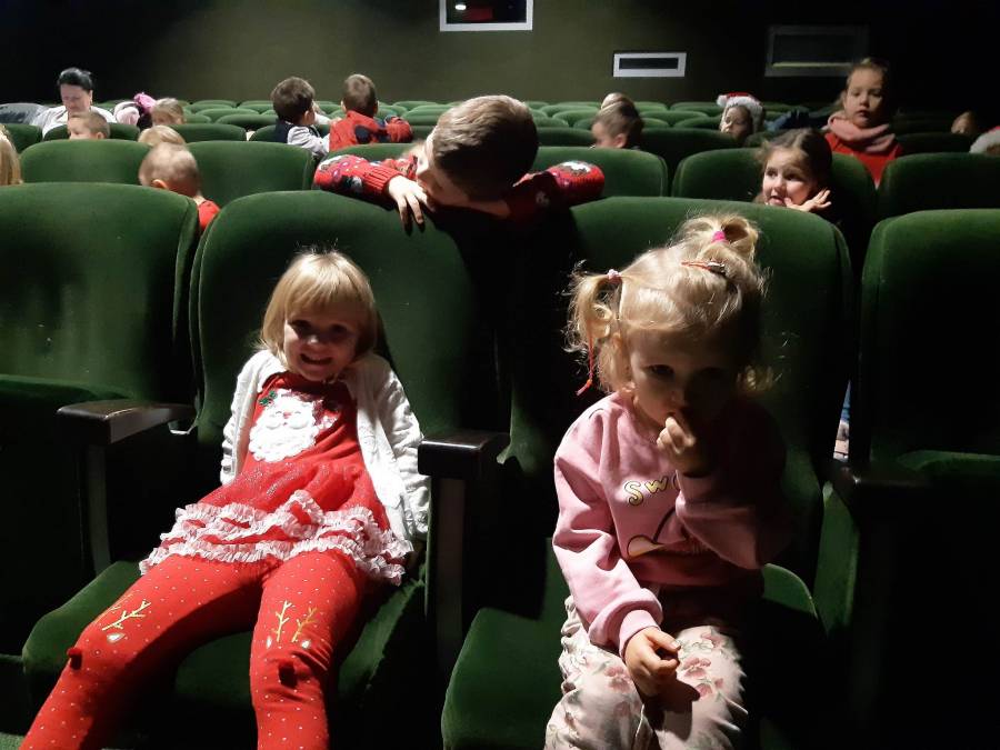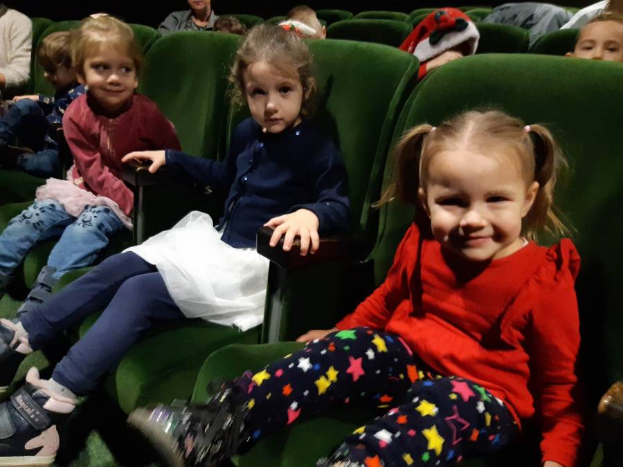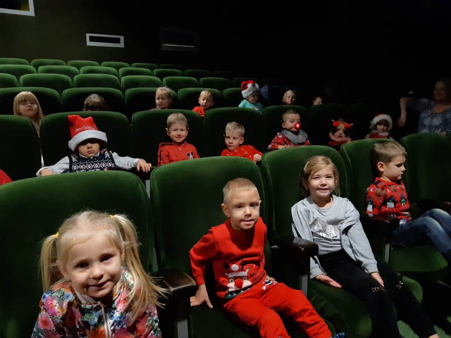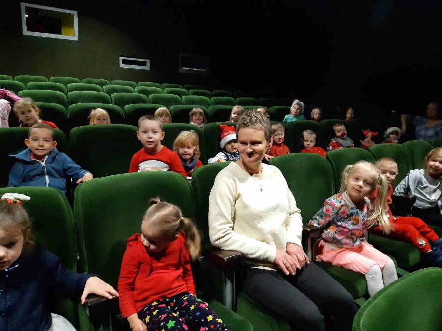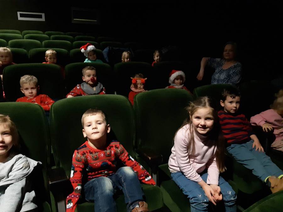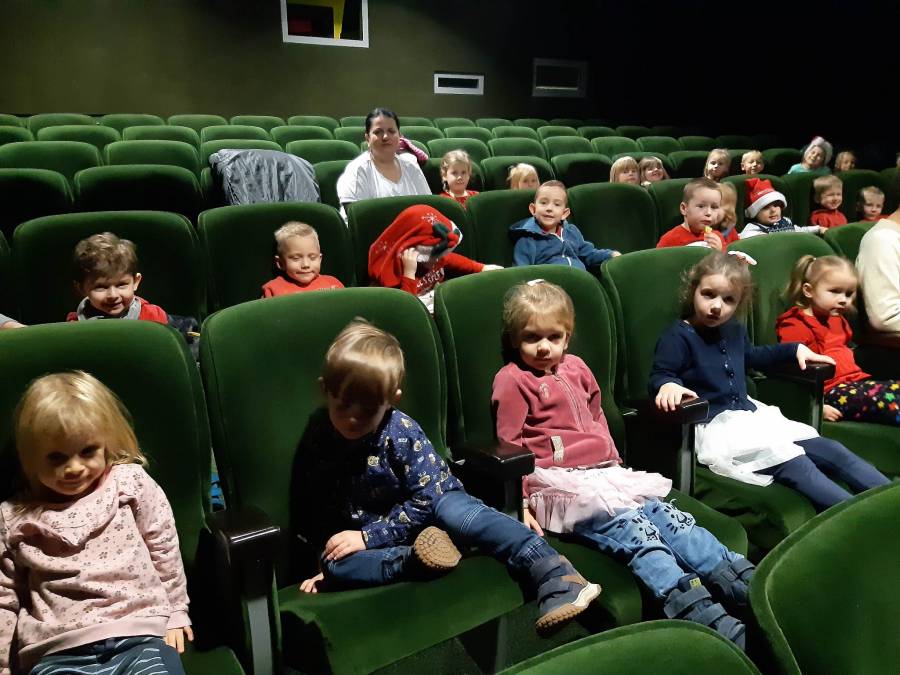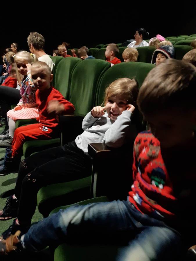 Nasze Przedszkolaki długo czekały na ten dzień. Dla wielu z nich było to pierwsze w życiu wyjście do kina! Projekcja filmu spotkała się z dużym entuzjazmem dzieci, a przygody małej krówki  Klary wszystkim przypadły do gustu. W ciągu dnia czekało na nas mnóstwo niespodzianek! W czasie pobytu w kinie odwiedził nas Mikołaj, więc Przedszkolaki miały okazję zaśpiewać tak długo przygotowywaną piosenkę. Po powrocie do przedszkola znaleźliśmy prezenty pozostawione przez Świętego Mikołaja. Wszystkim dopisywały dobre humory.
