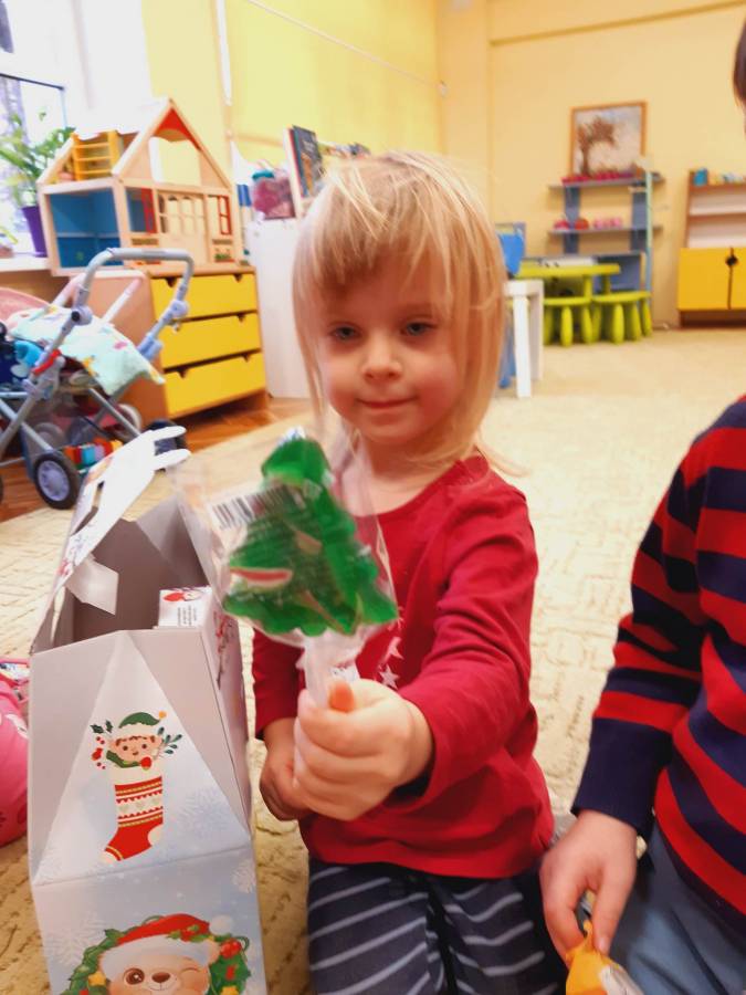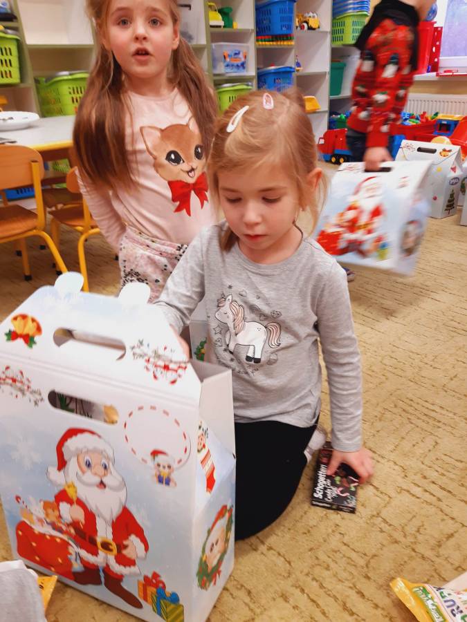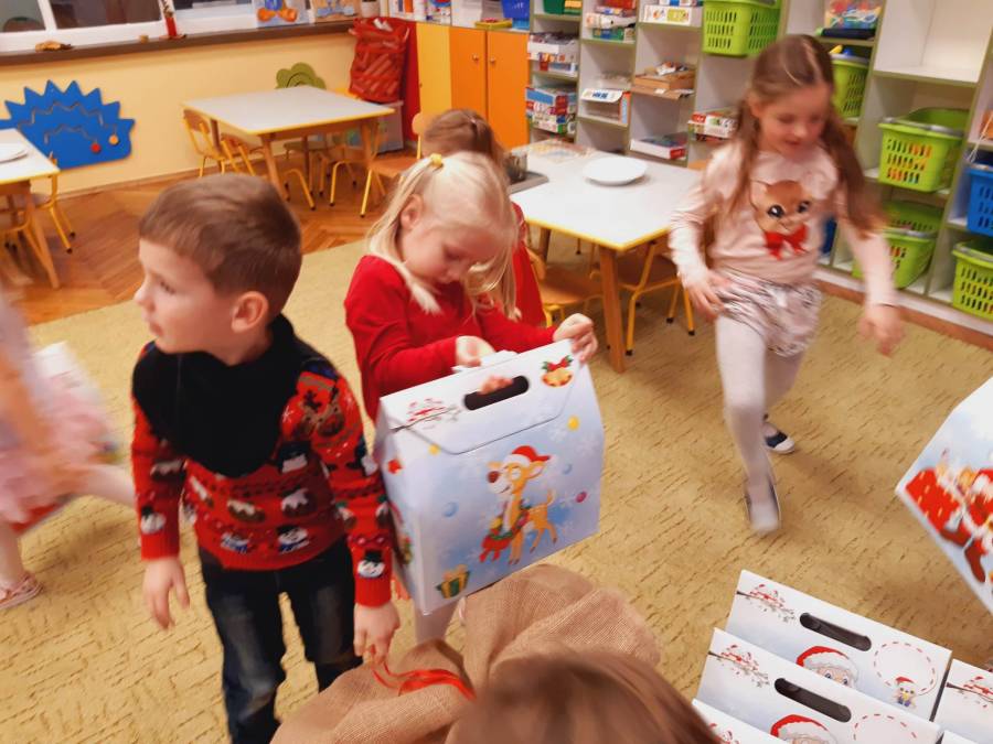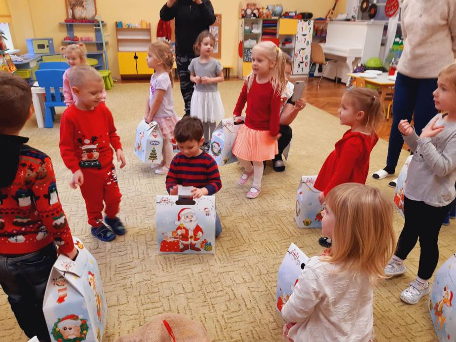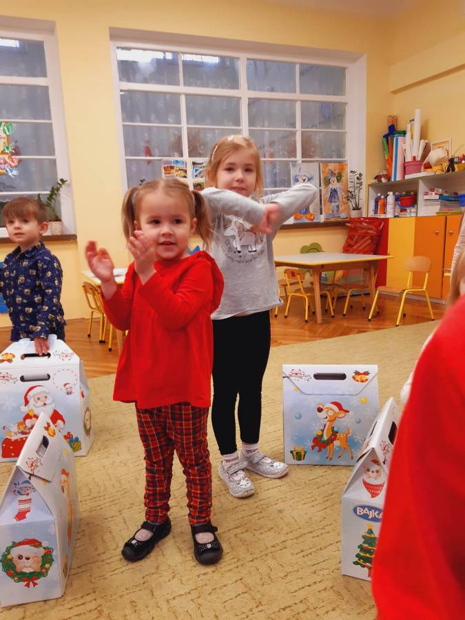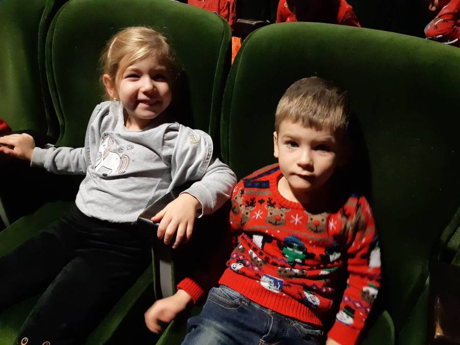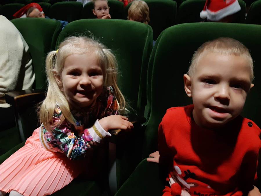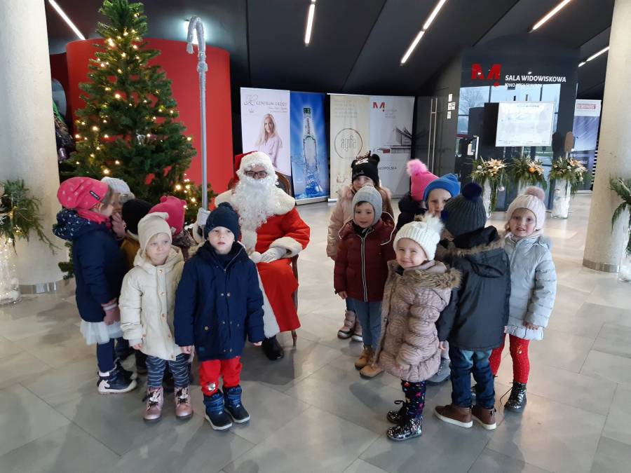 Nasze Przedszkolaki długo czekały na ten dzień. Dla wielu z nich było to pierwsze w życiu wyjście do kina! Projekcja filmu spotkała się z dużym entuzjazmem dzieci, a przygody małej krówki  Klary wszystkim przypadły do gustu. W ciągu dnia czekało na nas mnóstwo niespodzianek! W czasie pobytu w kinie odwiedził nas Mikołaj, więc Przedszkolaki miały okazję zaśpiewać tak długo przygotowywaną piosenkę. Po powrocie do przedszkola znaleźliśmy prezenty pozostawione przez Świętego Mikołaja. Wszystkim dopisywały dobre humory.