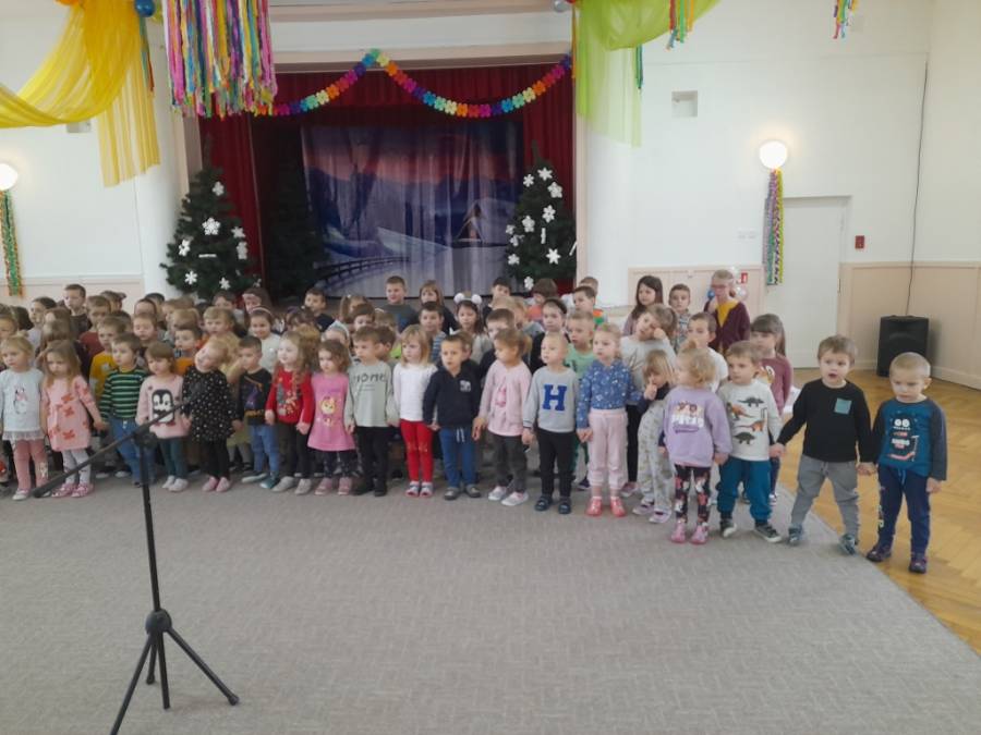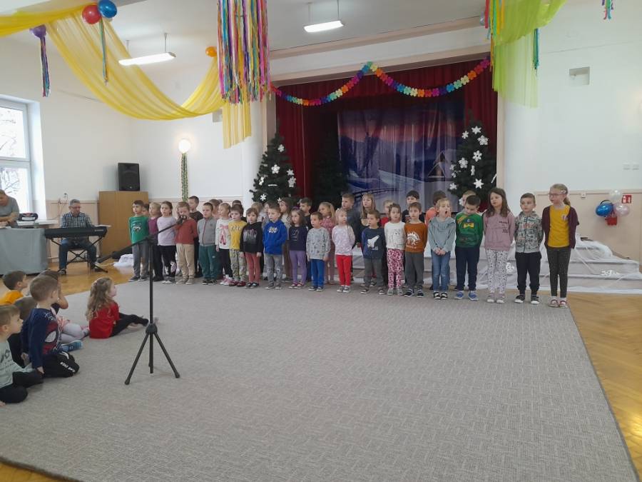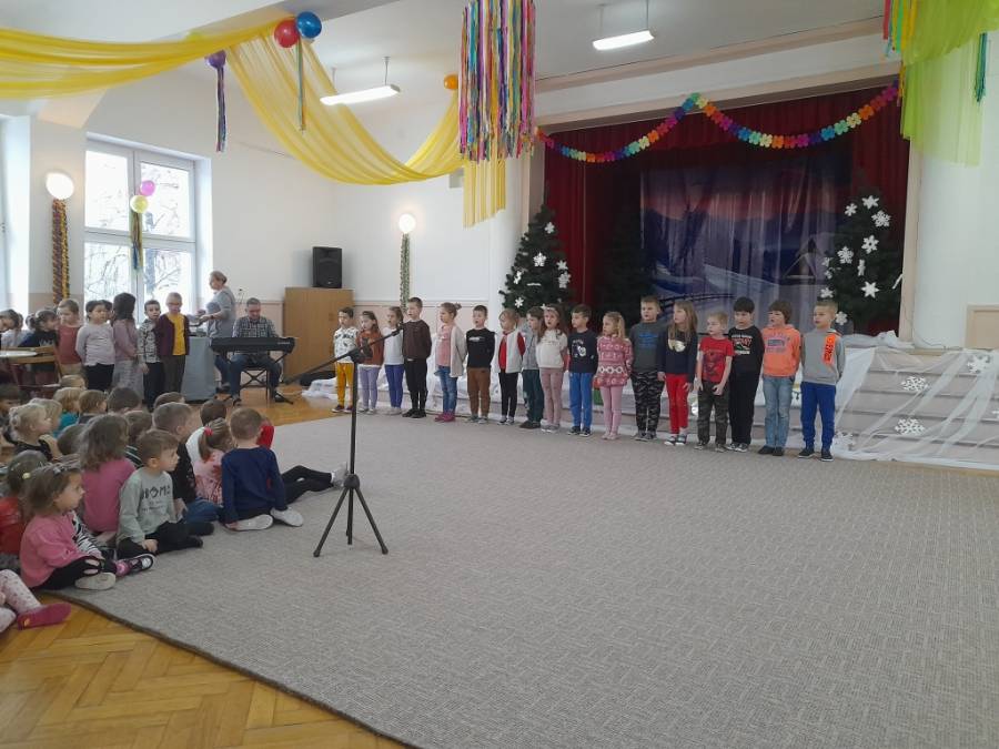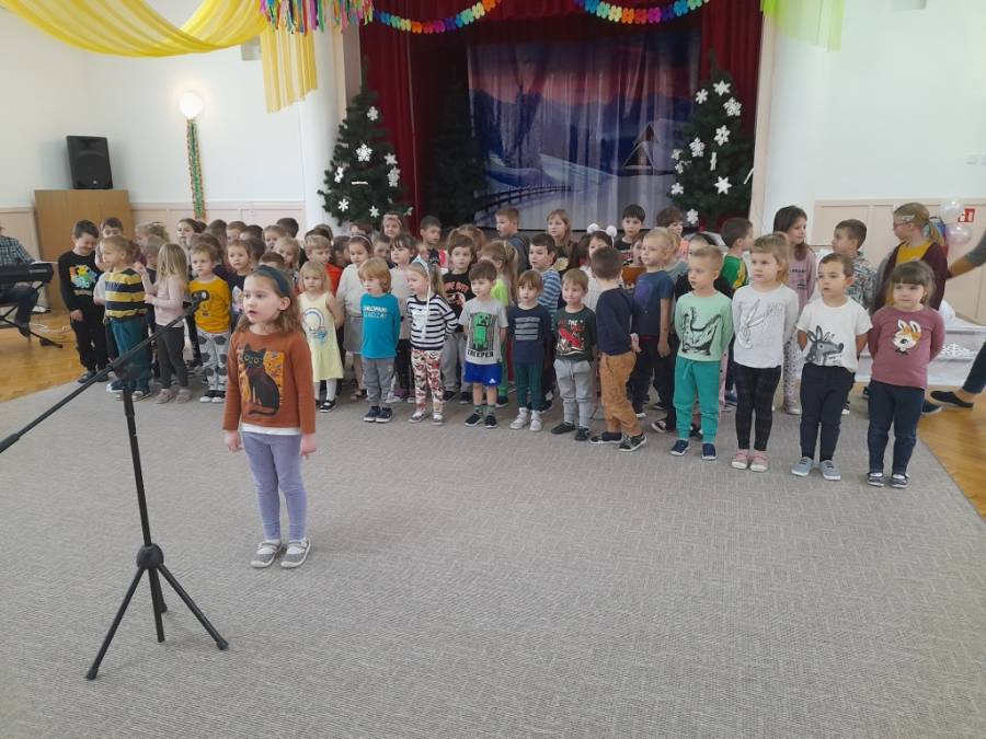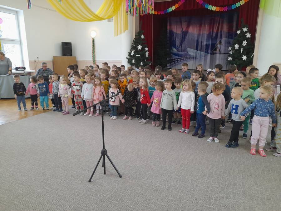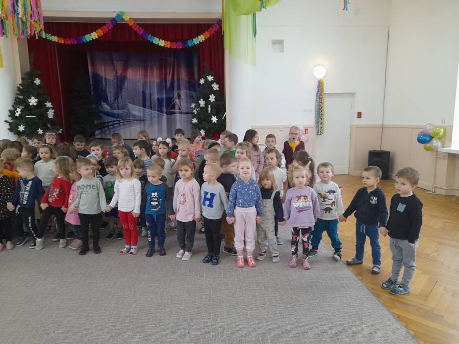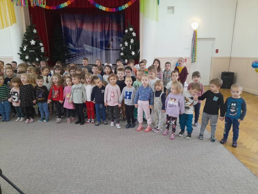 19.01.2023 r. Próba przed występem w sali teatralnej przedszkola