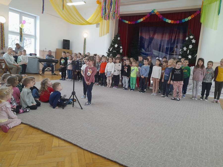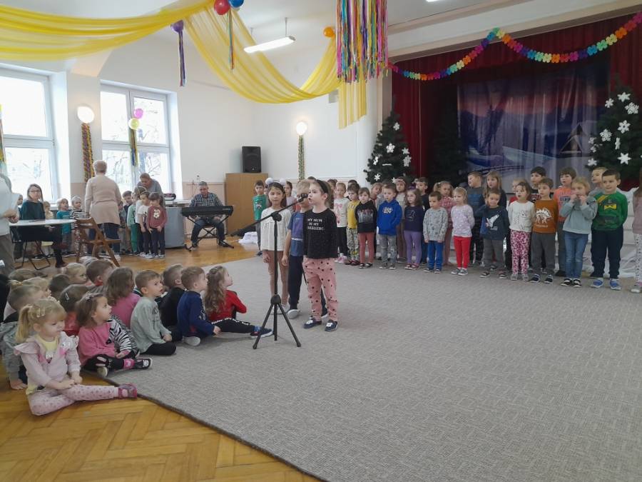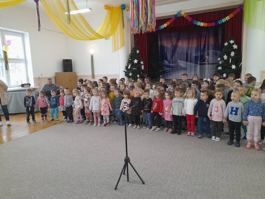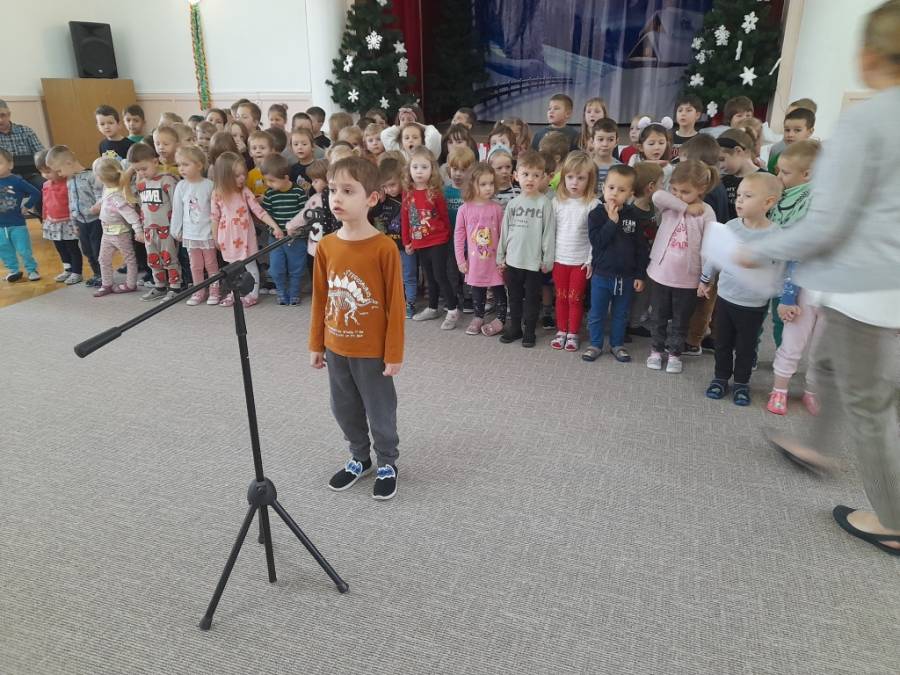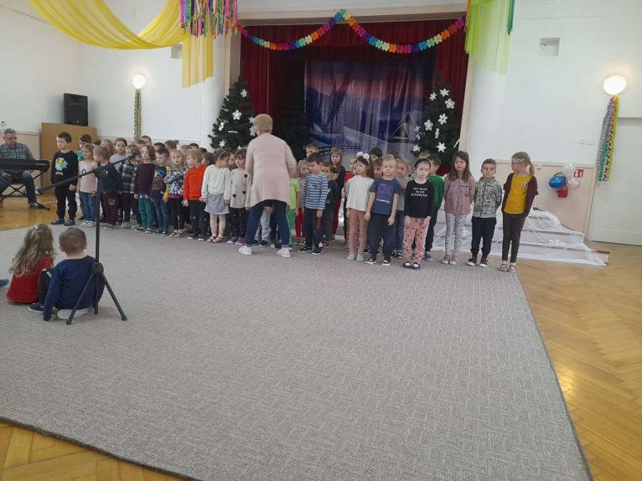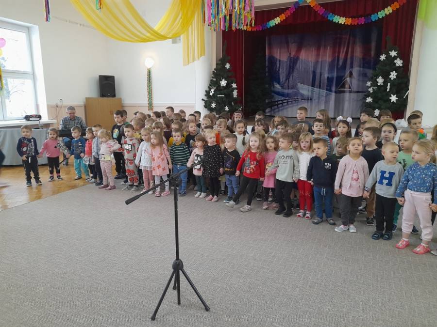 19.01.2023 r. Próba przed występem w sali teatralnej przedszkola