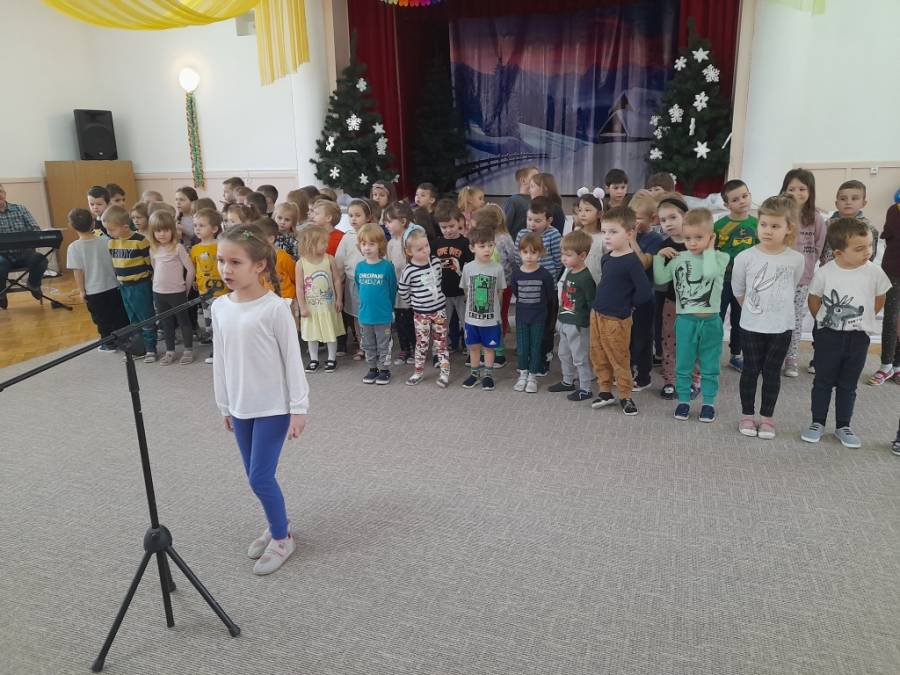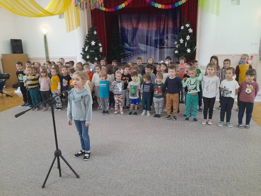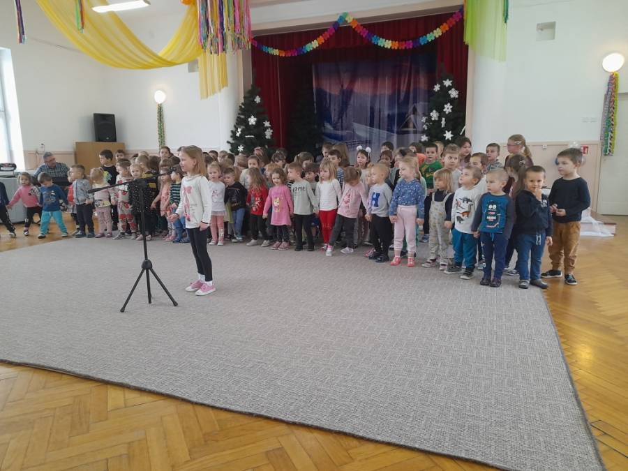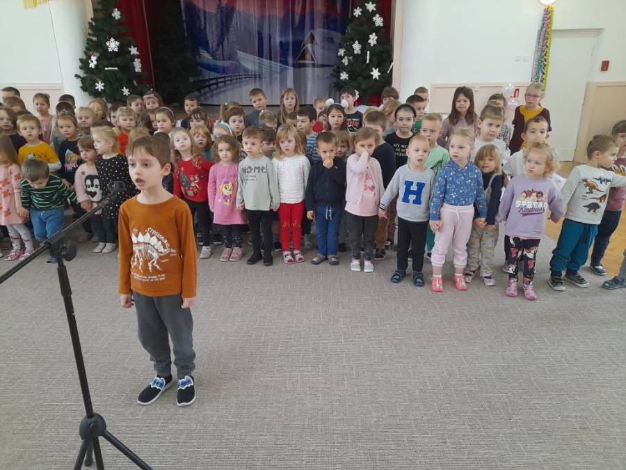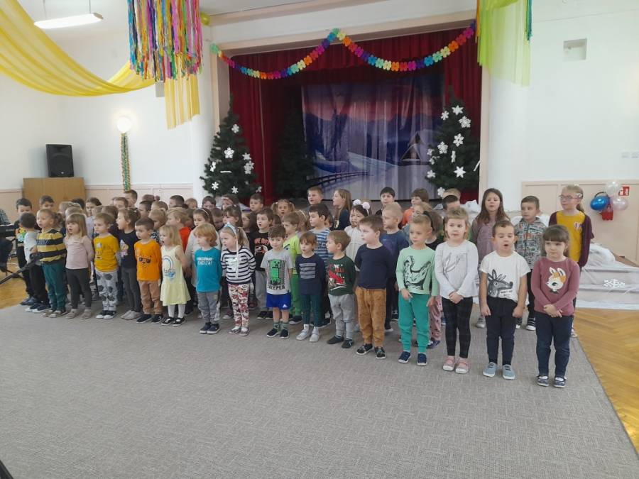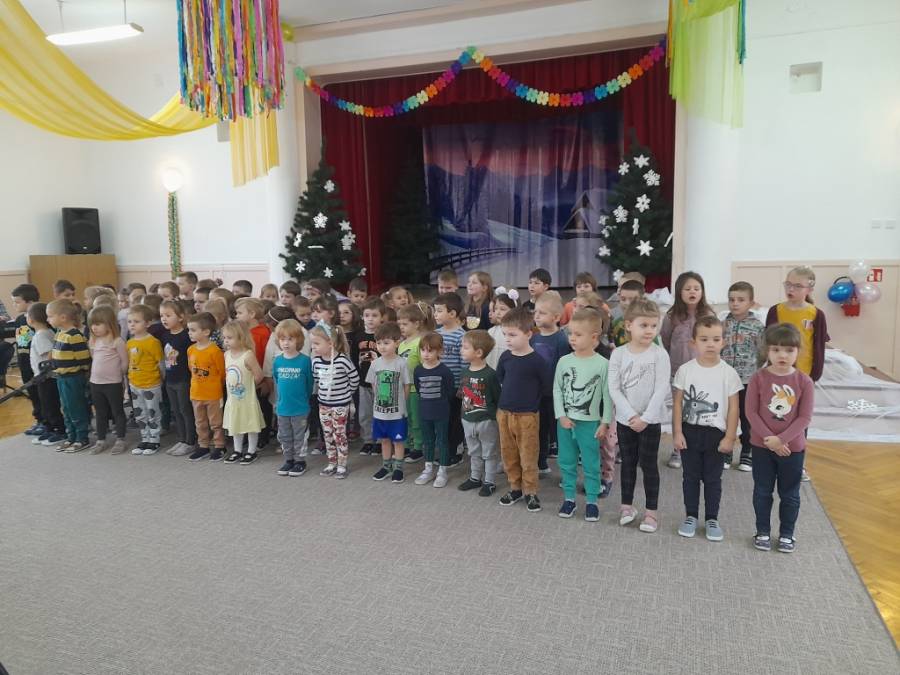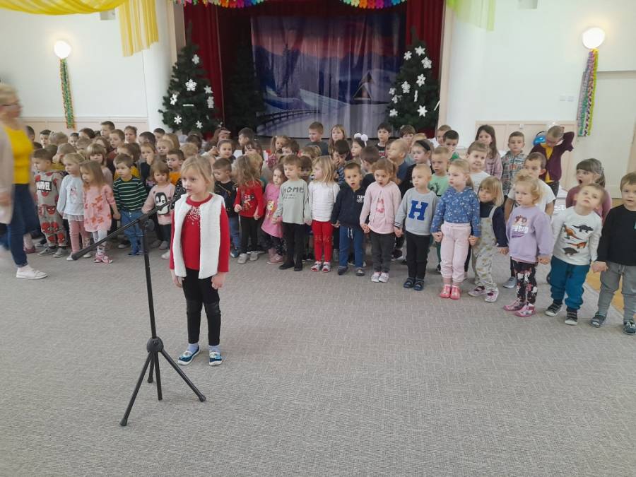 19.01.2023 r. Próba przed występem w sali teatralnej przedszkola