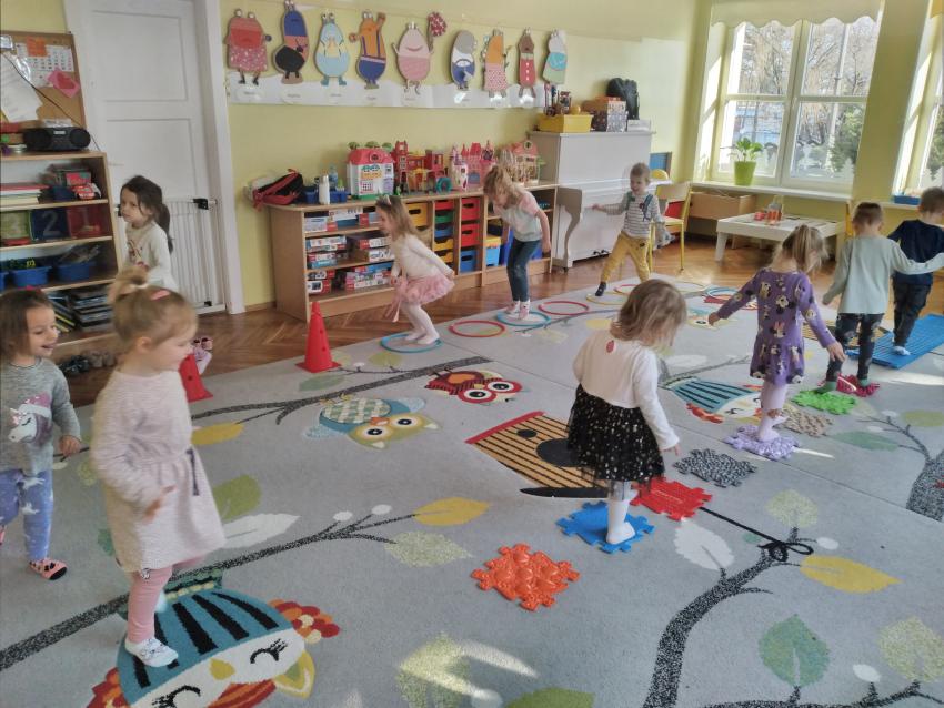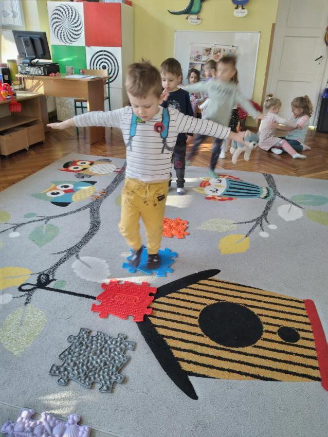 Zabawy dywanowe w grupie "Pracowite Pszczółki "
