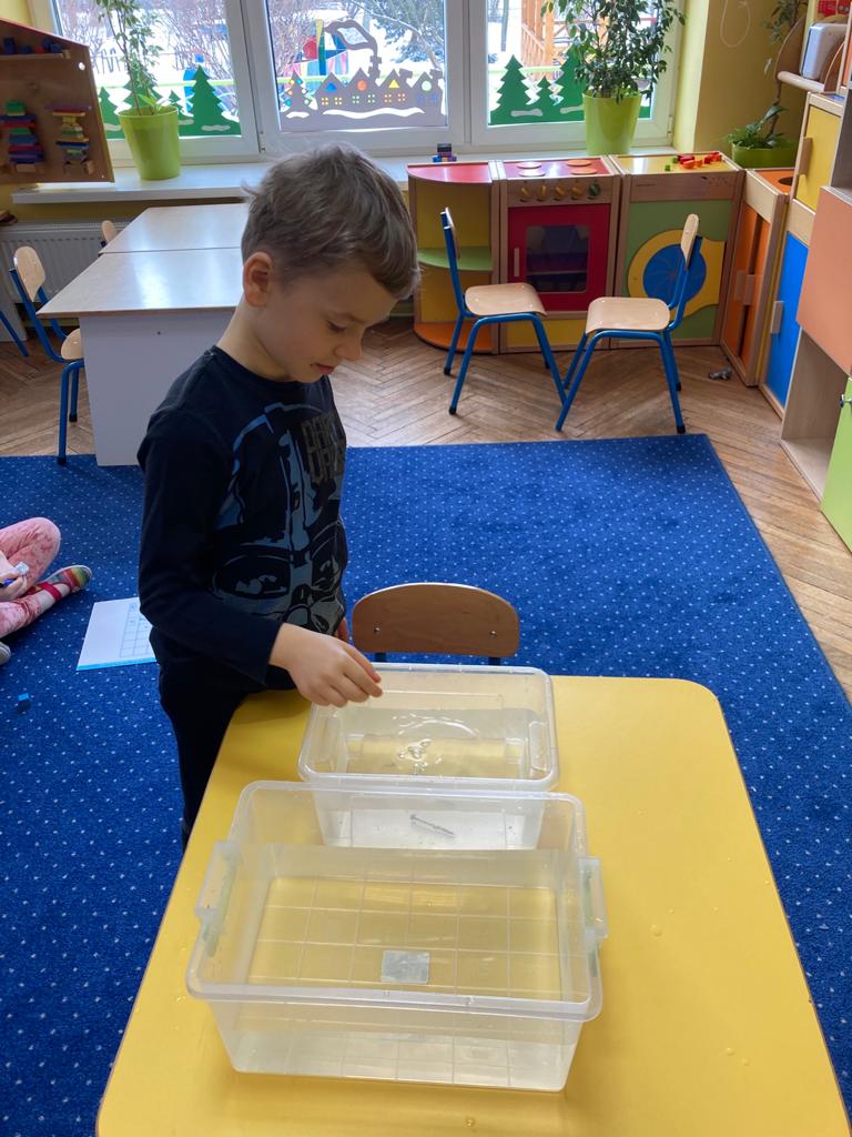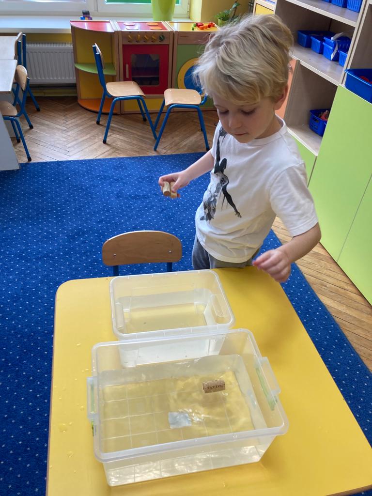 09.02.2021 r. Doświadczenie - Co pływa, co tonie?- Grupa V