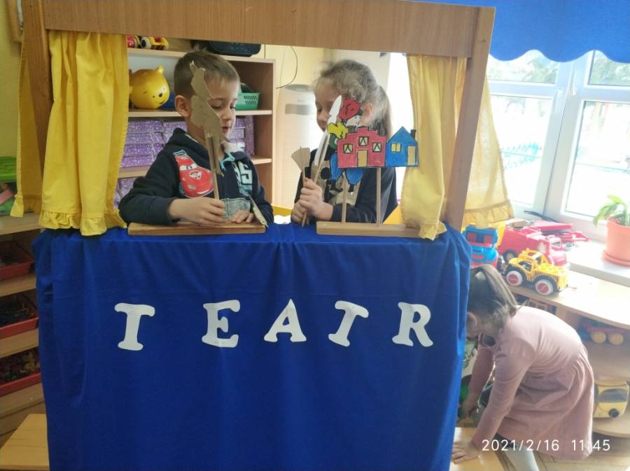 W ramach innowacji pedagogicznej "Baśniowe Królestwo" , a także tygodnia związanego z teatrem zorganizowano dzieciom teatrzyk sylwet pt. "Kopciuszek". Zaproszono również dzieci z gr. VI by i one mogły zapoznać się z losami Kopciuszka. Zajęcia przeprowadziła Renata Janusz.