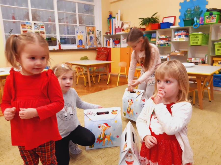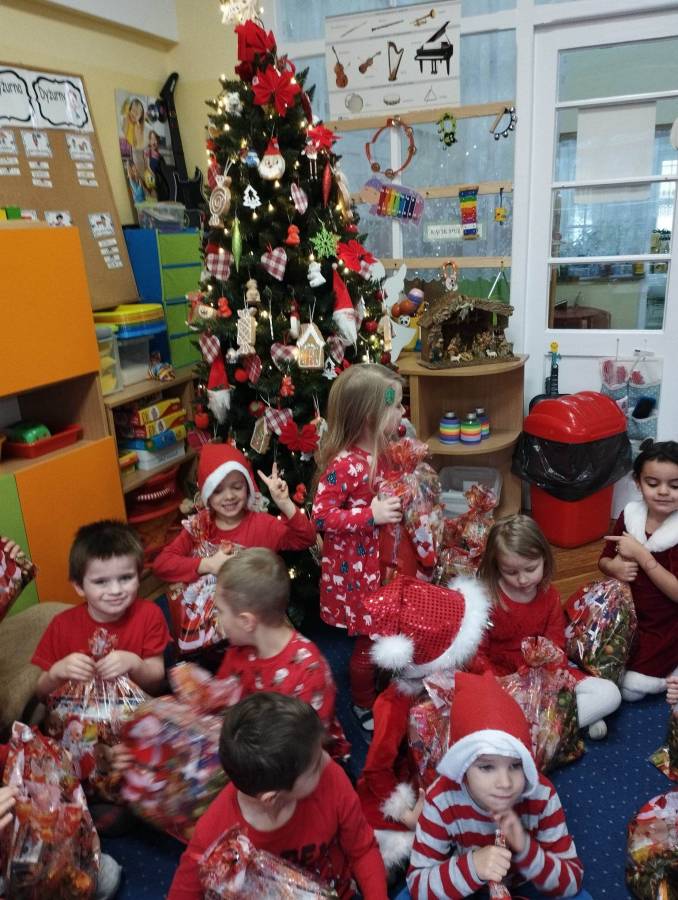 Nasze Przedszkolaki długo czekały na ten dzień. Dla wielu z nich było to pierwsze w życiu wyjście do kina! Projekcja filmu spotkała się z dużym entuzjazmem dzieci, a przygody małej krówki Klary wszystkim przypadły do gustu. W ciągu dnia czekało na nas mnóstwo niespodzianek! W czasie pobytu w kinie odwiedził nas Mikołaj, więc Przedszkolaki miały okazję zaśpiewać tak długo przygotowywaną piosenkę. Po powrocie do przedszkola znaleźliśmy prezenty pozostawione przez Świętego Mikołaja. Wszystkim dopisywały dobre humory.