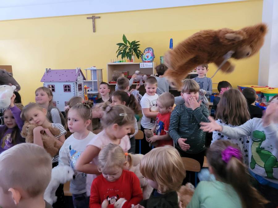 Oj działo się! Uroczystość zaczęła Pani Dyrektor, czytając historię Misia oraz bajkę o Misiu. Dzieci wraz z misiami tańczyły do znanych utworów, następnie zorganizowano dzieciom zabawy muzyczne oraz plastyczne w poszczególnych grupach. Misie wraz z dziećmi świętowały Urodziny Grupy. Były wspaniałe torty w kształcie misiów (dziękujemy Paniom Kucharkom!) oraz wypieki i słodycze przyniesione przez rodziców. Dziękujemy za zaangażowanie! Wszyscy bawili się doskonale.