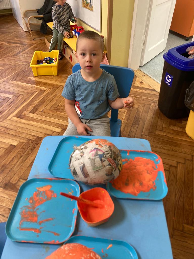 Proces tworzenia Dyń to wieloetapowa praca dzieci. Zdjęcia pokazują jak powstają i jaki jest efekt końcowy. Brawo przedszkolaki!