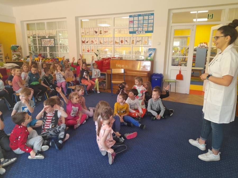 Zajęcia przypomniały dzieciom o zdrowym odżywianiu się i o wyeliminowaniu z diety słodyczy.Bardzo dziękujemy Pani Dietetyk za madrą lekcję.